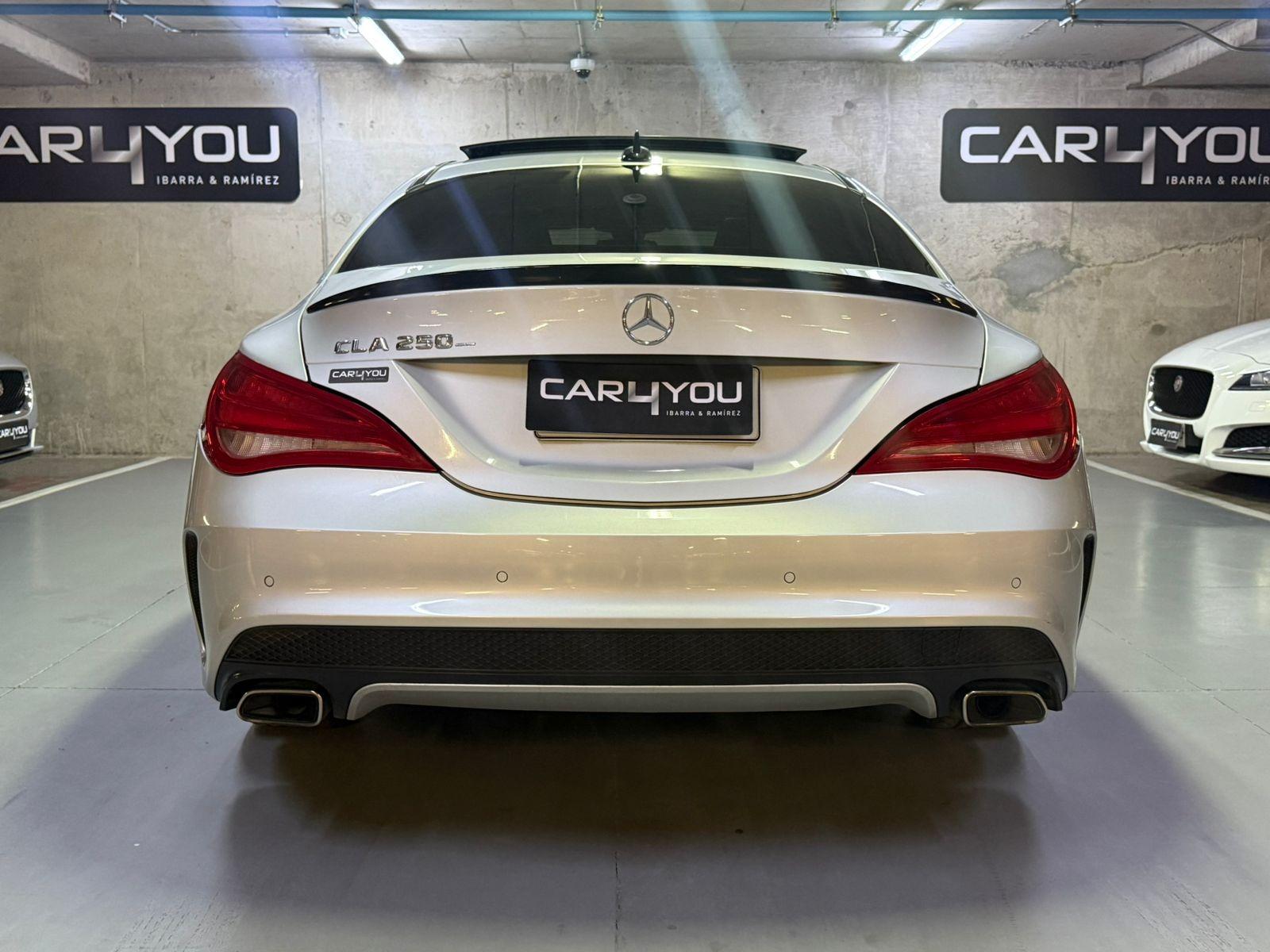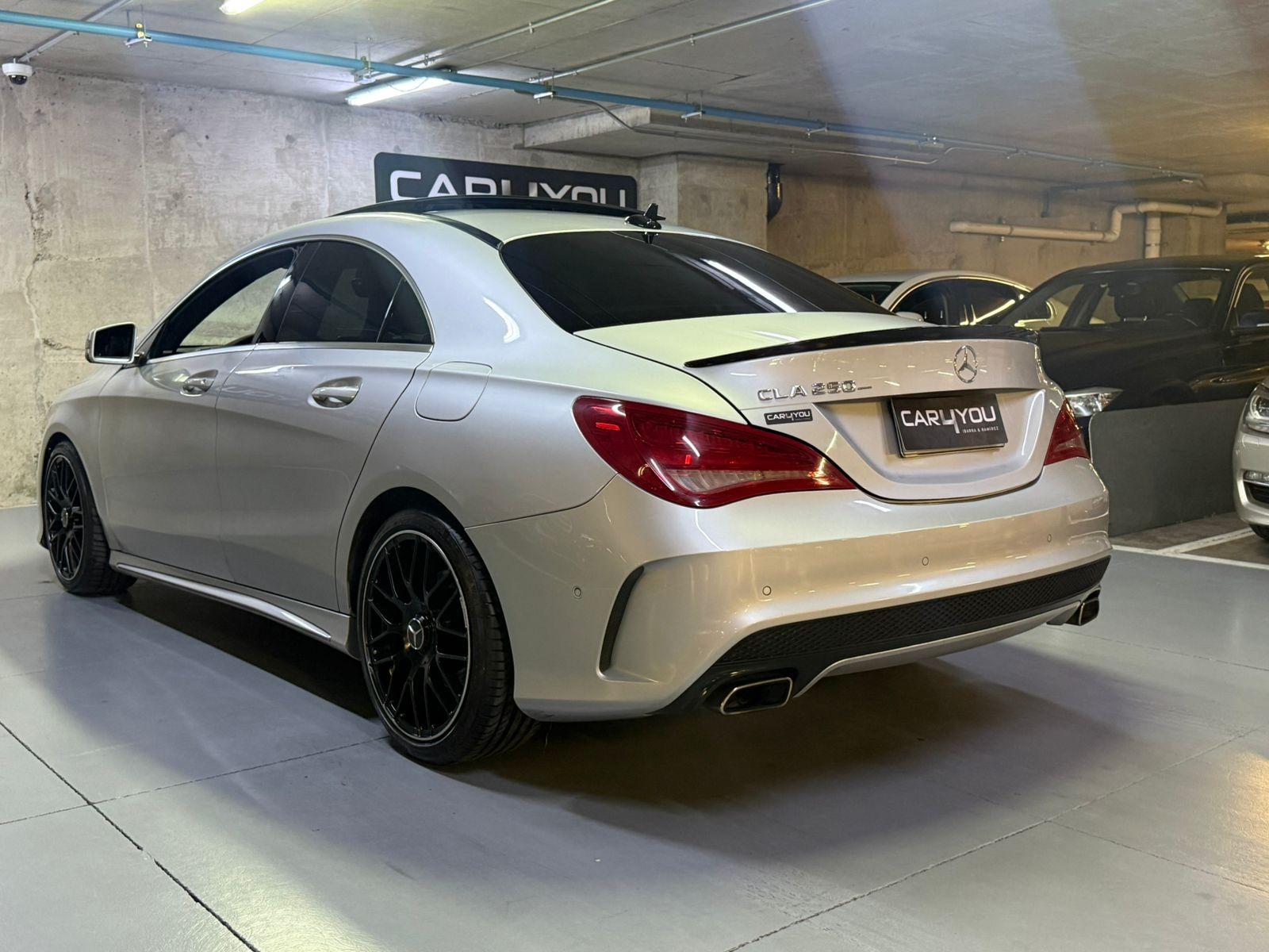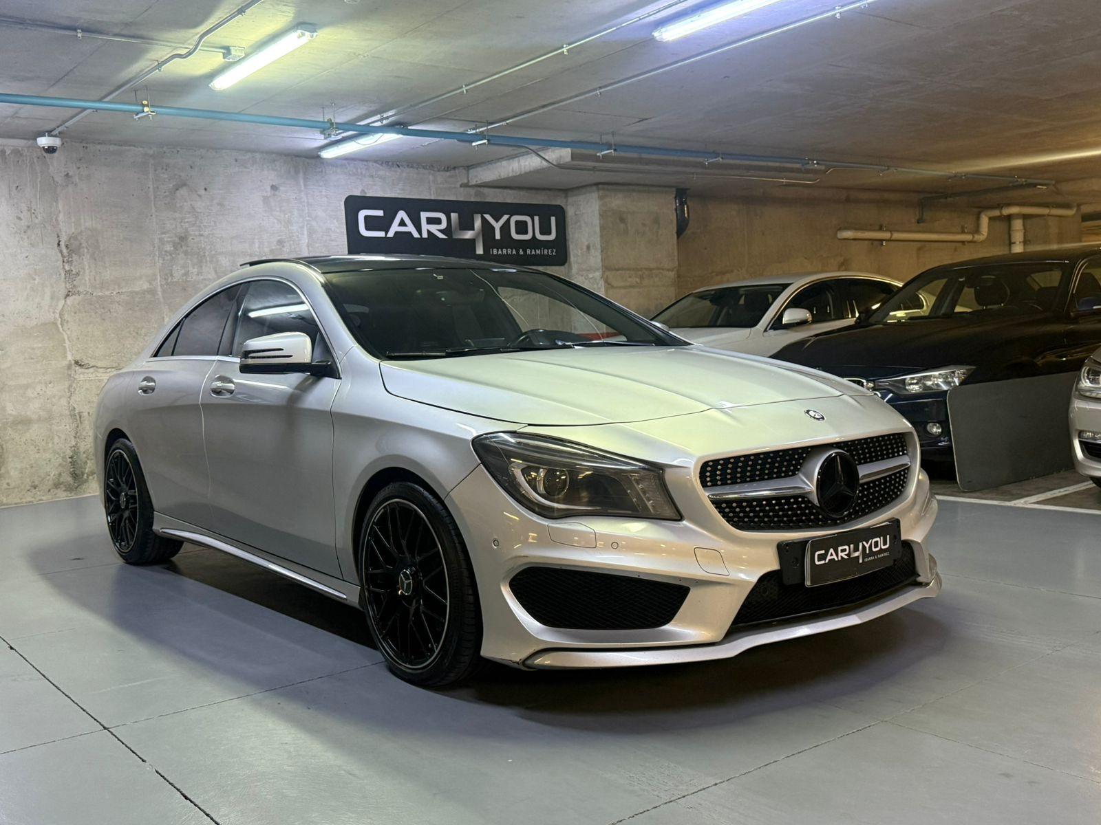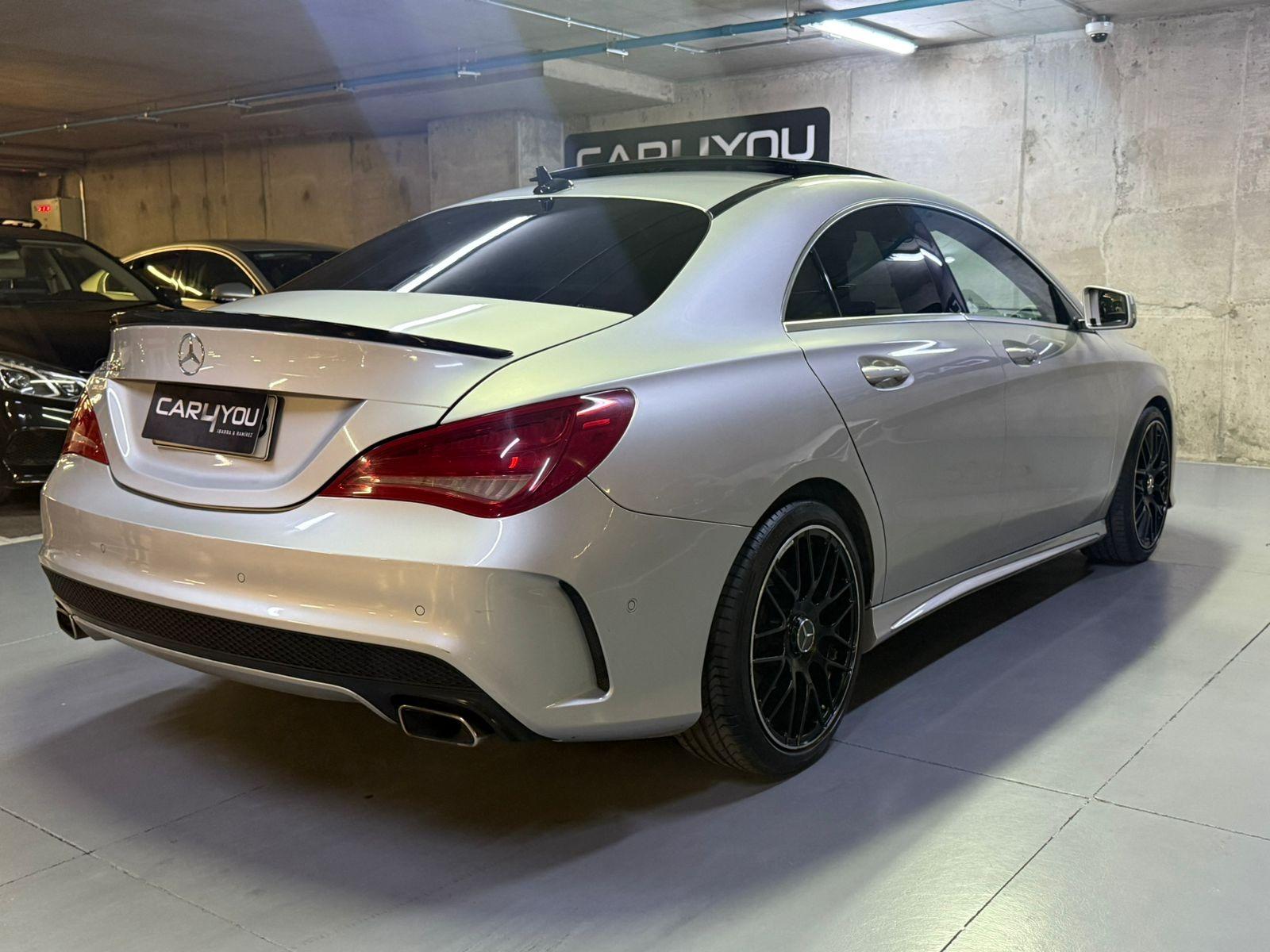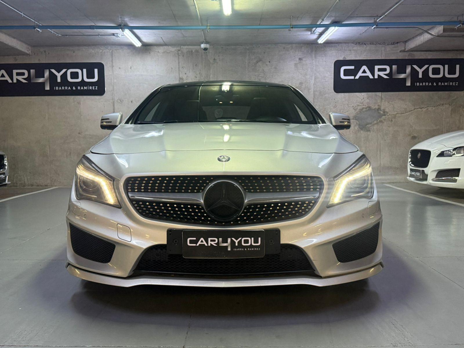 Mercedes Benz CLA 250 Look AMG, color plateado, interior negro, bencinero, automático, año 2013 con 128.000 kilómetros.