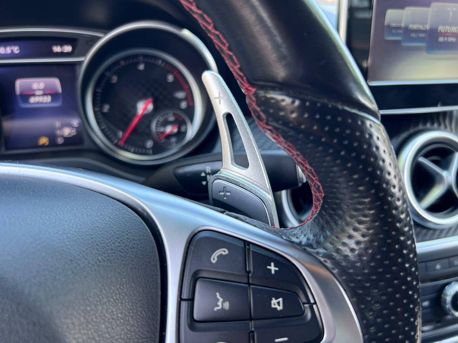 Motor cuatro cilindros diésel, caja de cambios automática 7G-DCT doble embrague siete velocidades con paddle shift, frenos con discos perforados, LOOK AMG, volante multifuncional con velocidad crucero, computador a bordo, pantalla con cámara trasera de estacionamiento y conectividad para Apple CarPlay y Android Auto, control de estabilidad, tapiz Alcántara, faros de xenón.