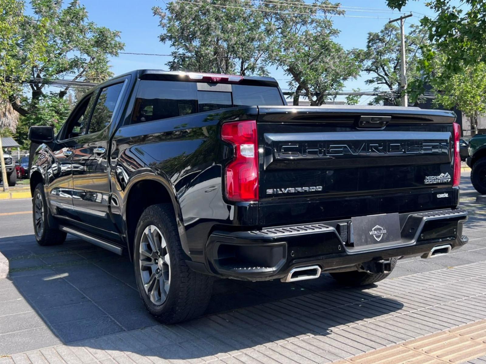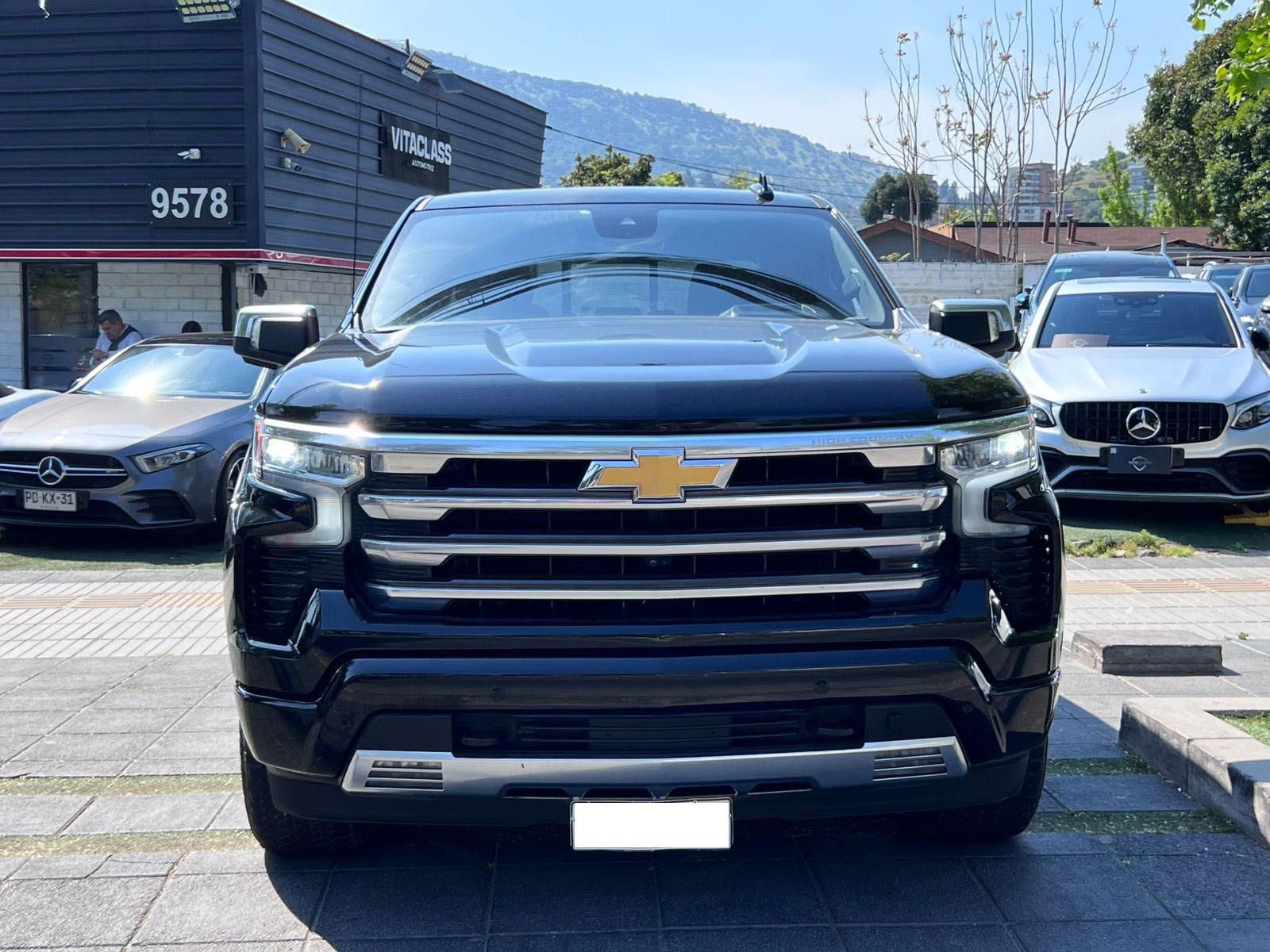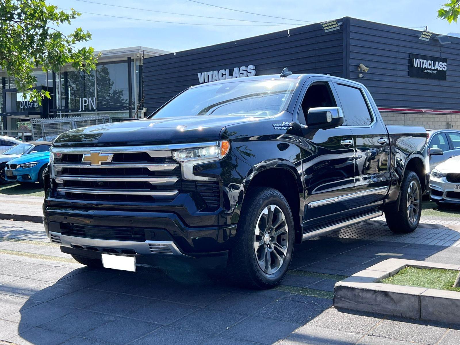 Versión High Country, motor seis cilindros turbo diésel 3.000 CC Duramax, caja de cambios automática tiptronic con paddle shift, modos de conducción, pisaderas laterales automática, tracción 4x4 con reductora, compartimiento rígido plegable cubre carga, volante multifuncional con velocidad crucero, calefacción y comando por voz, computador a bordo, head up display, pantalla touch con cámaras de estacionamiento (trasera, delantera y 360), conectividad para Apple CarPlay y Android Auto, climatizadores delanteros independientes, asientos eléctricos con memorias, calefacción y enfriador, sistema de audio alta fidelidad Bose, sunroof.