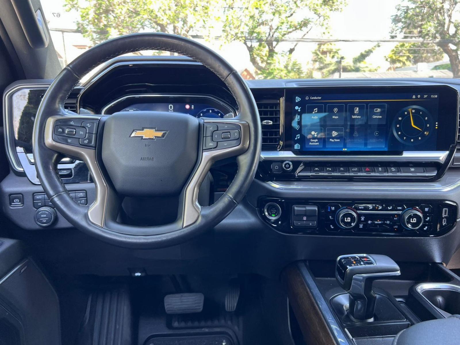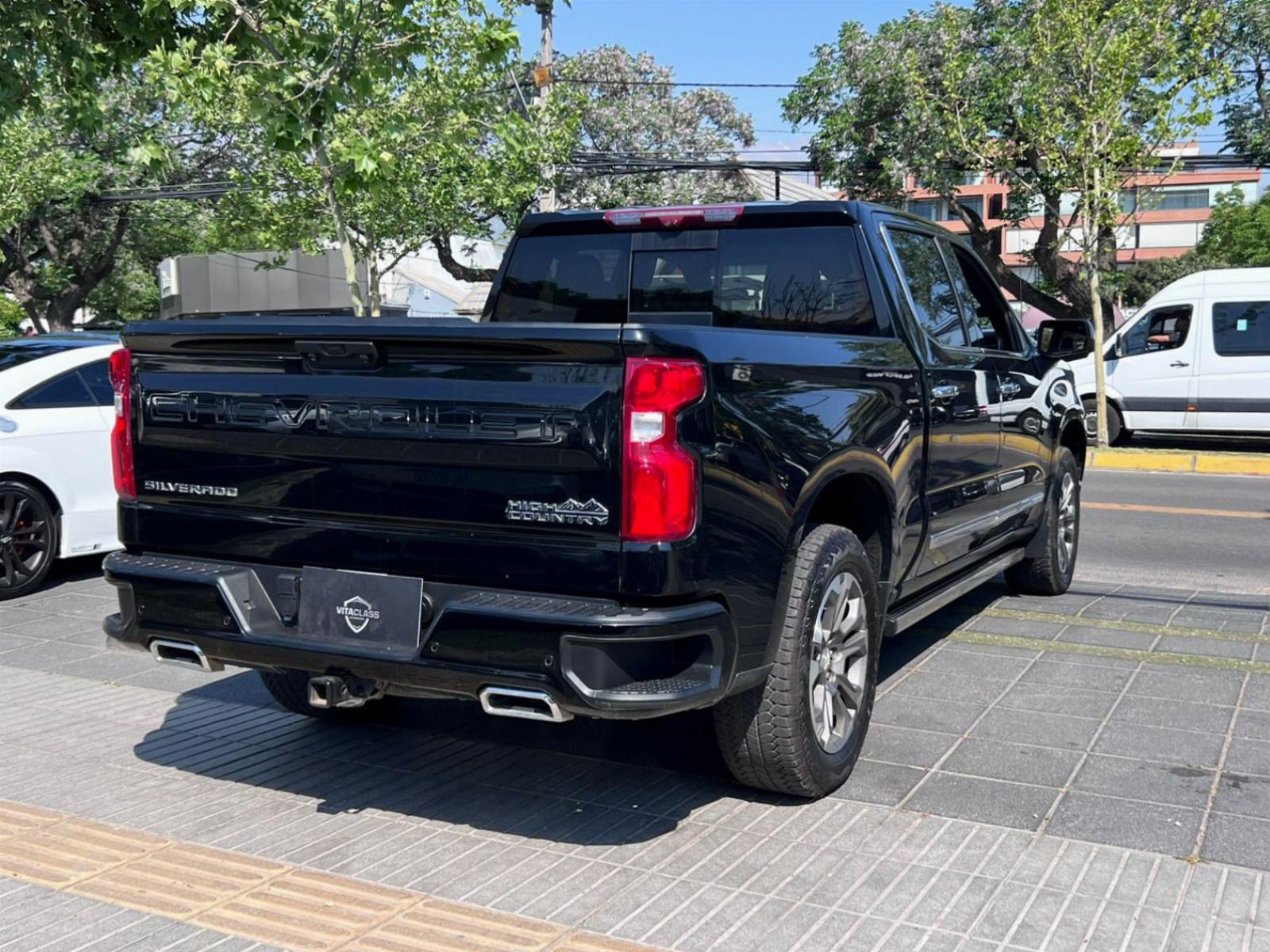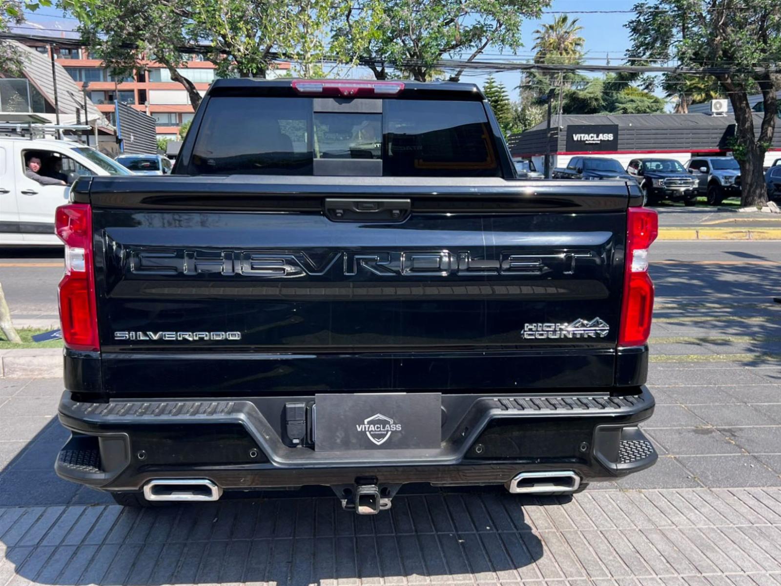 Versión High Country, motor seis cilindros turbo diésel 3.000 CC Duramax, caja de cambios automática tiptronic con paddle shift, modos de conducción, pisaderas laterales automática, tracción 4x4 con reductora, compartimiento rígido plegable cubre carga, volante multifuncional con velocidad crucero, calefacción y comando por voz, computador a bordo, head up display, pantalla touch con cámaras de estacionamiento (trasera, delantera y 360), conectividad para Apple CarPlay y Android Auto, climatizadores delanteros independientes, asientos eléctricos con memorias, calefacción y enfriador, sistema de audio alta fidelidad Bose, sunroof.