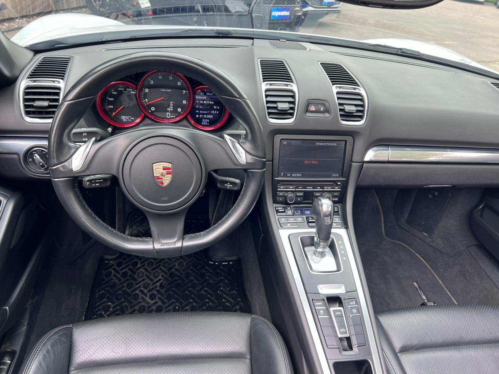 Mantenimiento al día, dos juegos de llaves, versión 981, motor central seis cilindros 2.700 CC, caja de cambios automática PDK doble embrague con paddle shift, frenos con discos perforados, modos de conducción, tracción trasera, volante multifuncional con tele comando, computador a bordo, Bluetooth, sensores de estacionamiento, pantalla touch, climatizadores delanteros independientes, Spoiler regulable, start-stop, faros de xenón, asientos con calefacción en tres niveles.