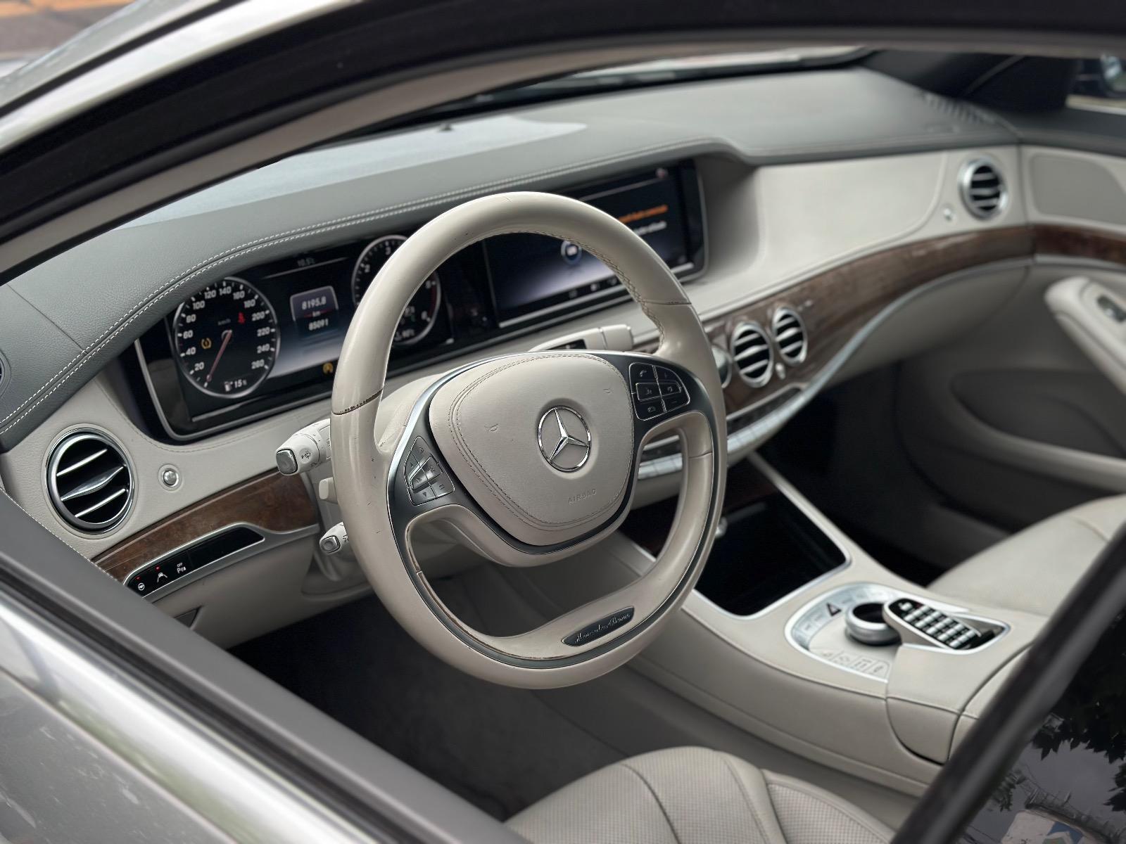 Mercedes-Benz S350 Bluetec 2016, equipado con motor 3.0 V6 diésel y transmisión automática, con 85.091 km. Un sedán de lujo que combina potencia, elegancia y tecnología avanzada. Destaca por su confort interior con butacas de cuero blanco perforado, climatizadas, con masaje y memorias para conductor y copiloto. Incorpora suspensión adaptativa, modos de conducción, dirección con ajuste eléctrico, y sistema Auto Pilot con control crucero adaptativo. Equipado con luces LED adaptativas, llantas bitono, sensores de estacionamiento 360°, cámaras, acceso Keyless, freno de mano electrónico y sistema Softclose para puertas. Ofrece además sunroof panorámico, apertura automática de portalón trasero, cortinas de privacidad, tablero digital, volante multifuncional con paddle shift, pantalla de infoentretenimiento con mapas incorporados y conectividad total. Un vehículo que refleja el máximo estándar de confort y tecnología de Mercedes-Benz.