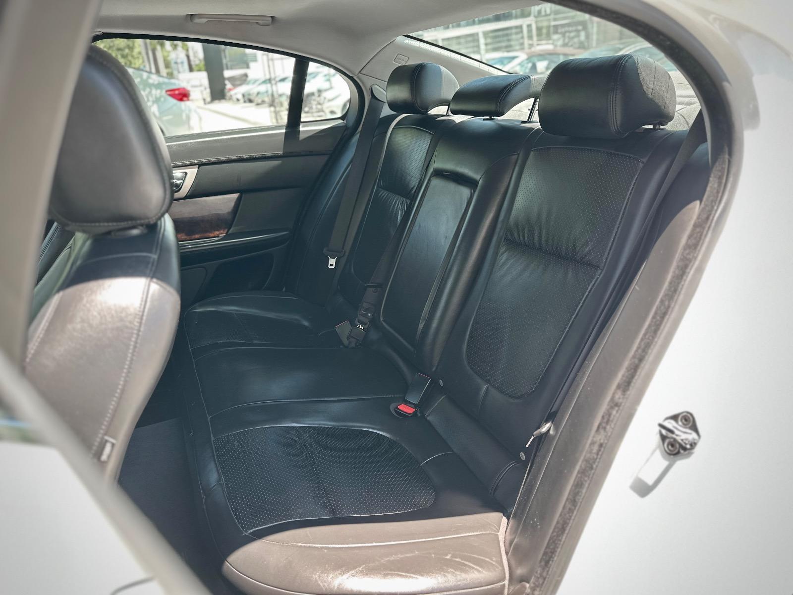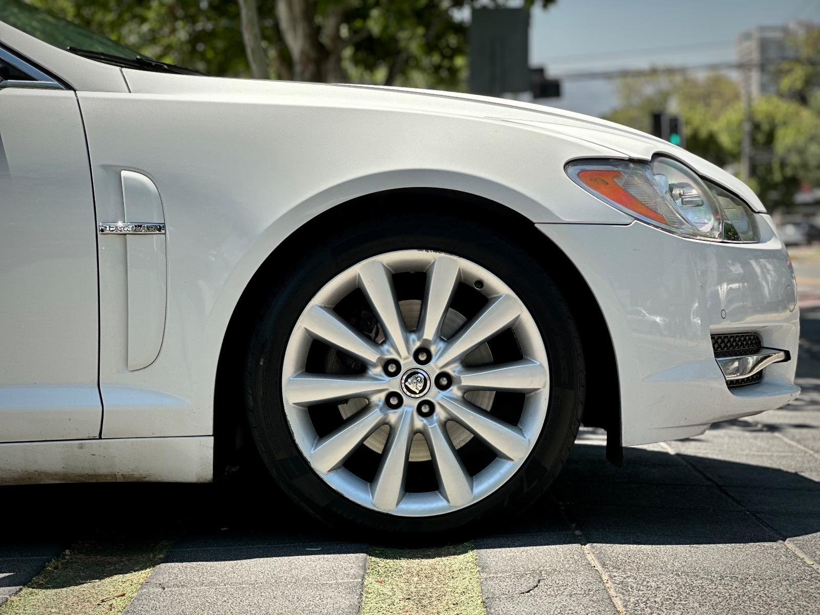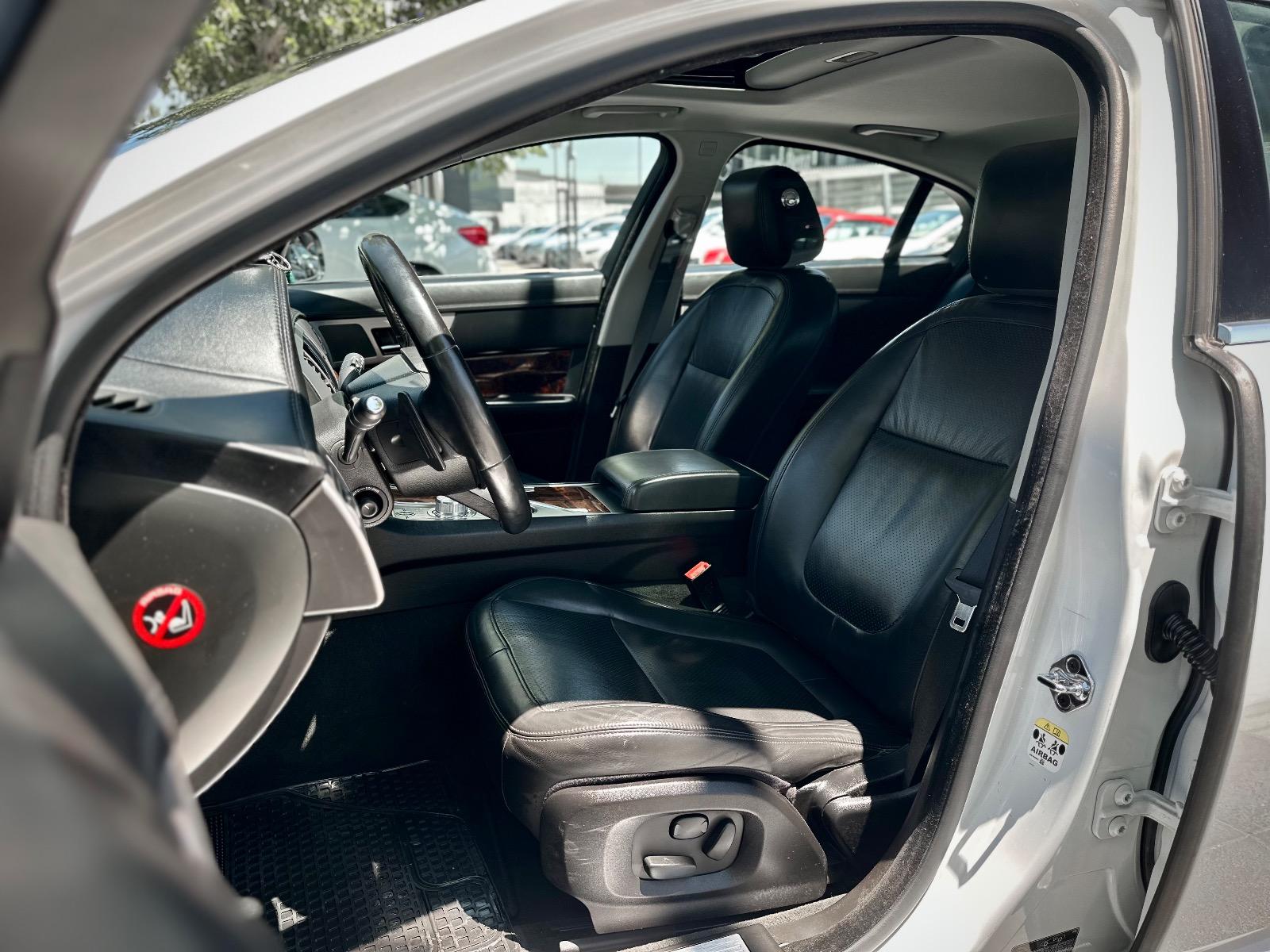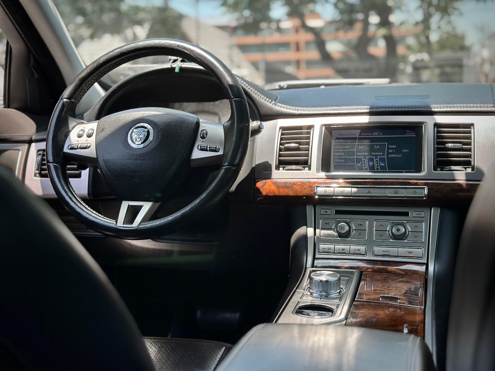 Jaguar XF 3.0 año 2011, sedán de lujo con motor gasolina y transmisión automática. Con 141.113 km, ofrece una conducción refinada y potente, fiel al estilo británico de la marca. Destaca por su elegante diseño exterior con parrilla cromada, luces de xenón y llantas en aluminio. Su interior combina confort y distinción con butacas de cuero con ajuste eléctrico, calefacción y memoria para conductor, acabados en madera, sunroof y volante multifuncional con ajuste eléctrico y asistente de salida. Incorpora climatizador bi-zona, control crucero, paddle shift, modos de conducción sport y calzada resbaladiza, acceso Keyless y botón de encendido. Además, cuenta con sensores de estacionamiento 360°, freno de mano electrónico, computador a bordo, doble salida de escape y anclajes Isofix. Un sedán que combina elegancia, tecnología y desempeño con el carácter clásico de Jaguar.