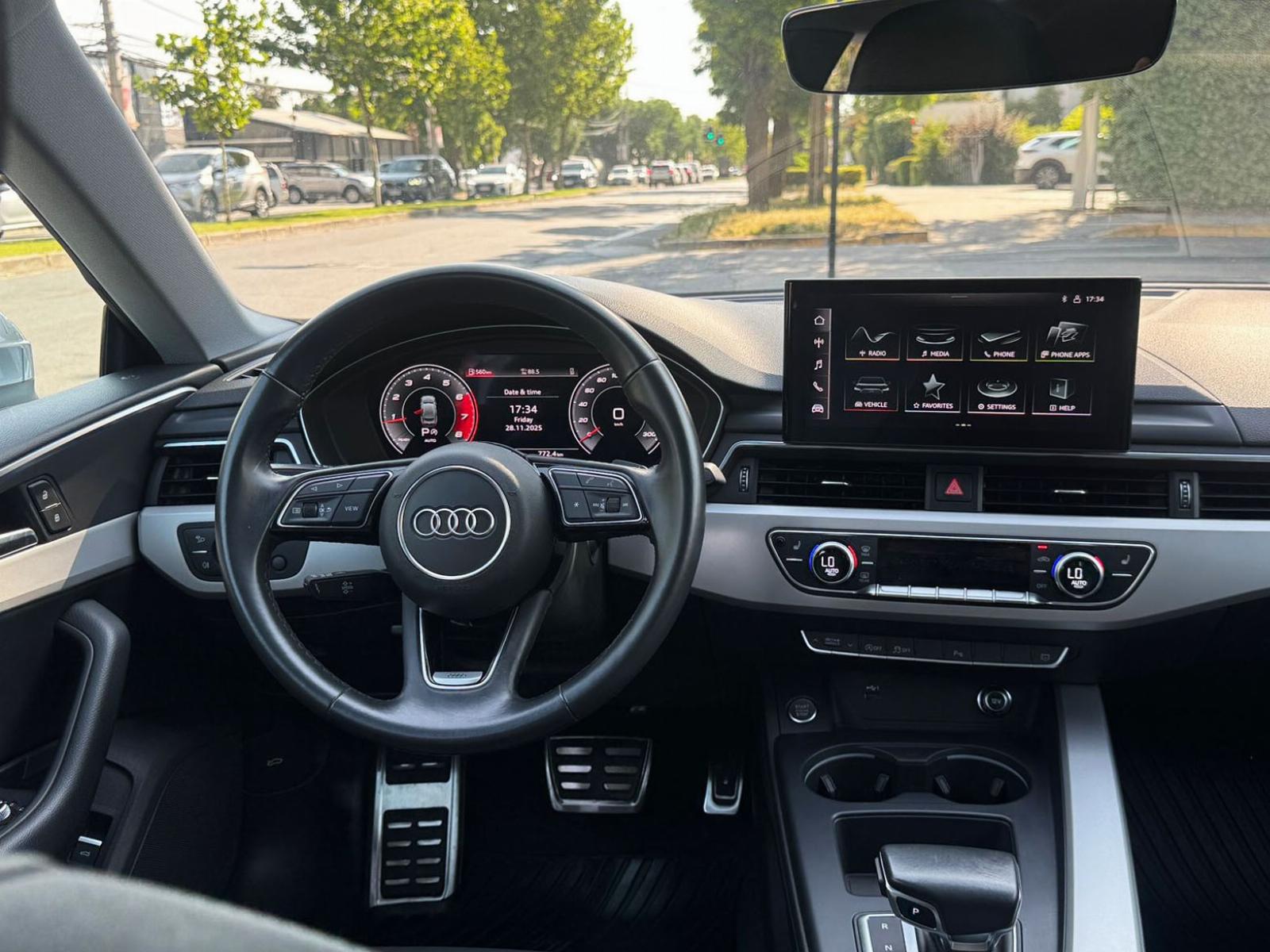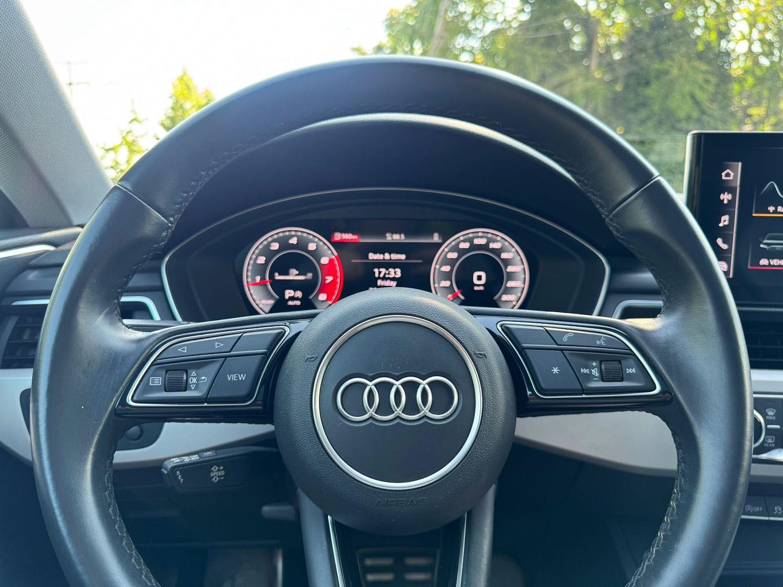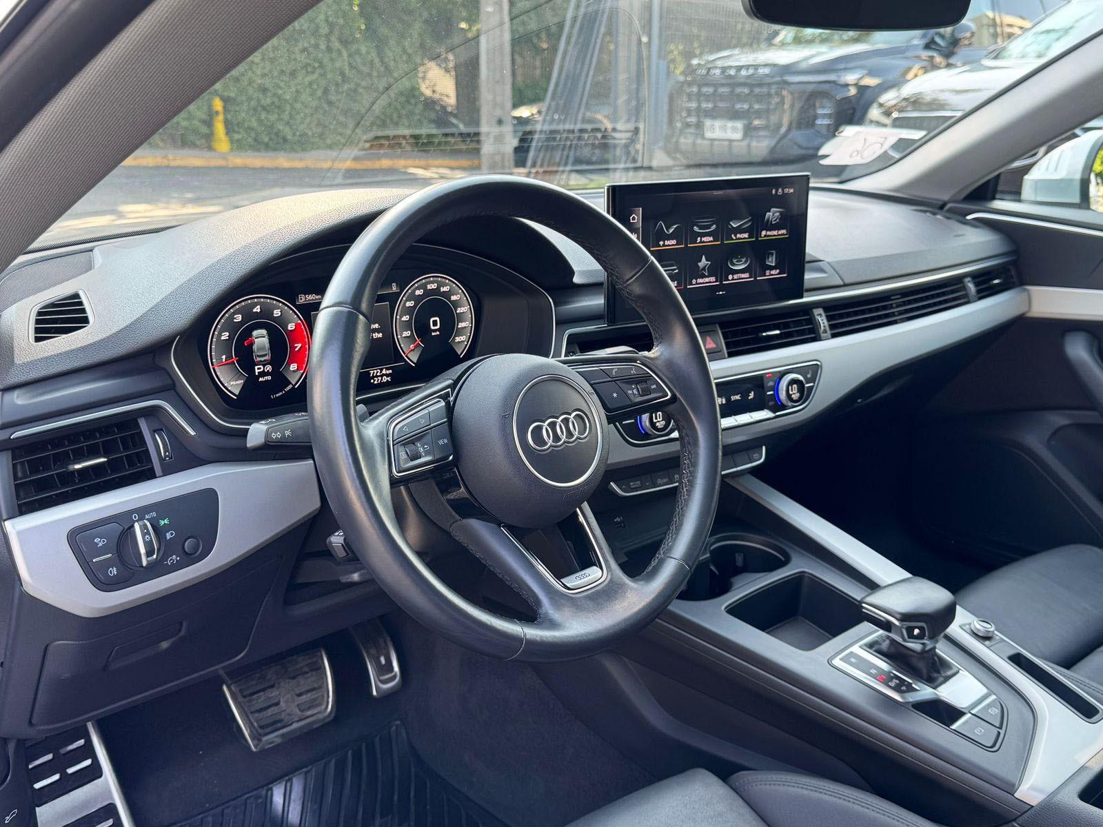 Mantenimiento al día, dos juegos de llaves, versión Sportback (cinco puertas) 40 TFSI, motor cuatro cilindros 2.000 CC turbo, caja de cambios automática con paddle shift, modos de conducción, volante multifuncional con velocidad crucero y reconcomiendo por voz, computador a bordo, pantalla con cámara trasera de estacionamiento y conectividad para Apple CarPlay y Android Auto, climatizadores independientes, botón de encendido start stop, sunroof.
