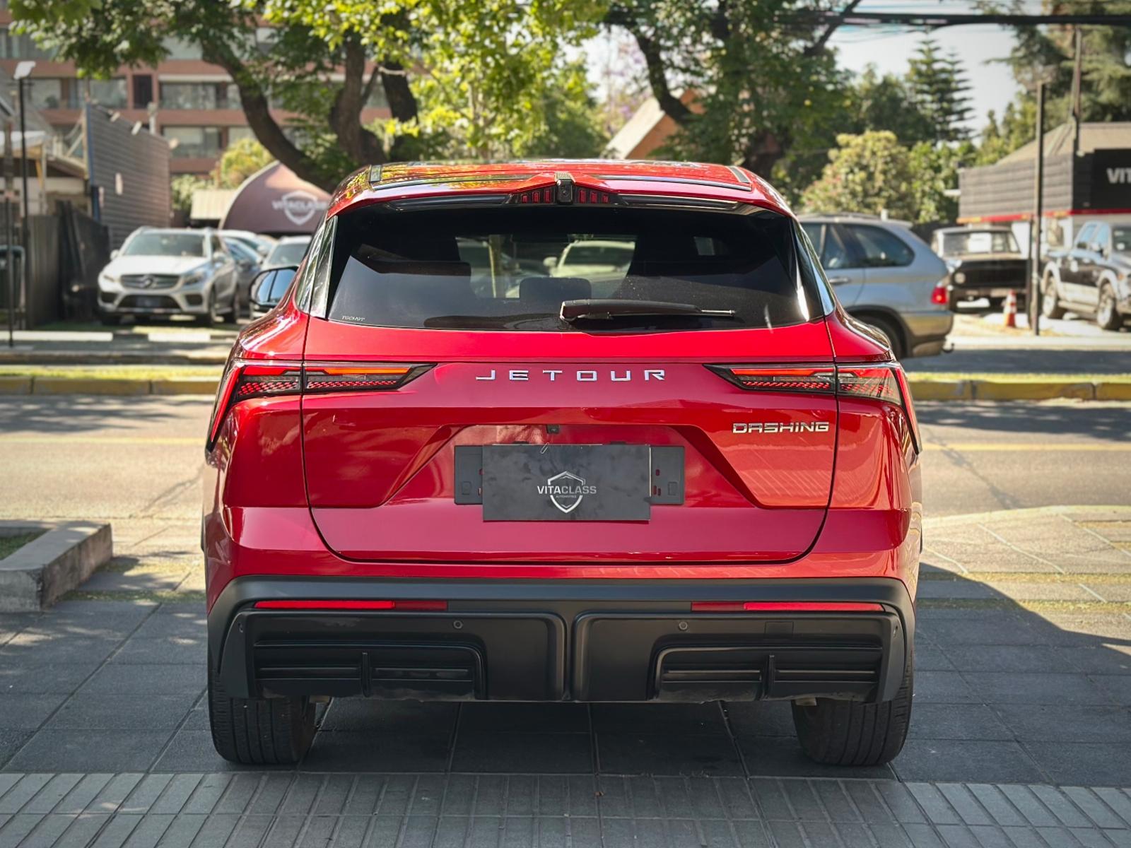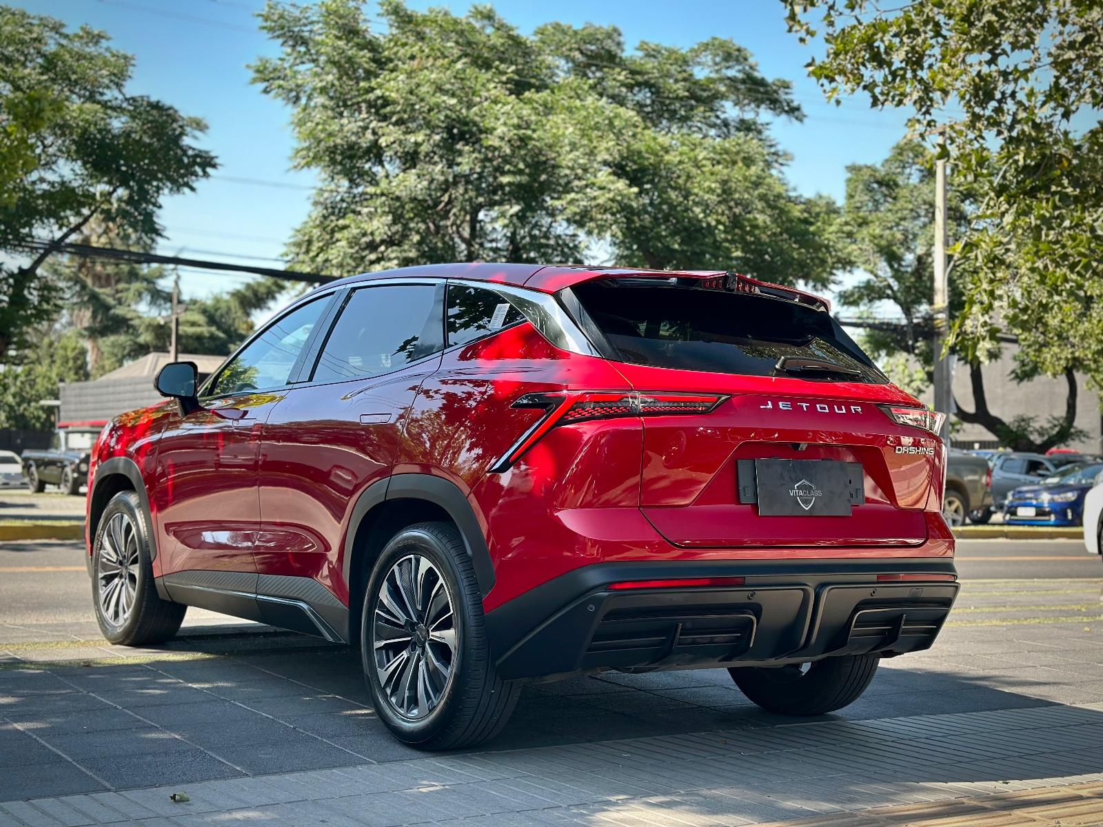 Jetour Dashing 1.5T AT 2024, un SUV moderno con diseño futurista y gran nivel de equipamiento. Incorpora motor 1.5 turbo, transmisión automática Tiptronic, luces LED, neblineros, llantas bitono y apertura automática del portalón. Ofrece acceso Keyless, tiradores automáticos, cámara y sensores 360° y luces secuenciales.