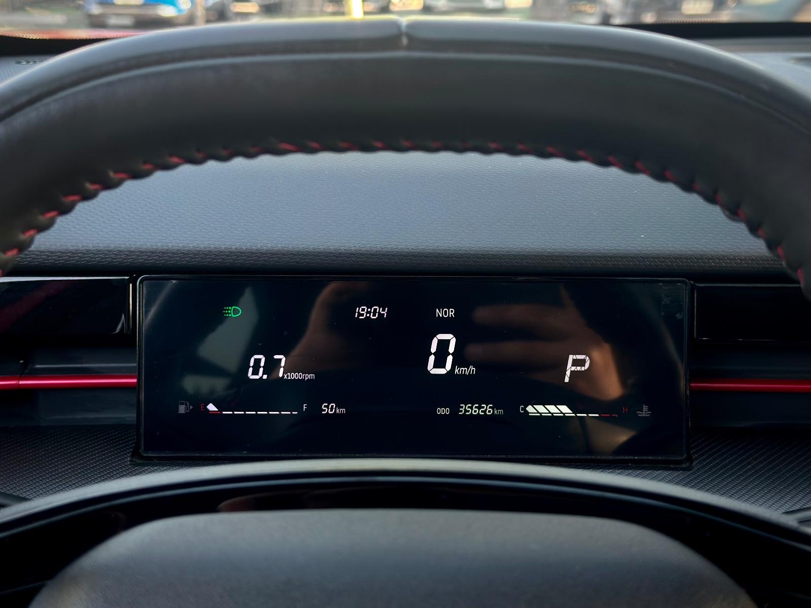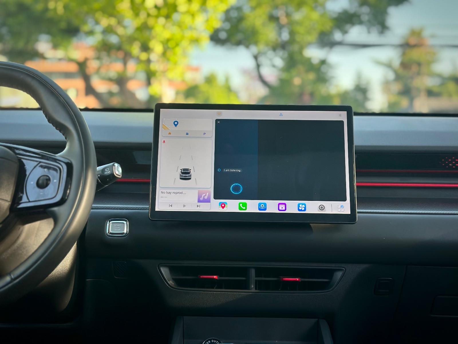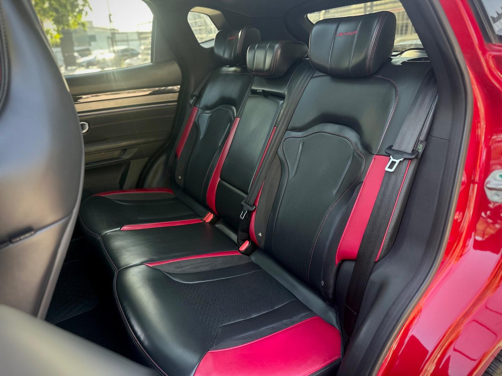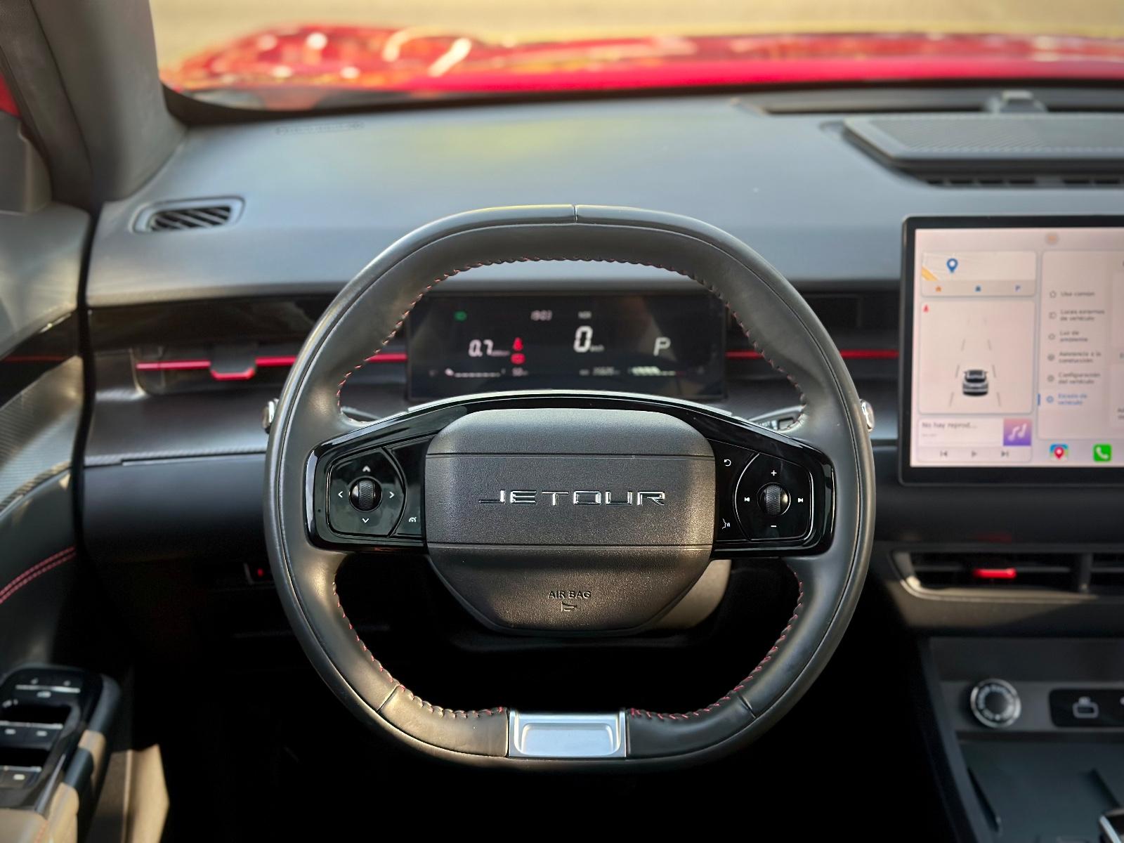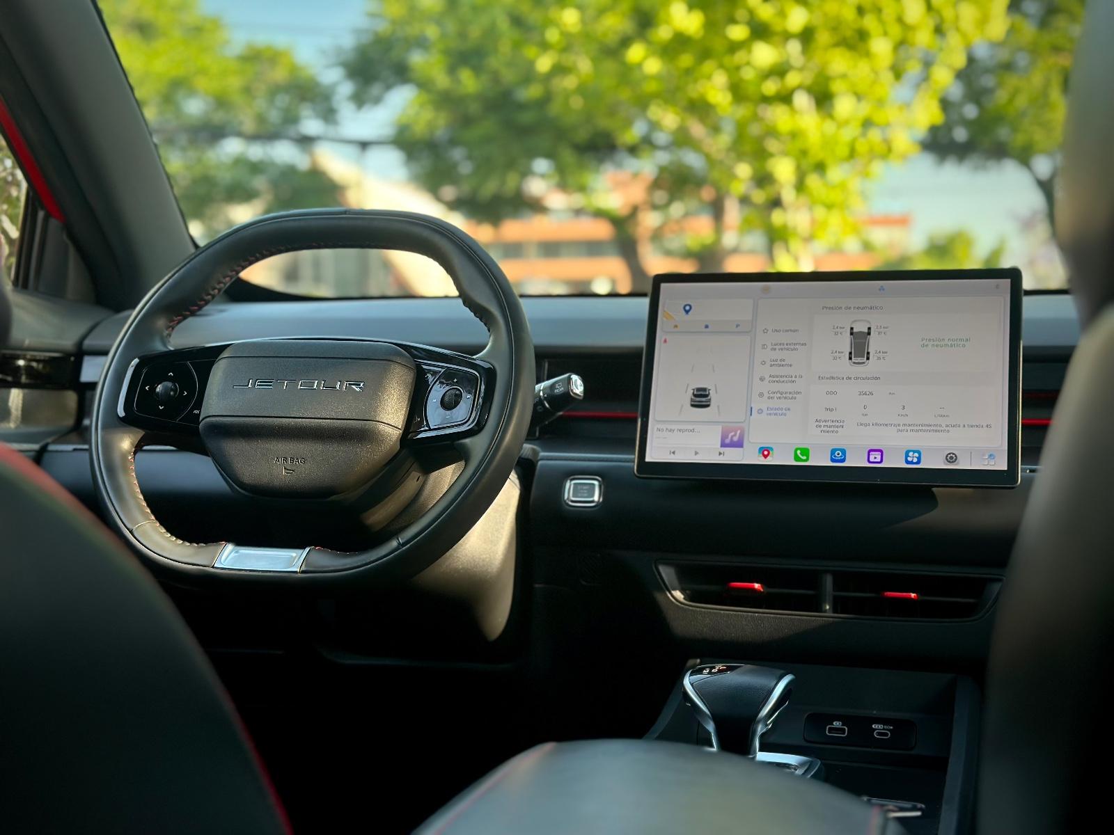 En su interior destaca por las butacas de cuero con detalles en rojo, ajuste eléctrico y climatización, sunroof panorámico, iluminación ambiental, cargador inalámbrico y volante multifunción. Incluye comandos por voz, control crucero y limitador, modos Sport/ECO, freno de mano electrónico, tablero análogo y anclajes ISOFIX.