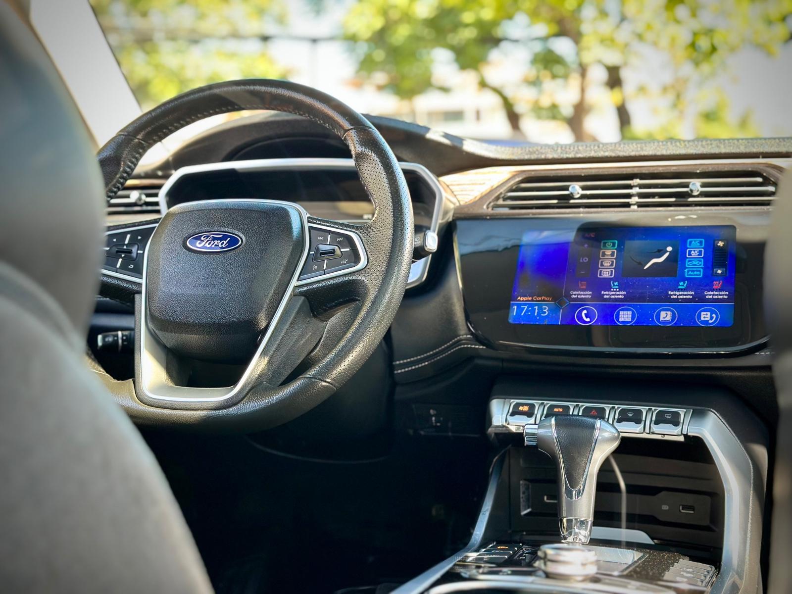 Ford Territory Titanium año 2020, SUV de enfoque familiar que combina diseño moderno, alto nivel de confort y un completo paquete tecnológico. Equipa motor 1.5 turbo a gasolina asociado a transmisión automática Tiptronic, entregando una conducción suave y eficiente tanto en ciudad como en carretera. Destaca por su equipamiento de seguridad y asistencia, incorporando luces LED, neblineros, sensores de estacionamiento con visión 360° y cámara de retroceso. En confort y tecnología ofrece acceso y encendido sin llave, freno de mano electrónico, control crucero, modo Sport y climatizador bi-zona. Su interior resalta por los asientos de cuero con ajuste eléctrico y función de climatización, techo panorámico sunroof, volante multifunción con comandos por voz, anclajes ISOFIX y sistema de infoentretenimiento compatible con Apple CarPlay y Android Auto. Un SUV amplio, bien equipado y orientado a quienes buscan comodidad, tecnología y buena relación precio–producto.