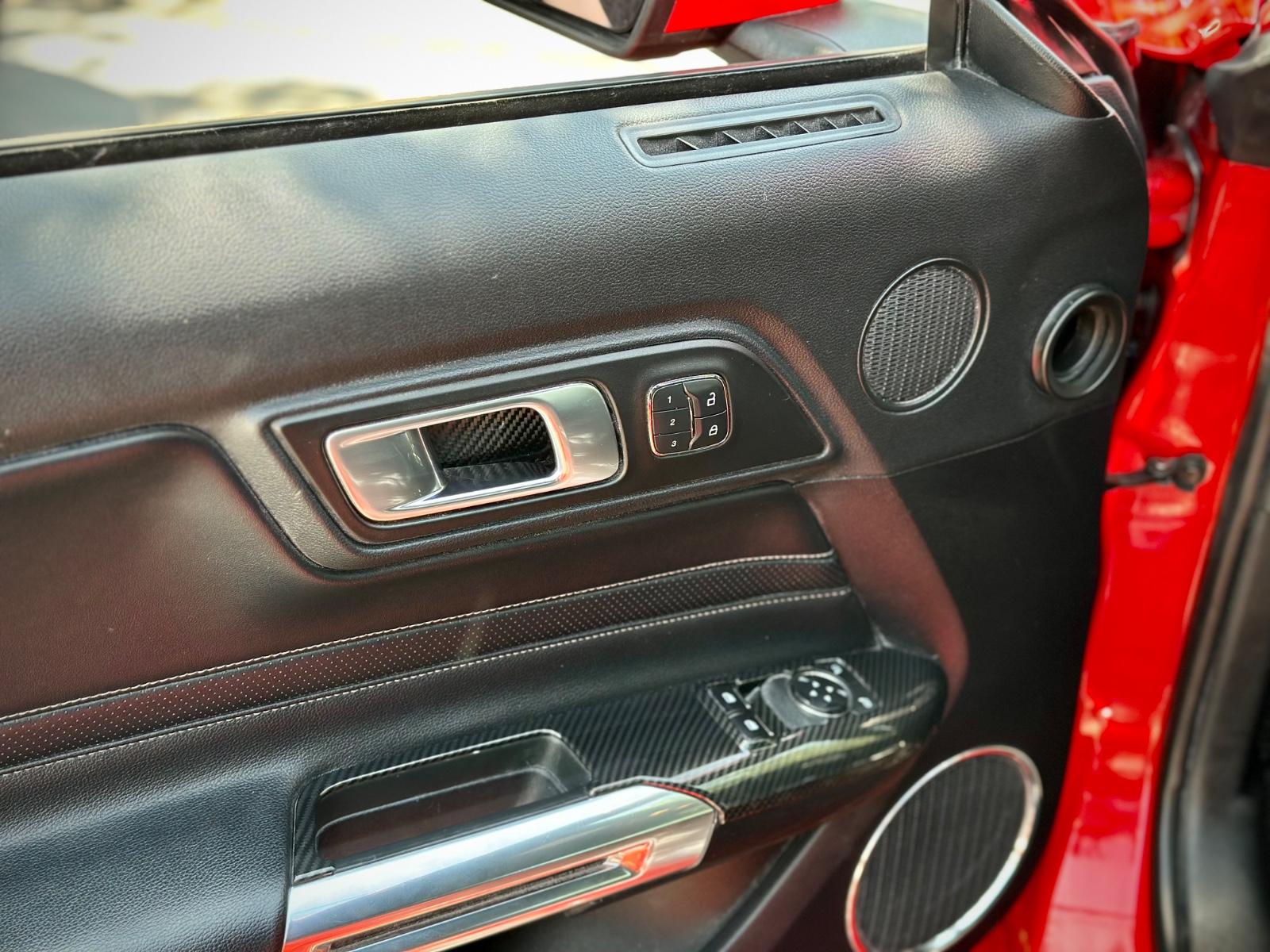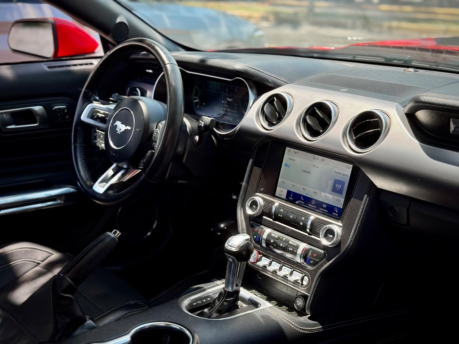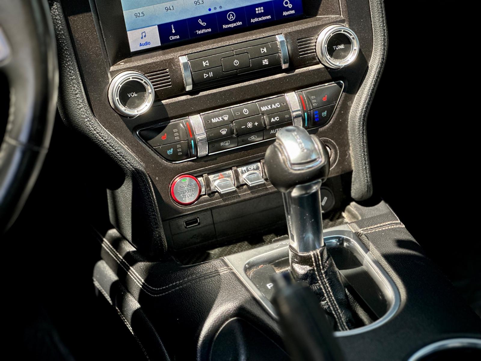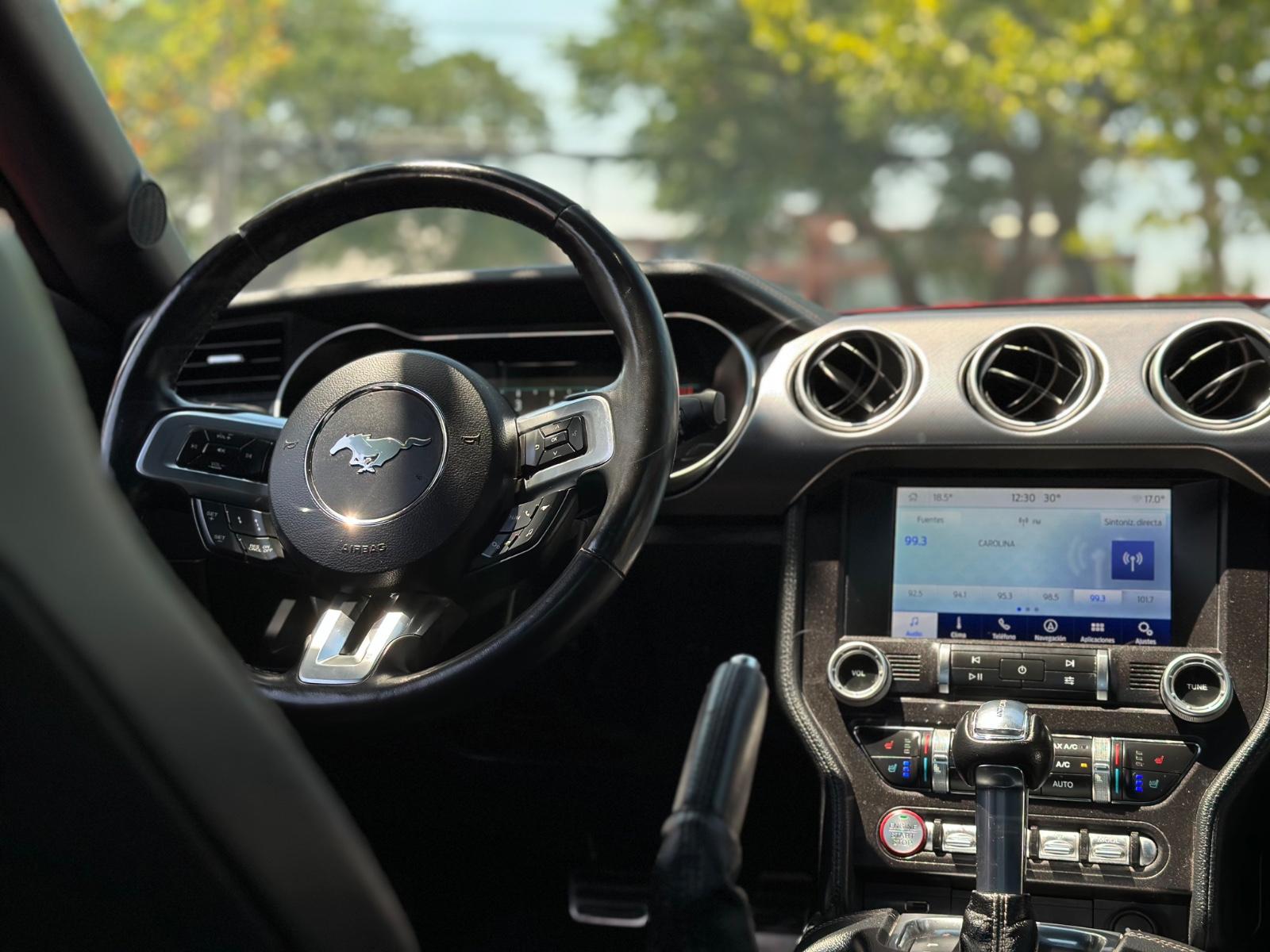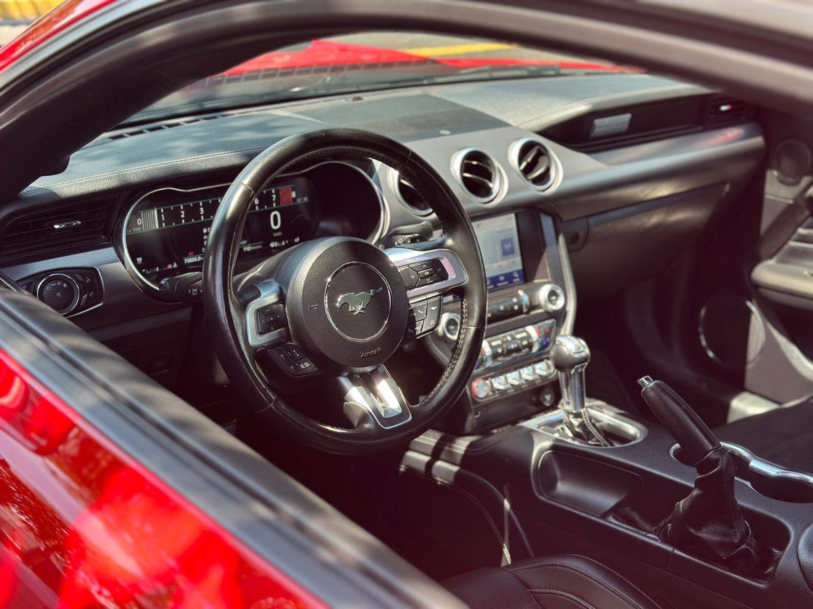 Incorpora luces LED, neblineros, llantas Ford Performance y luces traseras secuenciales. Su interior cuenta con butacas en cuero climatizadas con memoria para el conductor, climatizador bi-zona, volante multifunción con paddle shift, botón de encendido, sistema de audio Shaker y control crucero. Integra modos de conducción y de dirección, modo Sport, cámara de retroceso, sensores de estacionamiento traseros y anclajes ISOFIX, combinando carácter muscle car con tecnología moderna.