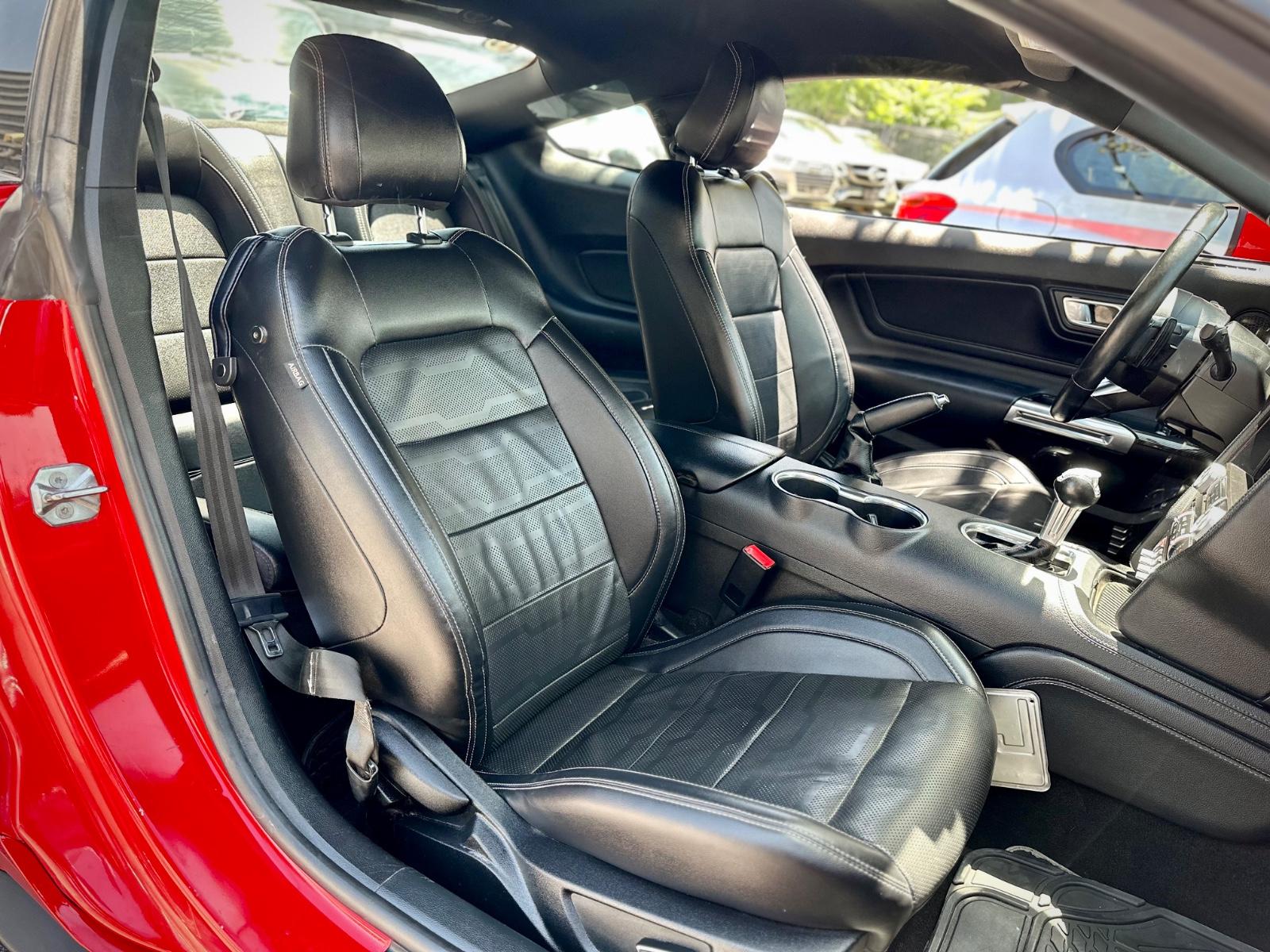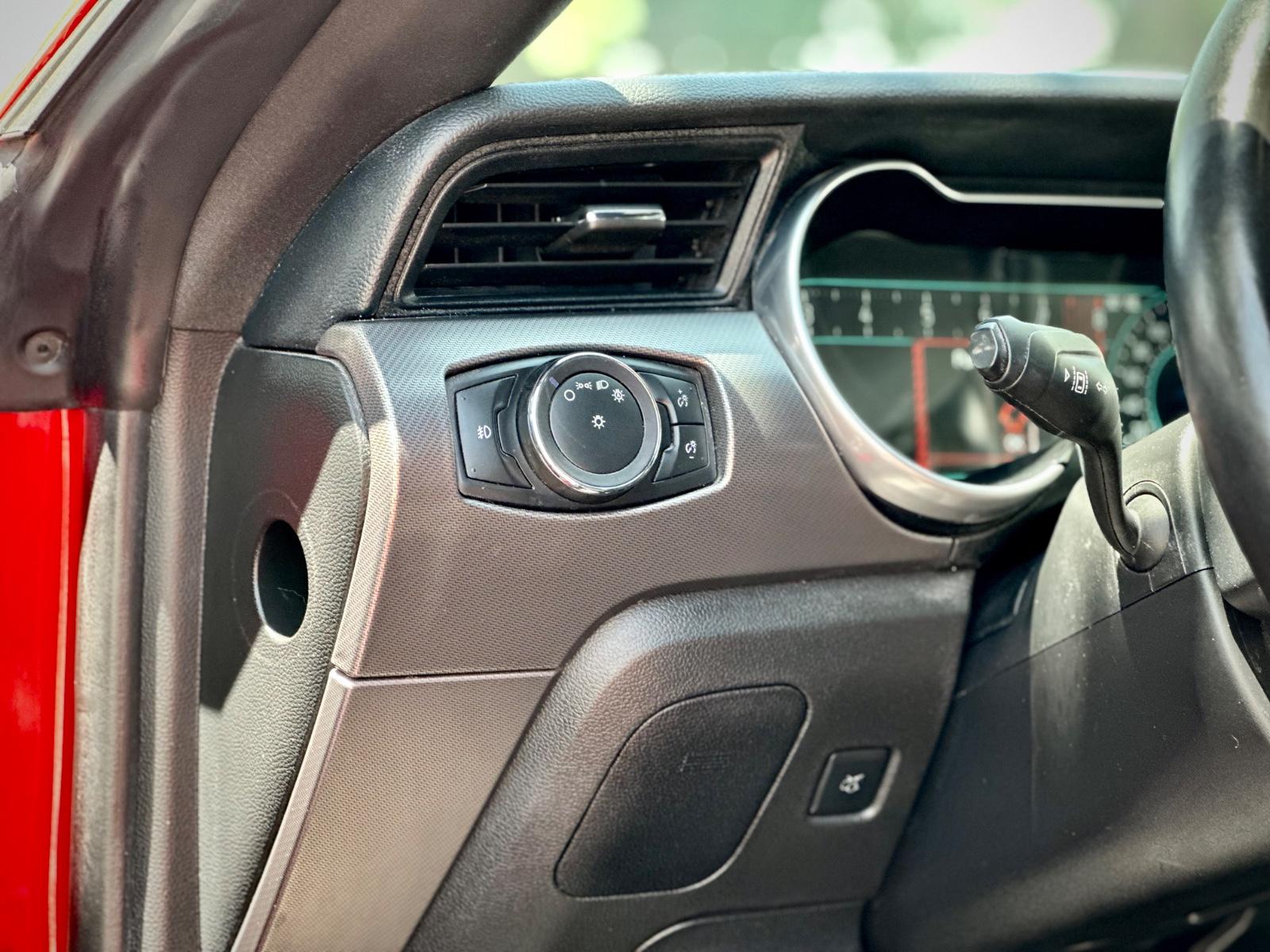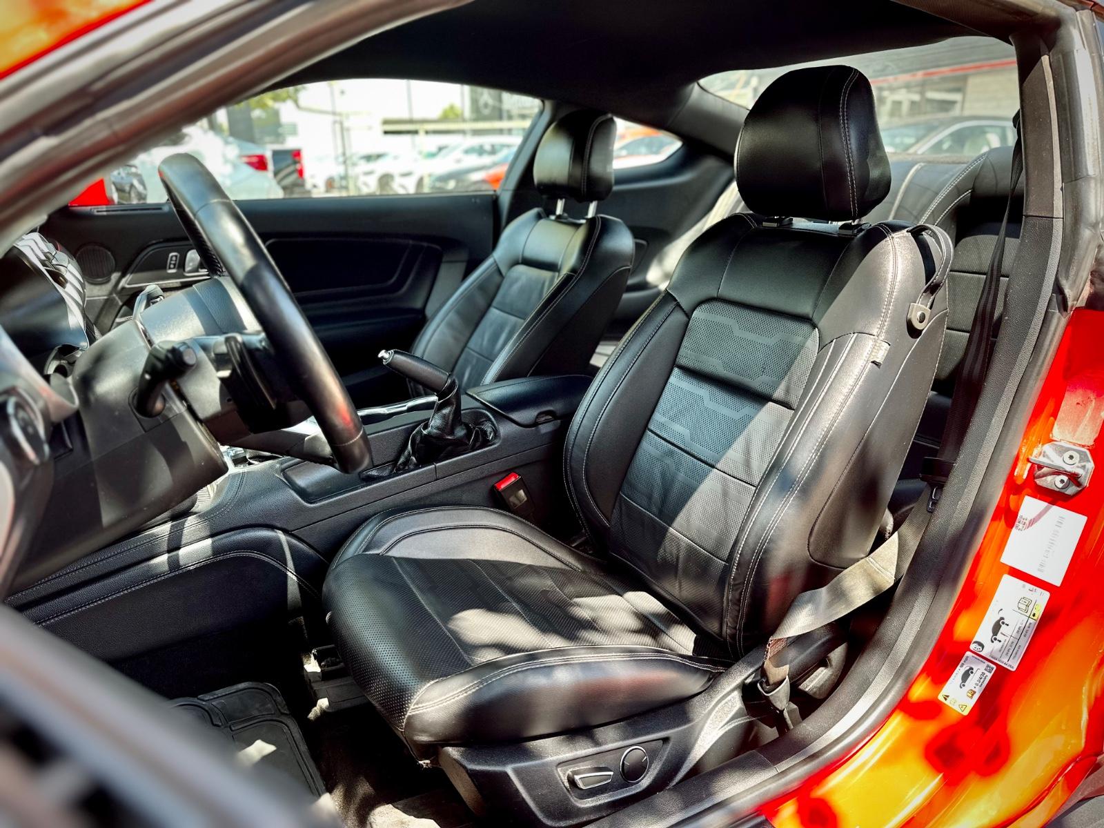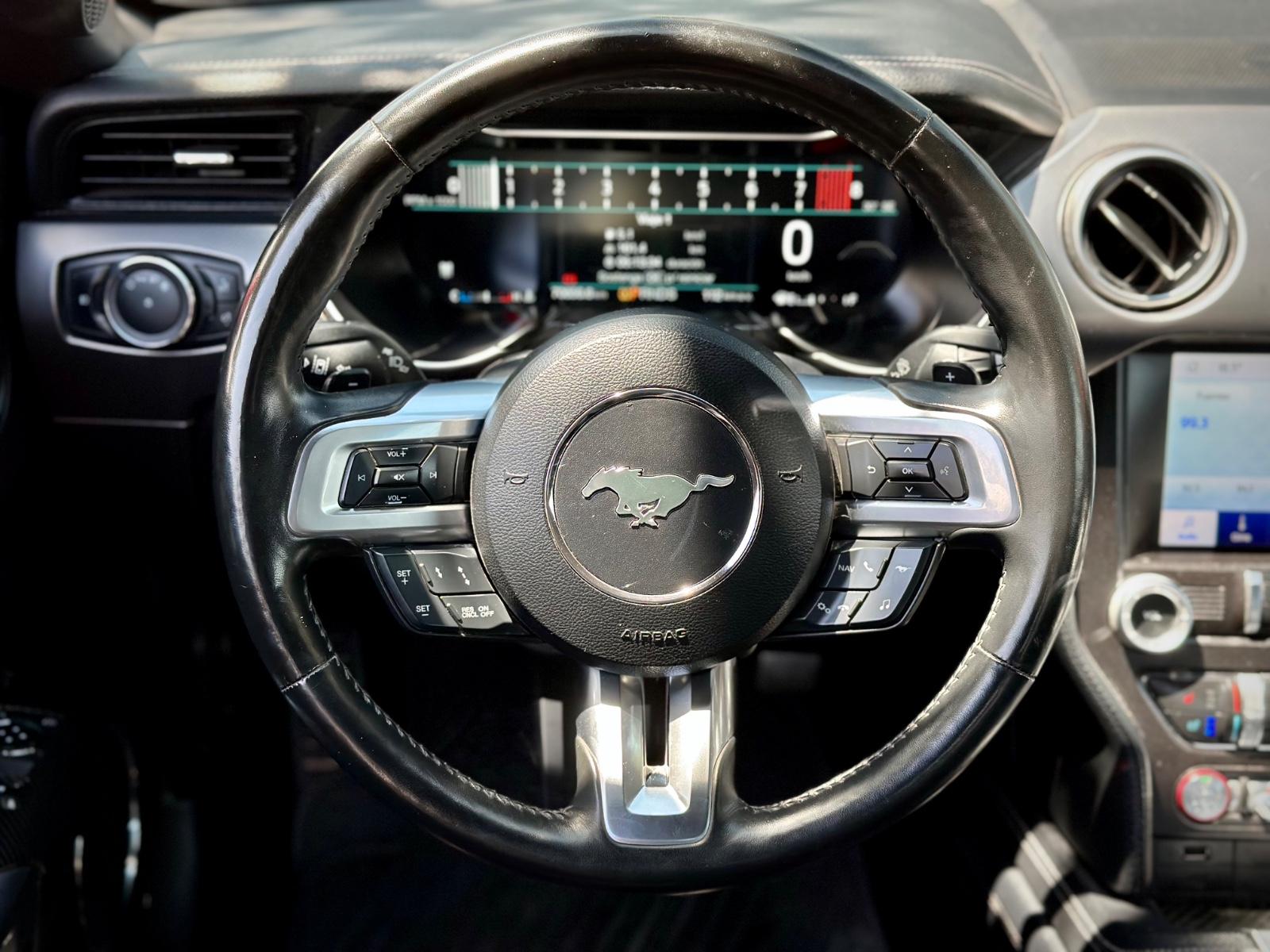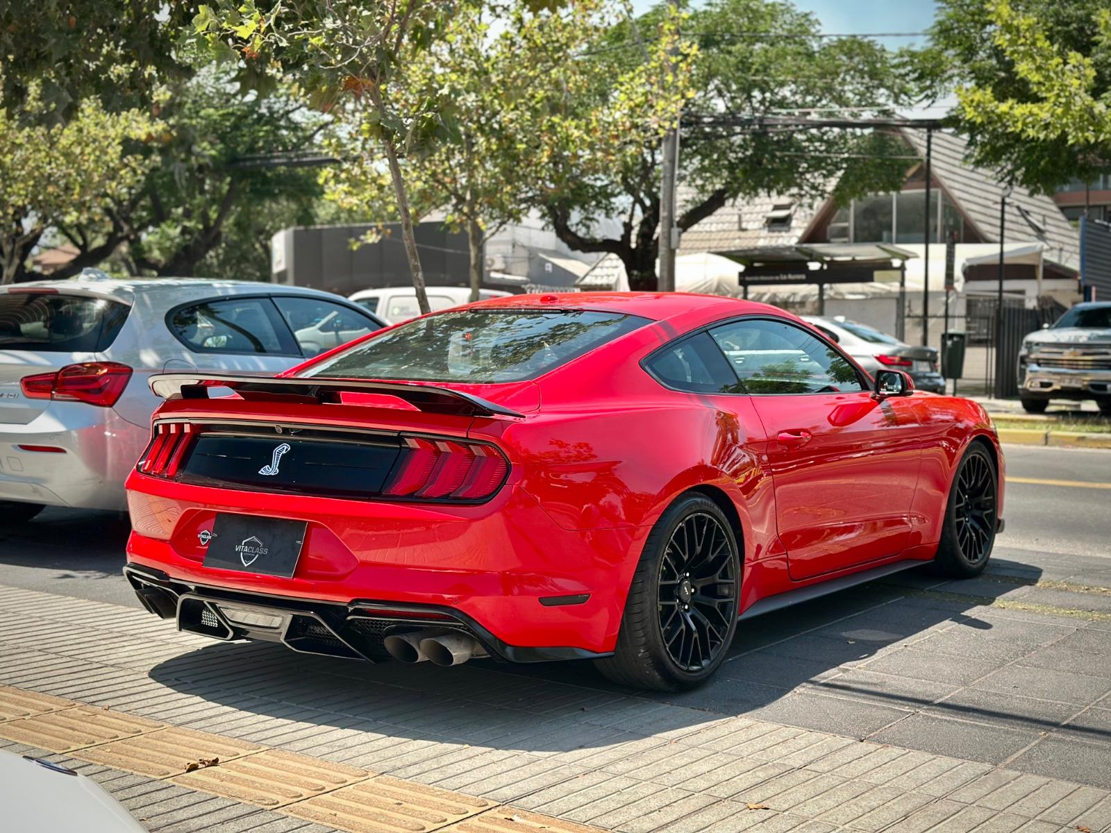 Incorpora luces LED, neblineros, llantas Ford Performance y luces traseras secuenciales. Su interior cuenta con butacas en cuero climatizadas con memoria para el conductor, climatizador bi-zona, volante multifunción con paddle shift, botón de encendido, sistema de audio Shaker y control crucero. Integra modos de conducción y de dirección, modo Sport, cámara de retroceso, sensores de estacionamiento traseros y anclajes ISOFIX, combinando carácter muscle car con tecnología moderna.