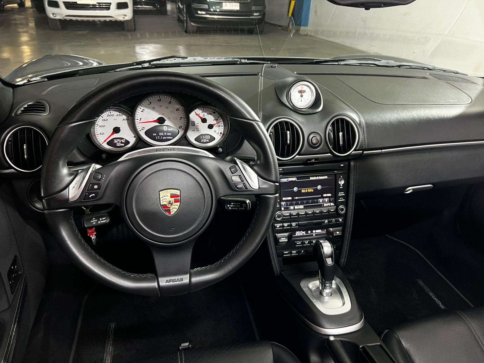 Mantenimiento al día, dos juegos de llaves, versión S 987.2, motor seis cilindros central bóxer 3.400 CC con 310 HP y 360 NM, frenos con discos perforados, caja de cambios automática PDK doble embrague siete velocidades con paddle shift, modos de conducción, volante multifuncional, computador a bordo, pantalla touch, sensores de estacionamiento, climatizador, tapiz de cuero, asientos eléctricos con calefacción en dos niveles, sistema de audio alta fidelidad Bose.
