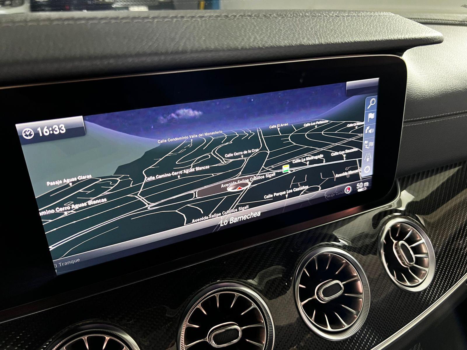 Mantenimiento al día, dos juegos de llaves, versión cabrio (convertible), motor seis cilindros 3.000 CC turbo, caja de cambios automática con paddle shift, modos de conducción, tracción integral 4MATIC, frenos con discos perforados, volante multifuncional con velocidad crucero, computador a bordo, tablero digital, pantalla con cámaras de estacionamiento y navegador, botón de encendido start-stop, climatizadores delanteros independientes, molduras fibra de carbono, sistema de audio alta fidelidad Burmester, asientos eléctricos con memorias, calefacción y enfriador en tres niveles.