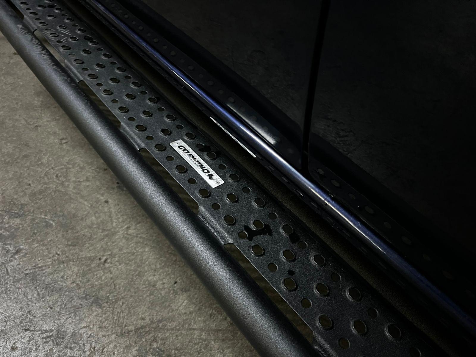 .Motor cuatro cilindros 2.300 CC turbo diésel, tracción 4x4 con reductora y bloqueo de diferencial, pisaderas laterales, compartimiento rígido plegable cubre carga, caja de cambios automática, volante multifuncional con velocidad crucero, computador a bordo, botón de encendido start-stop, pantalla con cámaras de estacionamiento (trasera, delantera y laterales), climatizadores independientes, tapiz Alcántara, asientos eléctricos con calefacción en dos niveles.