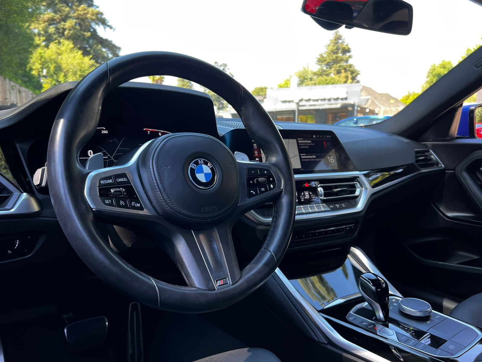 Mantenimientos en concesionario oficial de la marca, único dueño, versión coupe M Sport, motor cuatro cilindros 2.000 CC twin power turbo con 190 HP, caja de cambios automática Steptronic ocho velocidades con paddle shift, tracción trasera, volante multifuncional con velocidad crucero y reconocimiento por voz, computador a bordo, tablero digital, pantalla iDrive con cámara trasera de estacionamiento, navegador y conectividad para Apple CarPlay y Android Auto, climatizadores delanteros independientes, botón de encendido start stop, sunroof, molduras piano black, control de estabilidad, faros de xenón y LED.