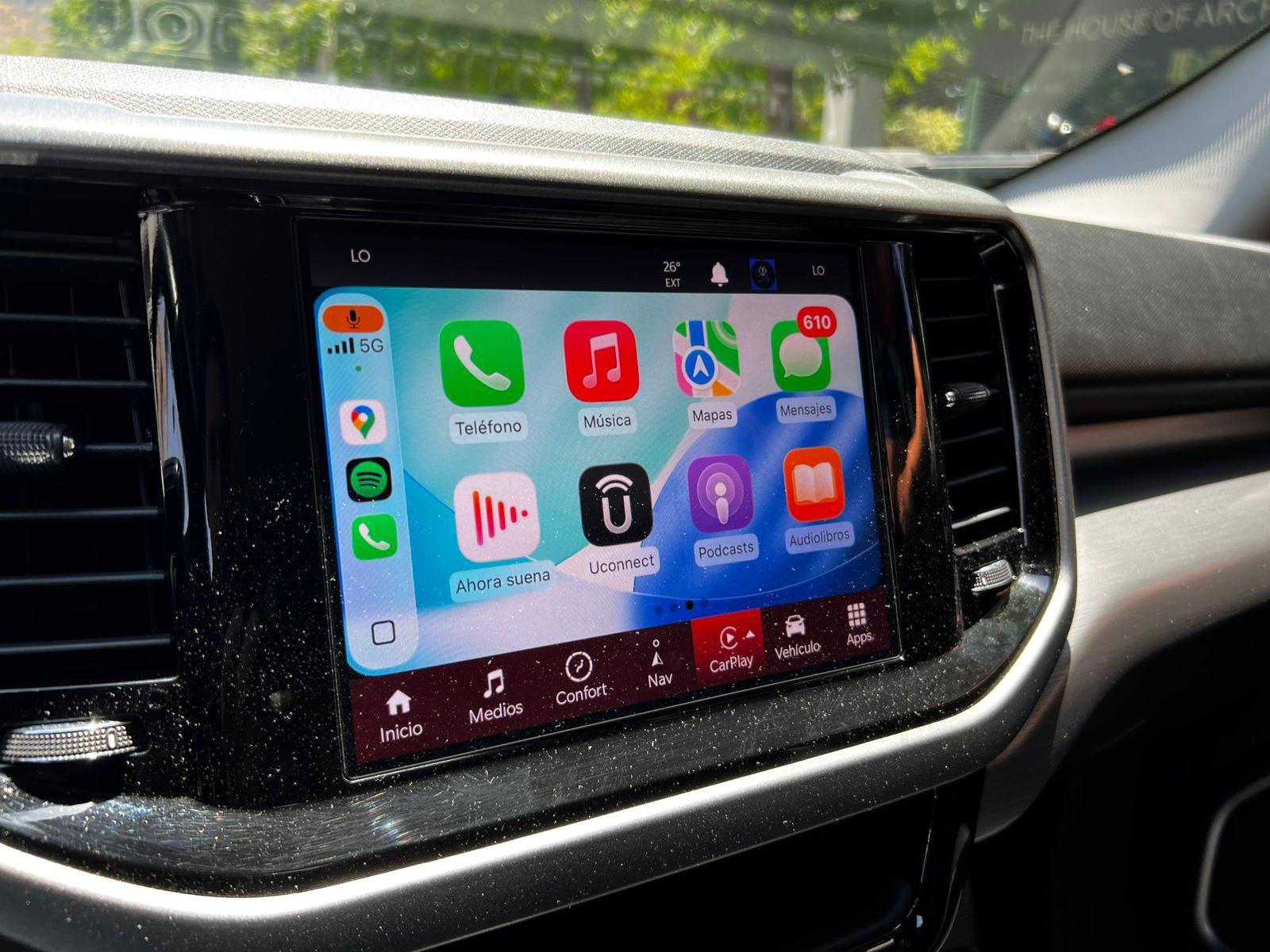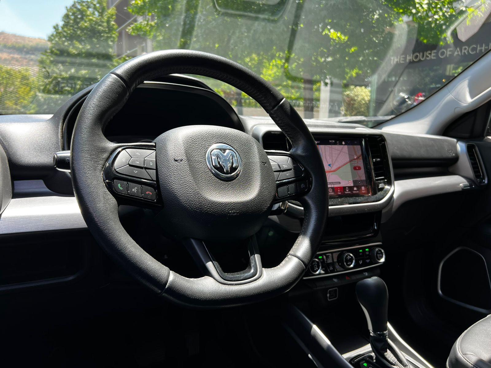 Versión Big Horn LX, motor cuatro cilindros 1.800 CC, caja de cambios automática tiptronic con paddle shift, tracción 4x2, volante multifuncional con velocidad crucero y reconocimiento por voz, computador a bordo, pantalla touch con cámara trasera de estacionamiento, navegador y conectividad para Apple CarPlay y Android Auto, climatizadores delanteros independientes, control de estabilidad.