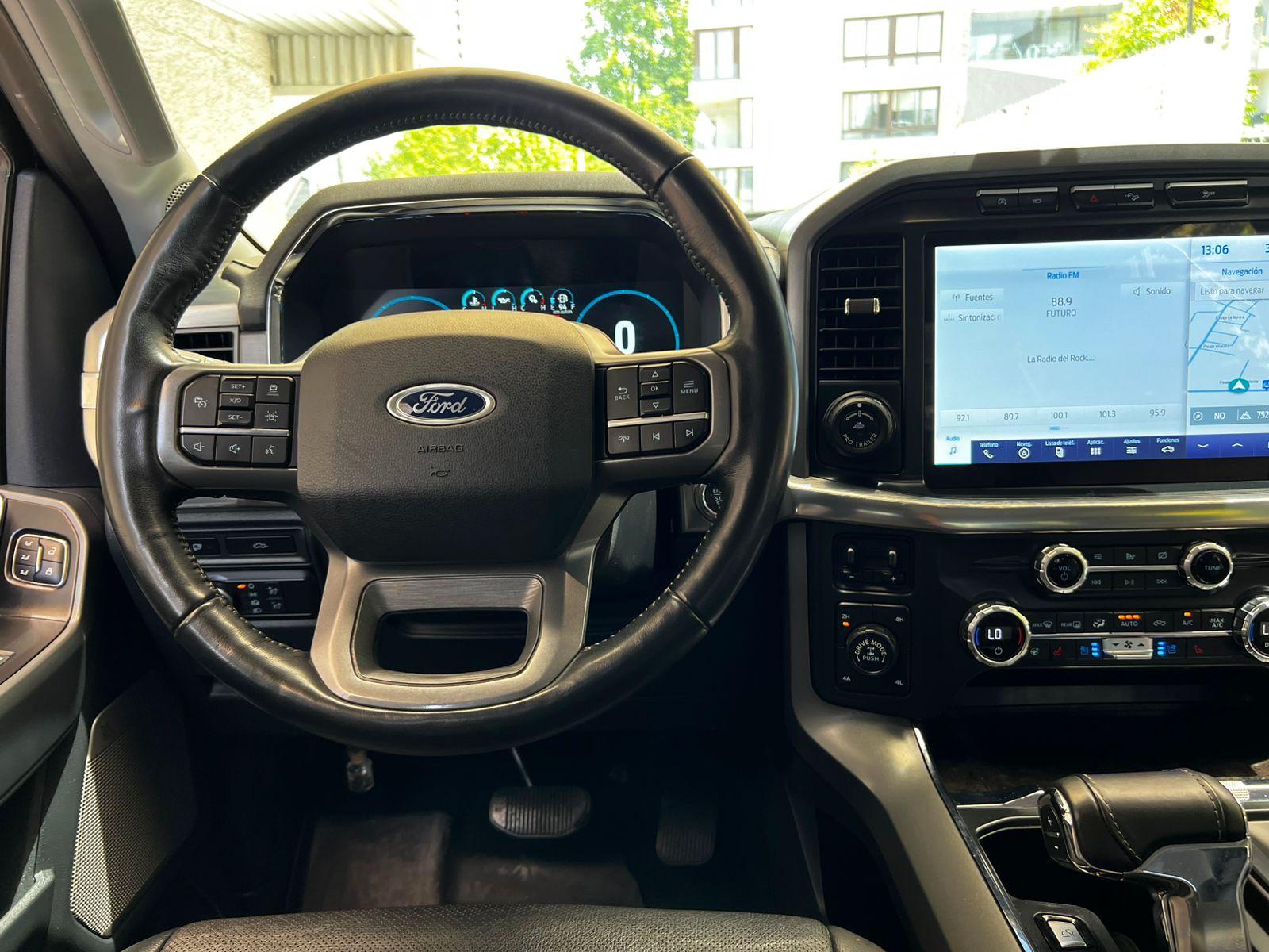 Único dueño, mantenimiento en concesionario oficial de la marca, versión Lariat Luxury, motor ocho cilindros 5.000 CC, caja de cambios automática tiptronic diez velocidades, modos de conducción, tracción 4x4 con reductora, compartimiento rígido plegable cubre carga, pisaderas laterales, volante multifuncional con velocidad crucero, calefacción y comando por voz, sistema de audio alta fidelidad Bang & Olufsen, pantalla touch con cámaras de estacionamiento (trasera, delantera y laterales), navegador y conectividad para Apple CarPlay y Android Auto, climatizadores delanteros independientes, tapiz de cuero, botón de encendido start stop, techo panorámico, asientos eléctricos con memorias, calefacción y enfriador.