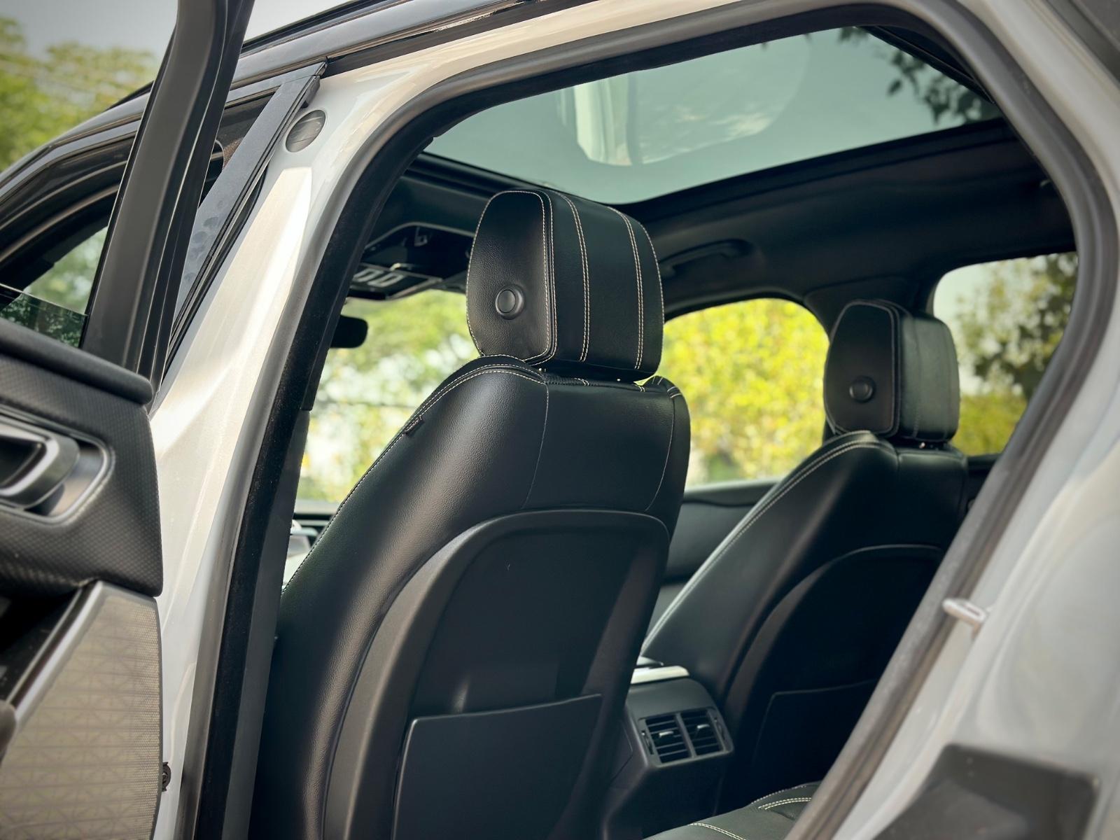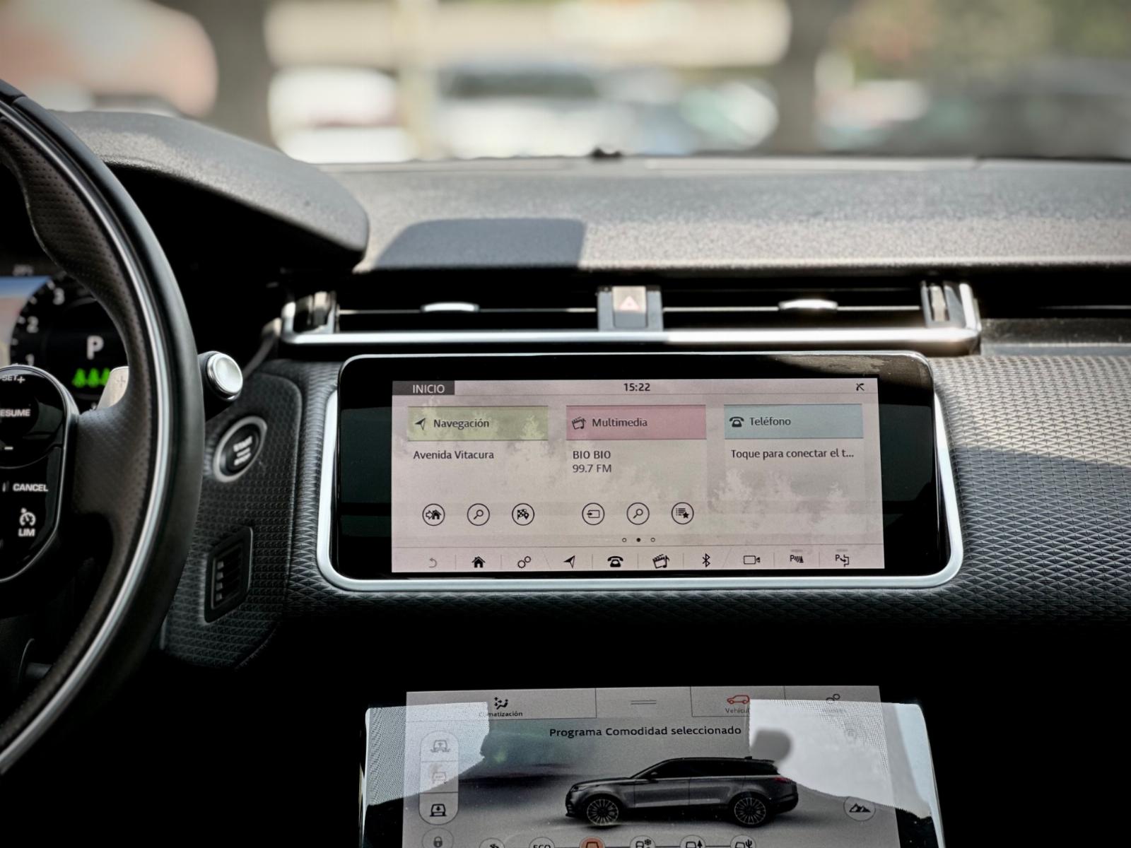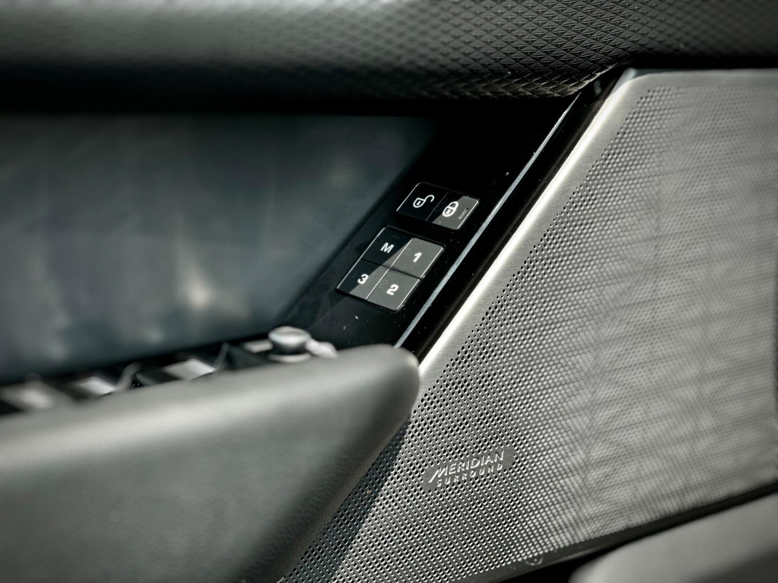 El interior ofrece un alto estándar de confort con asientos de cuero eléctricos con memoria para el conductor, techo panorámico sunroof, sistema de audio Meridian, climatizador bi zona independiente y doble pantalla táctil para infoentretenimiento y control de funciones del vehículo. Integra tablero digital, volante multifuncional, paddle shift, botón de encendido y freno de mano electrónico.