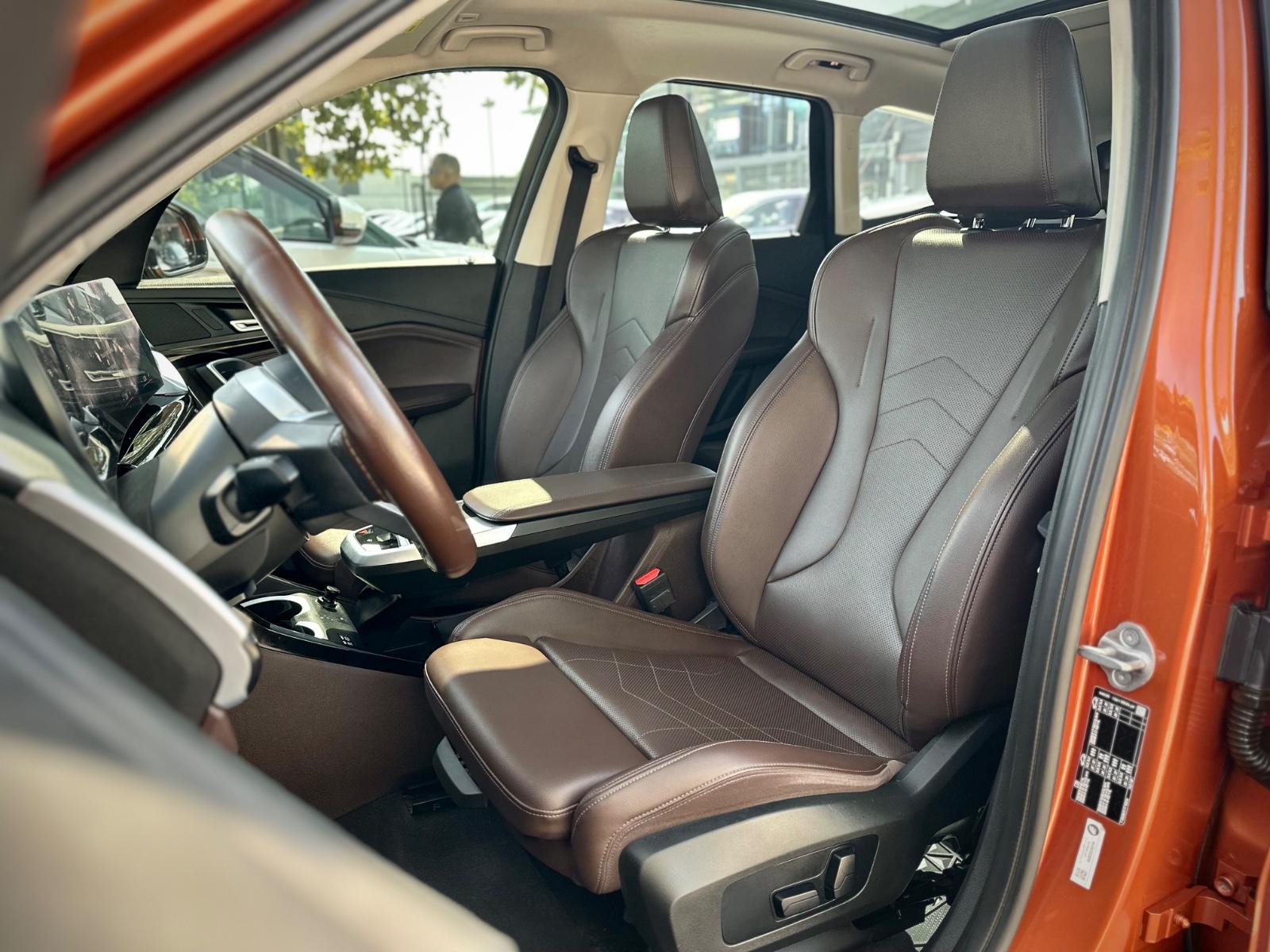 El interior ofrece un alto nivel de equipamiento y terminaciones, con butacas de cuero color café calefactables, ajuste eléctrico y memorias para el conductor, volante multifuncional calefactable, tablero digital configurable y sistema de infoentretenimiento compatible con Apple CarPlay y Android Auto. Cuenta además con climatizador bi zona, cargador inalámbrico, acceso keyless y sunroof panorámico, aportando confort y luminosidad al habitáculo.