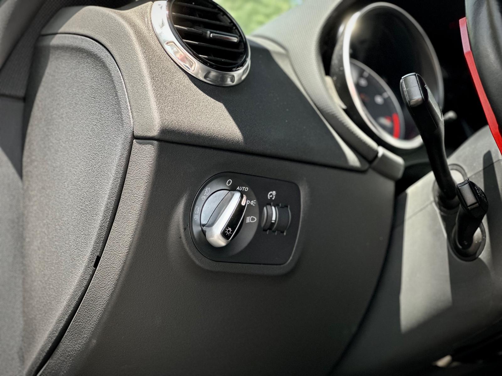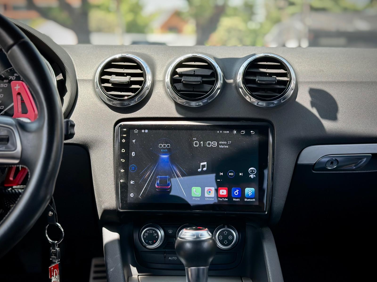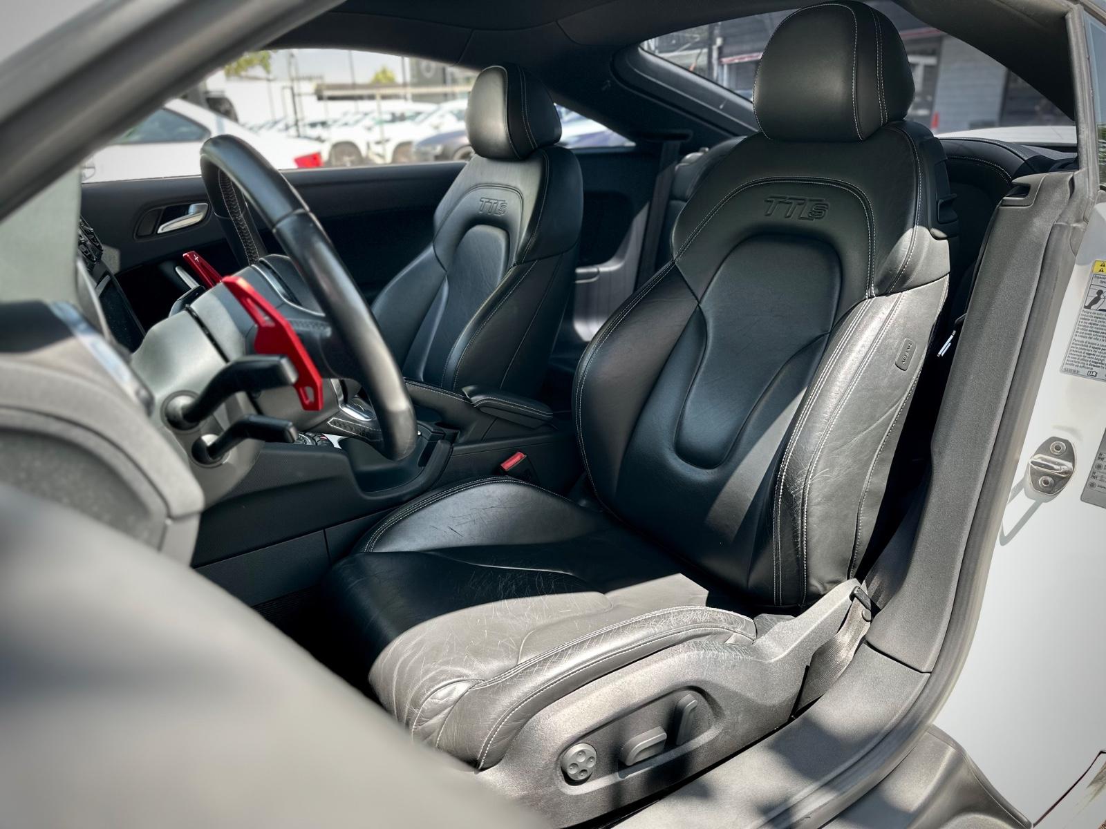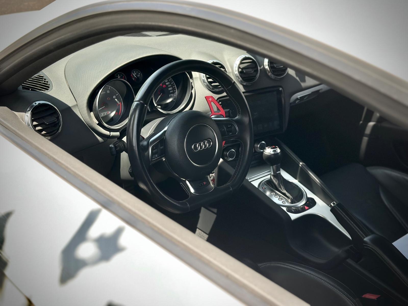 Interior deportivo con butacas en cuero TTS eléctricas, volante multifunción con paddle shift, pantalla multimedia, climatizador y control crucero. Incluye sensores de estacionamiento y limpiafaros.