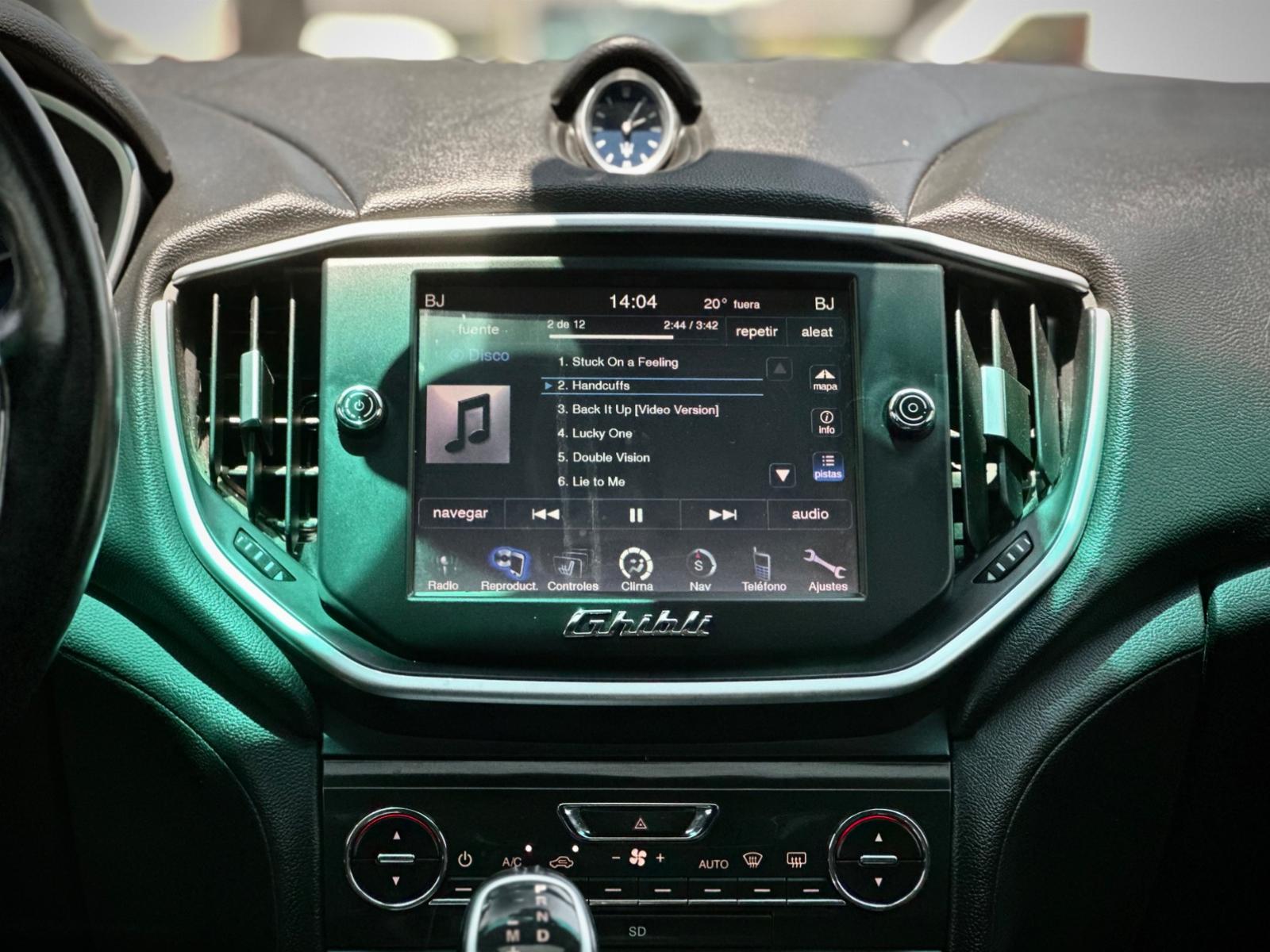 Maserati Ghibli 3.0 V6 Biturbo año 2015, sedán deportivo de lujo con motor V6 biturbo a gasolina y transmisión automática, que entrega una conducción potente y refinada. Destaca por su diseño italiano, llantas cromadas, iluminación LED y sunroof. Incorpora acceso keyless con botón de encendido, modos de conducción, tablero digital y sistema Maserati Connect. Equipado con asientos de cuero eléctricos con memoria para el conductor, cuatro plazas calefaccionadas, climatizador bi-zona, control crucero y comandos al volante. Suma sensores de estacionamiento 360°, cámara de retroceso, frenos de disco perforados, freno de mano electrónico e ISOFIX.