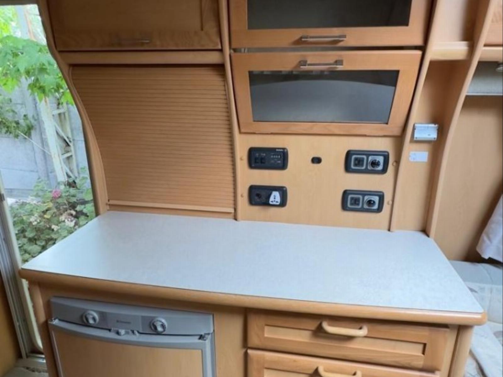 Excelente estado, realmente impecable, cuenta con amplio baño ducha, WC, lava manos, espejo, en la zona habitacional, living que se transforma en cama matrimonial la que puede acomodar fácilmente a 3 personas, mesa de comedor plegable, refrigerador, calefacción, microondas, cocina 3 platos, horno, lava platos, calefactor para agua caliente, 2 estanque para agua, cuenta con sistema de electricidad mediante 3 paneles solares de 150 Wats cada uno, batería de ciclo profundo de 200 Amp, Inverso a 12 Volts y alargador para conectarse a red domiciliaria.