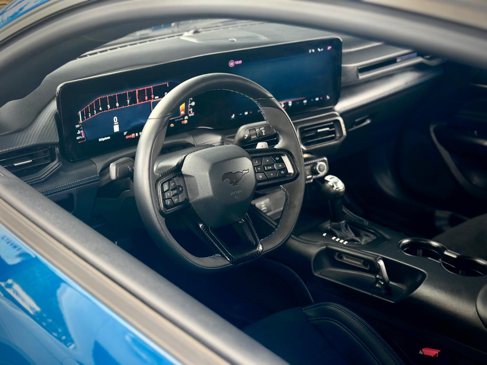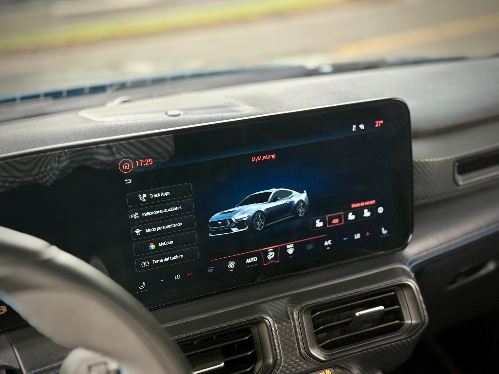 Ford Mustang Dark Horse Automático 2025, equipado con motor 5.0 V8 y transmisión automática, desarrollado para ofrecer máximo desempeño y carácter deportivo en cada aceleración. Incorpora suspensión deportiva de alto rendimiento, diferencial de deslizamiento limitado y sistema de escape deportivo activo, junto a modos de conducción Normal, Sport, Track y Drag, permitiendo adaptar el comportamiento del vehículo a distintas exigencias. En su exterior destaca por luces Full LED y llantas exclusivas Dark Horse. En el interior ofrece butacas deportivas en cuero y alcántara con ajuste eléctrico, memorias y climatización, volante deportivo multifunción calefactable con paddle shift, tablero digital configurable y pantalla de infoentretenimiento con Apple CarPlay y Android Auto. Incluye control crucero adaptativo, sensores de estacionamiento 360°, cámara de retroceso, acceso Keyless, botón de encendido y freno de mano electrónico, consolidando una experiencia de conducción moderna, potente y altamente tecnológica.