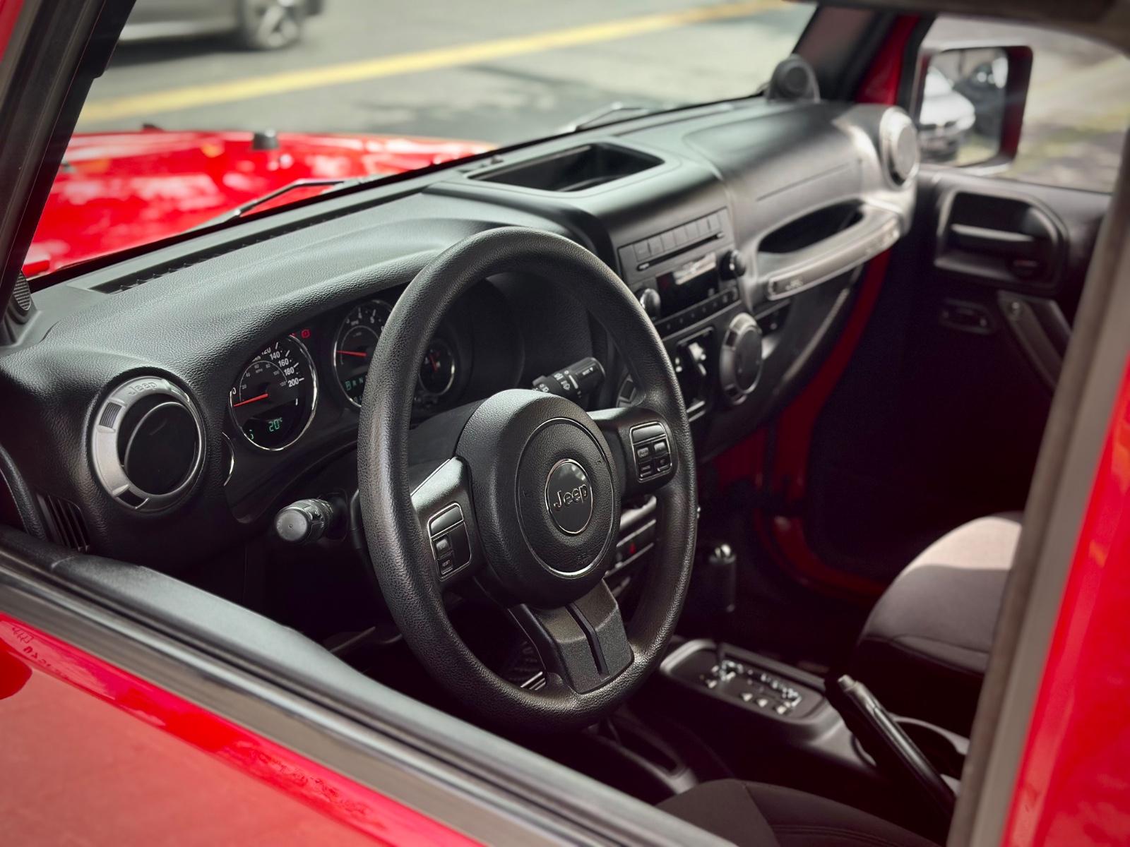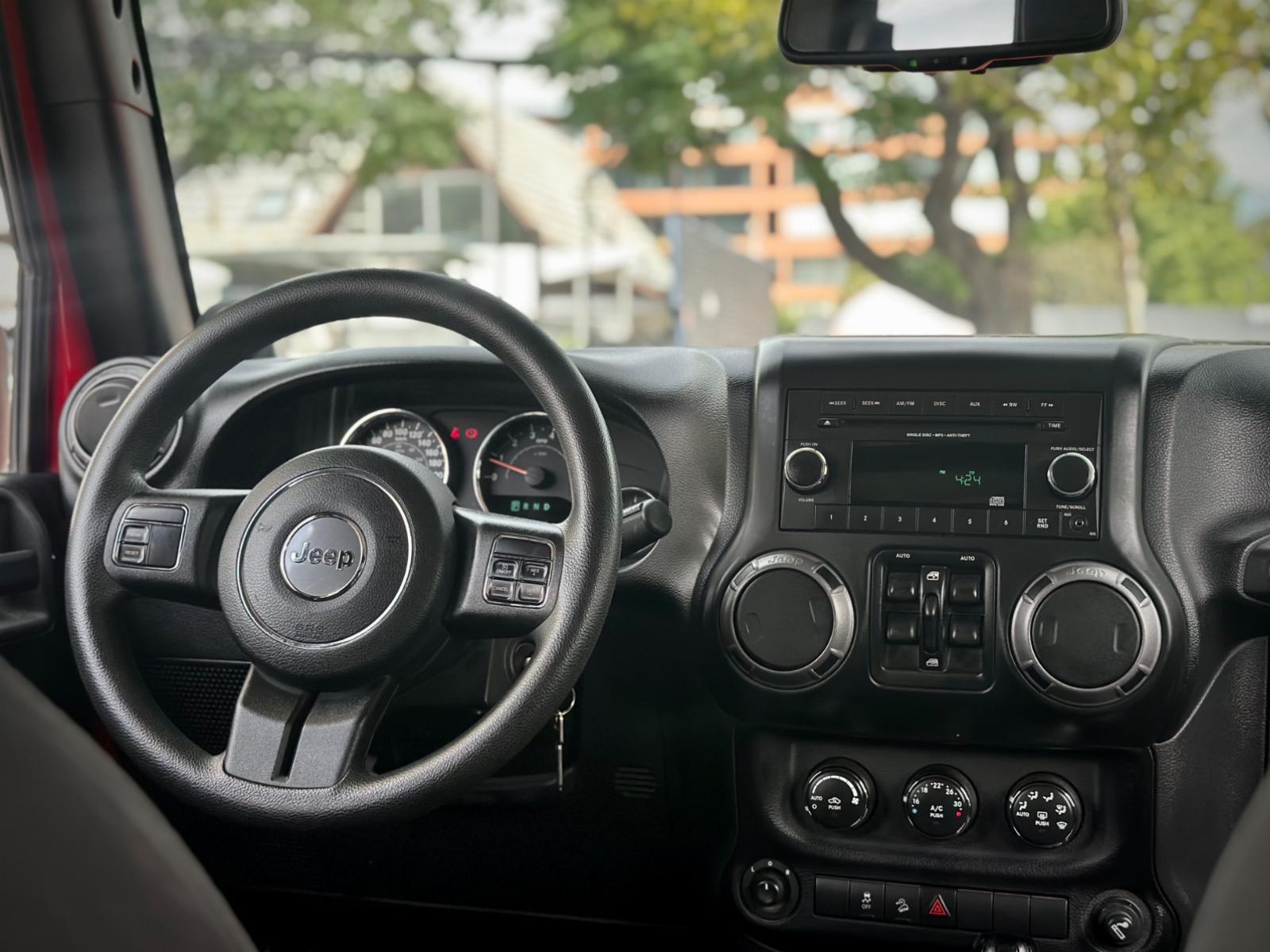 Jeep Wrangler Unlimited Sport 3.6 4x4 2014, equipado con motor gasolina 3.6 y transmisión automática con caja tiptronic, reconocido por su robustez, capacidades off-road y diseño icónico con carrocería desmontable. Incorpora sistema de tracción 4x4 y asistente en pendiente, ideales para un desempeño confiable en terrenos exigentes. Cuenta con llantas off-road KMC, neblineros y cámara de retroceso. En su interior ofrece butacas en tela con calefacción, comandos al volante, control crucero, climatizador y sistema de audio Alpine. Además, integra conectividad Apple CarPlay, combinando espíritu aventurero con equipamiento funcional para el uso diario y recreativo.