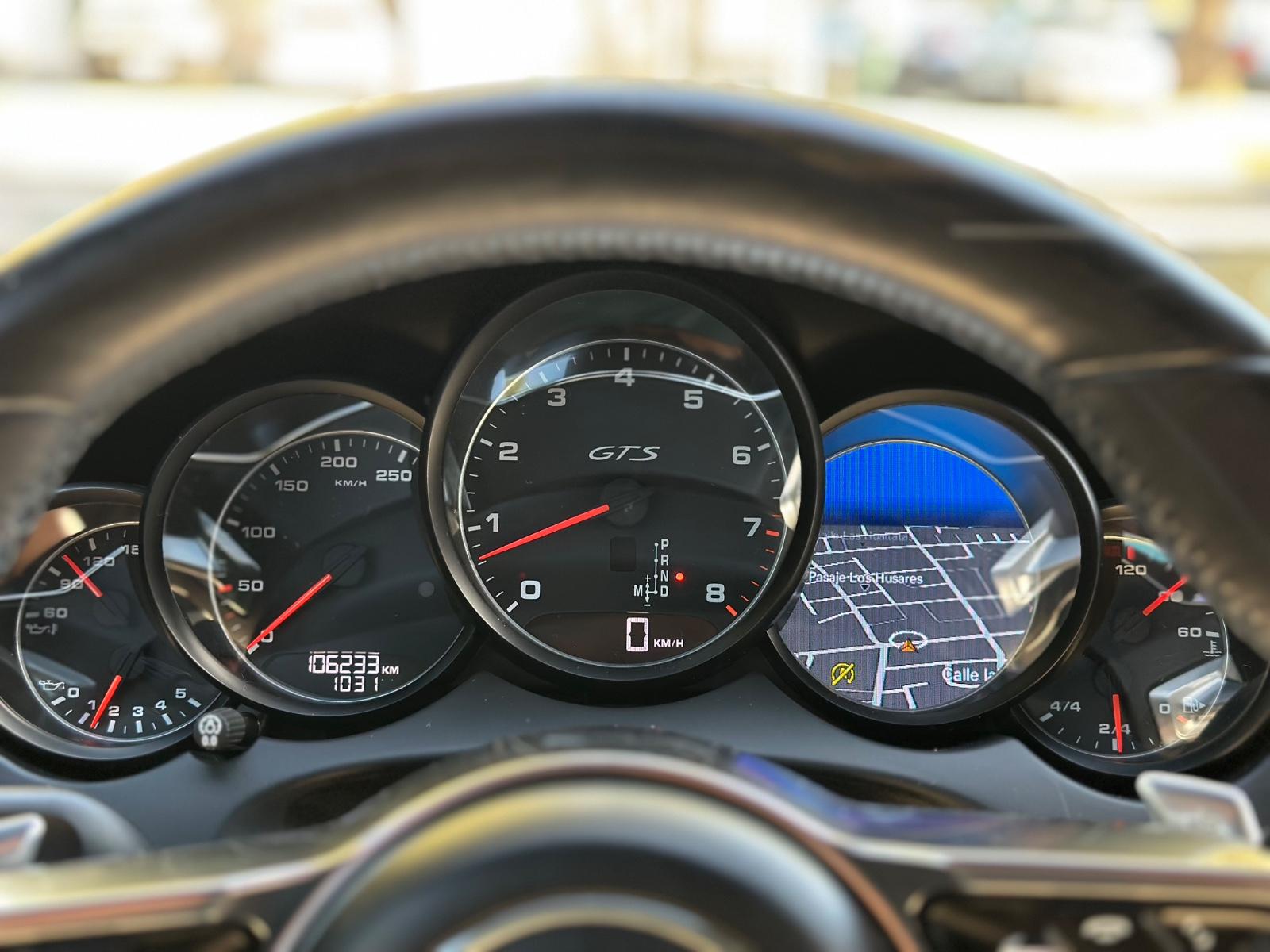 Exterior con llantas Porsche GTS, luces LED, neblineros, sensores de estacionamiento en 360°, sensor de punto ciego, sunroof y enganche americano. Interior con butacas en cuero y alcántara calefaccionadas, ajuste eléctrico y memoria para conductor, climatizador de tres zonas, sistema de audio BOSE, pantalla de infoentretenimiento, tablero análogo con pantalla, volante multifunción con paddle shift, control crucero con limitador, anclajes ISOFIX, freno de mano electrónico y apertura automática del portalón trasero.