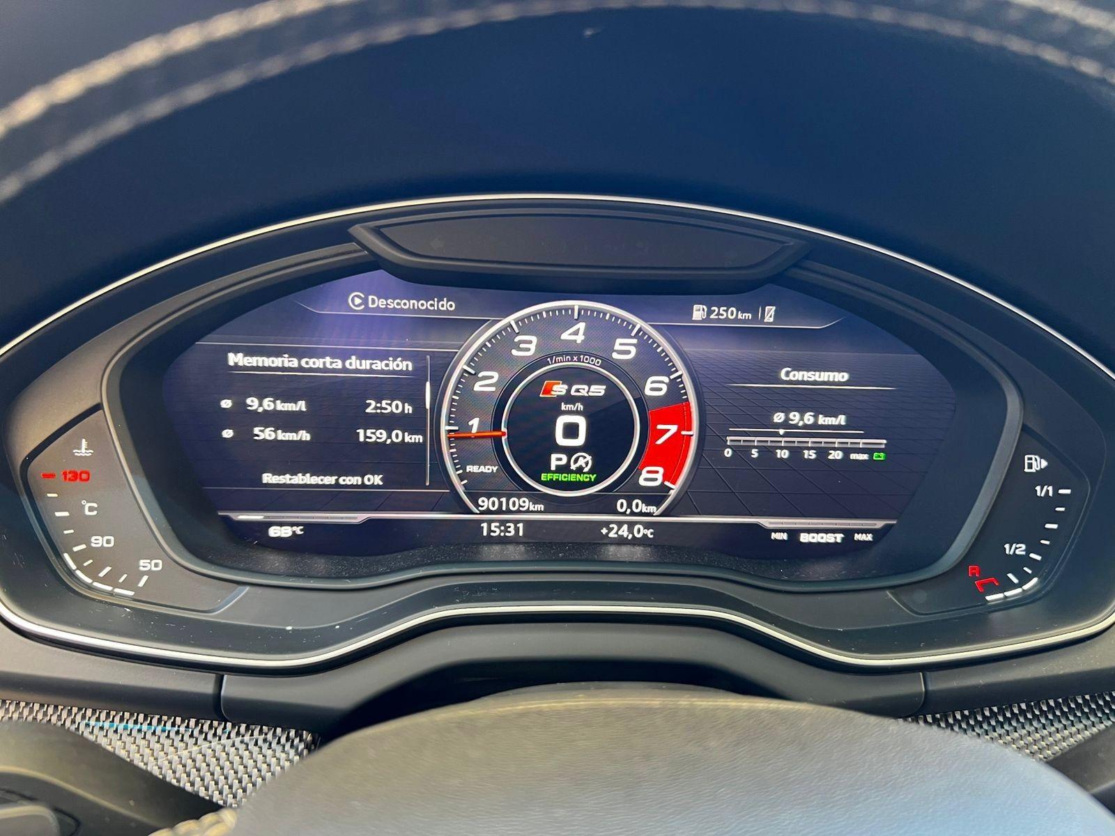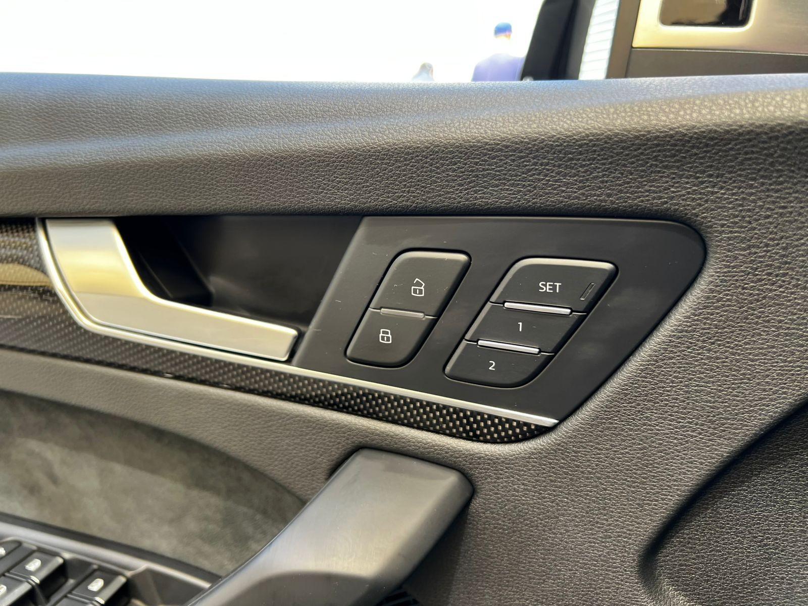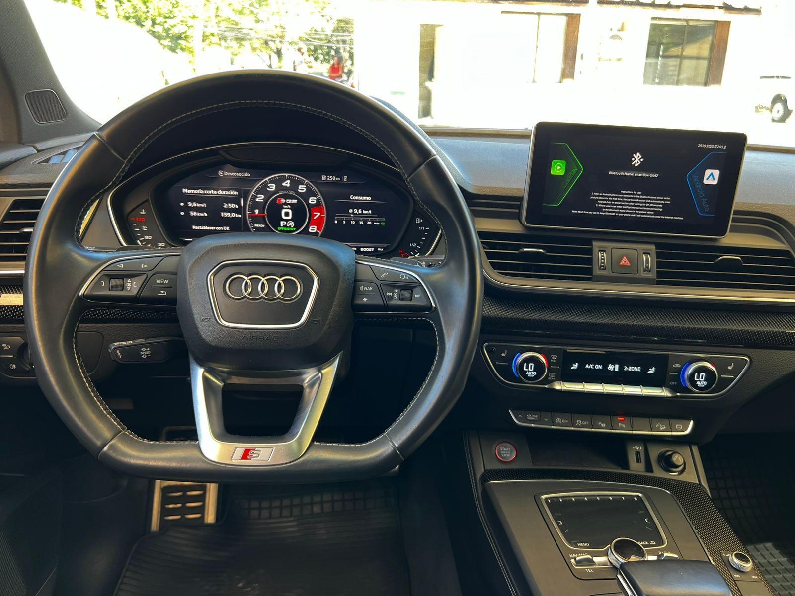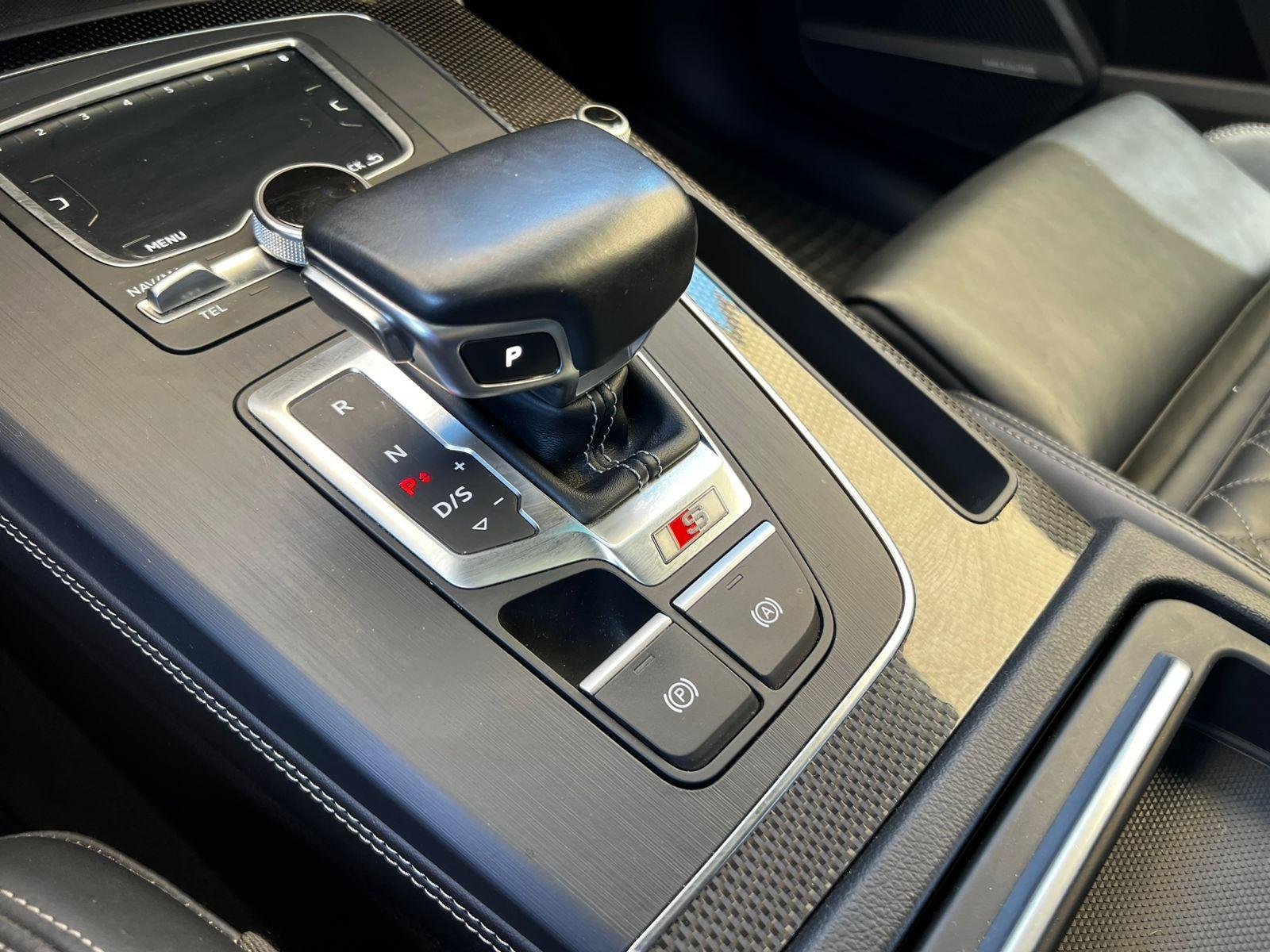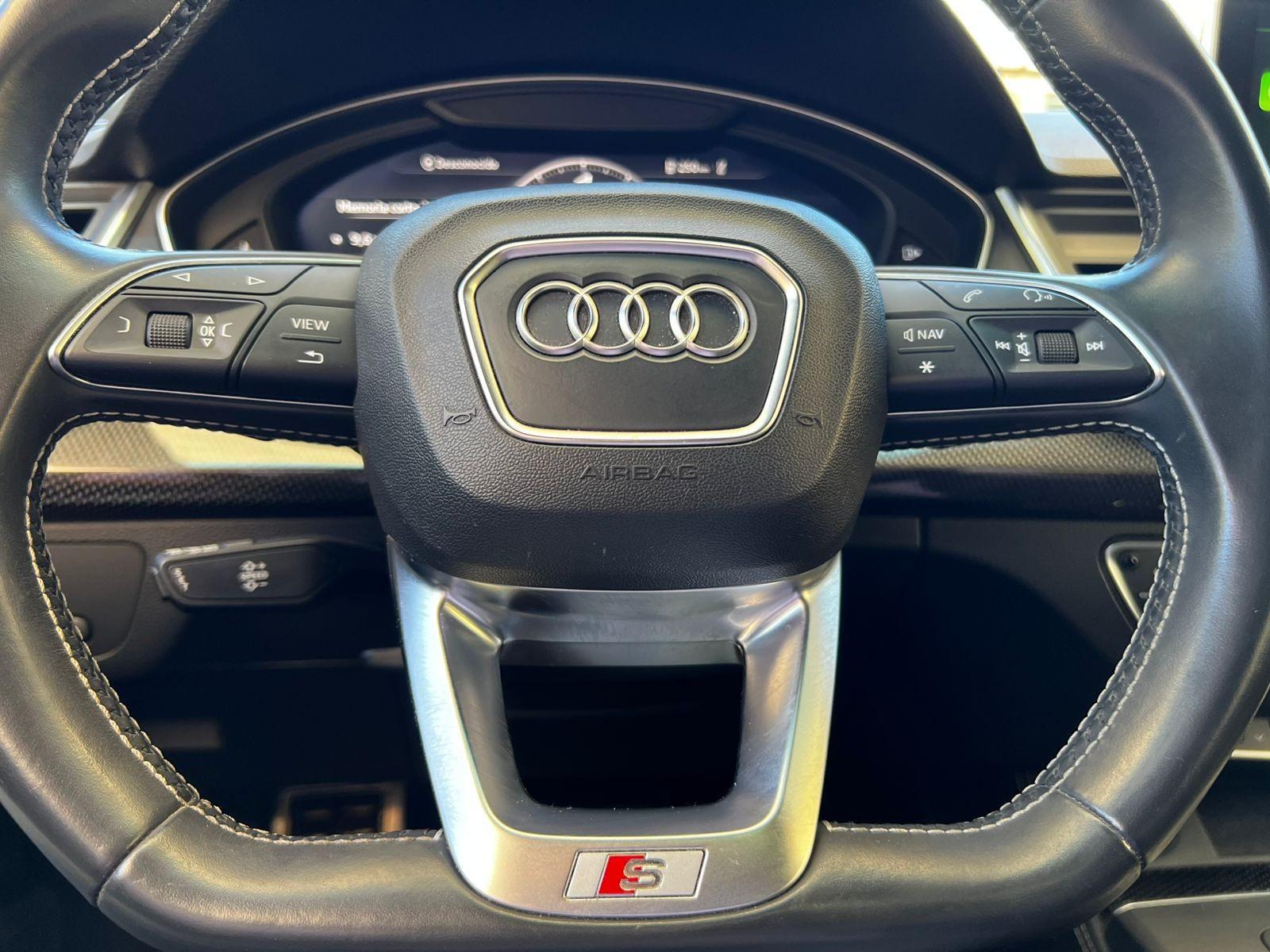 Mantenimiento en concesionario oficial de la marca, motor seis cilindros 3.000 CC Supercargado, tracción integral permanente Quattro, caja de cambios automática con paddle shift, modos de conducción, volante multifuncional con velocidad crucero y reconocimiento por voz, tablero digital, computador a bordo, pantalla con cámara trasera de estacionamiento, sensores delanteros, navegador y conectividad para Apple CarPlay y Android Auto, molduras interiores en fibra de carbono, tres climatizadores independientes (dos delanteros y uno trasero), control de descenso y estabilidad, botón de encendido start-stop, asistente de aparcamiento automático, techo panorámico, sistema de audio alta fidelidad Bang & Olufsen, asientos eléctricos con memorias y calefacción en tres niveles, tapiz de cuero.