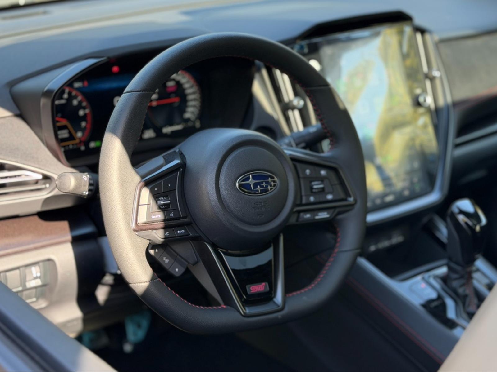 - Volante STI multifunción de cuero.