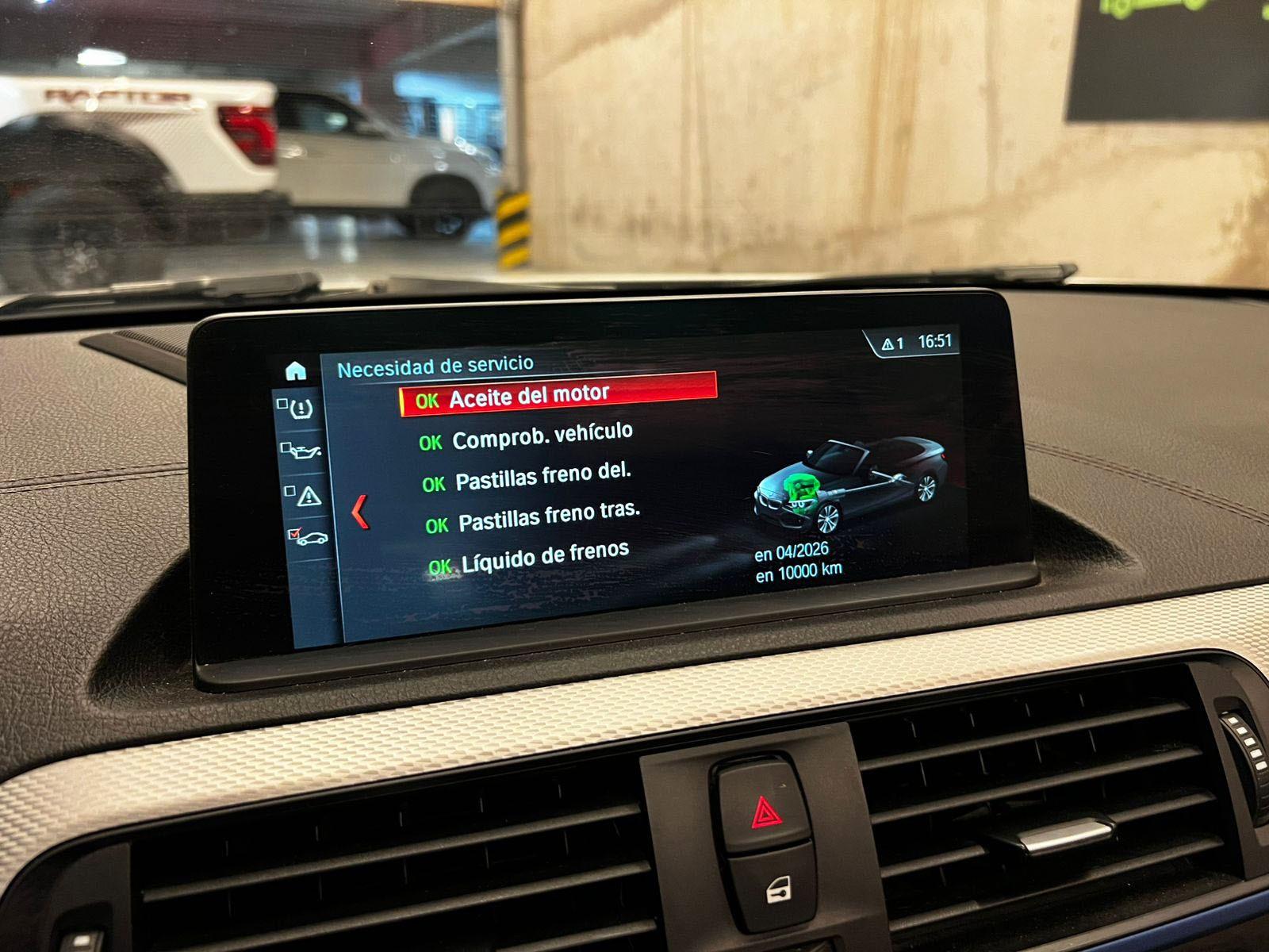 Mantenimiento al día, dos juegos de llaves, versión Cabrio (convertible), motor seis cilindros 3.000 cc TwinPower Turbo, caja de cambios automática Steptronic ocho velocidades con paddle shift, modos de conducción, tracción trasera, volante multifuncional con velocidad crucero y reconocimiento por voz, computador a bordo, bluetooth, pantalla iDrive con cámara trasera de estacionamiento, navegador y disco duro, sistema de sonido Harman/Kardon, tapiz Alcántara, climatizadores delanteros independientes.