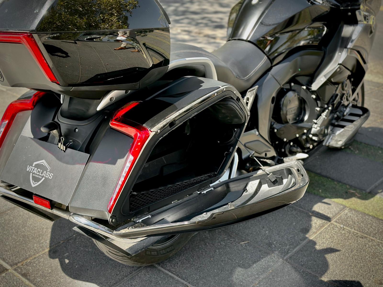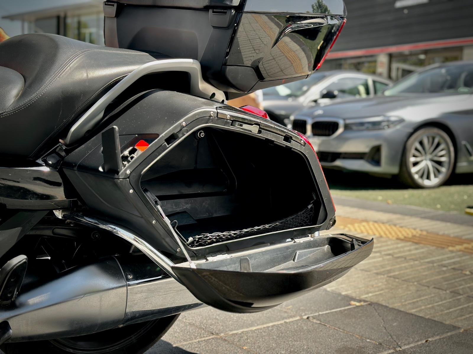 En seguridad y practicidad destaca su iluminación full LED adaptativa, control de presión de neumáticos (RDC) y sistema de marcha atrás asistida, facilitando maniobras pese a su tamaño. Para viajes largos incorpora maletas laterales rígidas y top case trasero con respaldo para el pasajero, entregando gran capacidad de carga y comodidad.