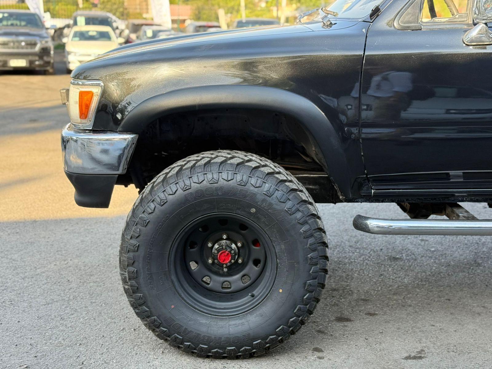 Neumáticos MT, pisaderas laterales, neblineros, motor 2.400 CC, tracción 4x4 con reductora, caja de cambios manual cinco velocidades, aire acondicionado.