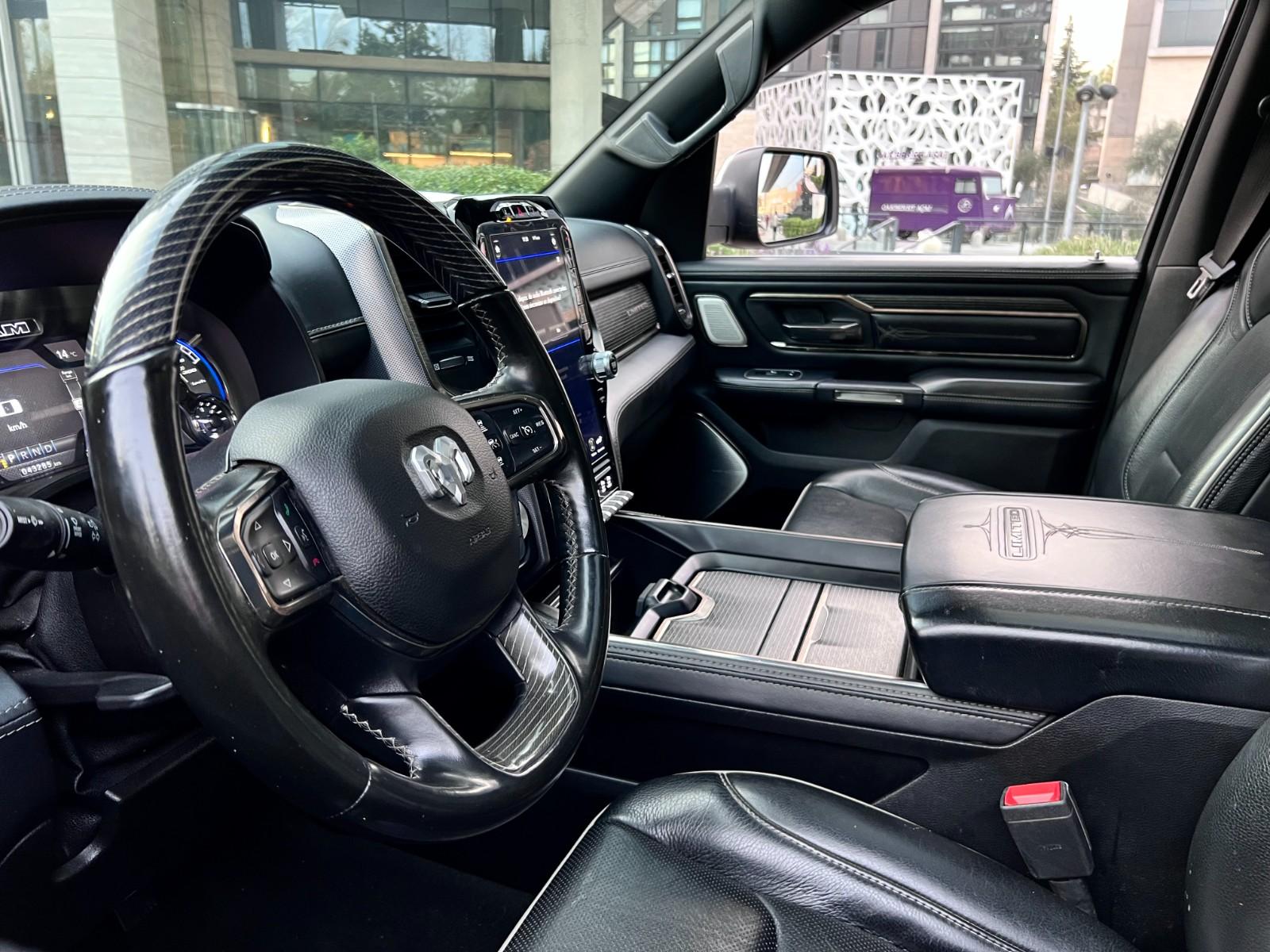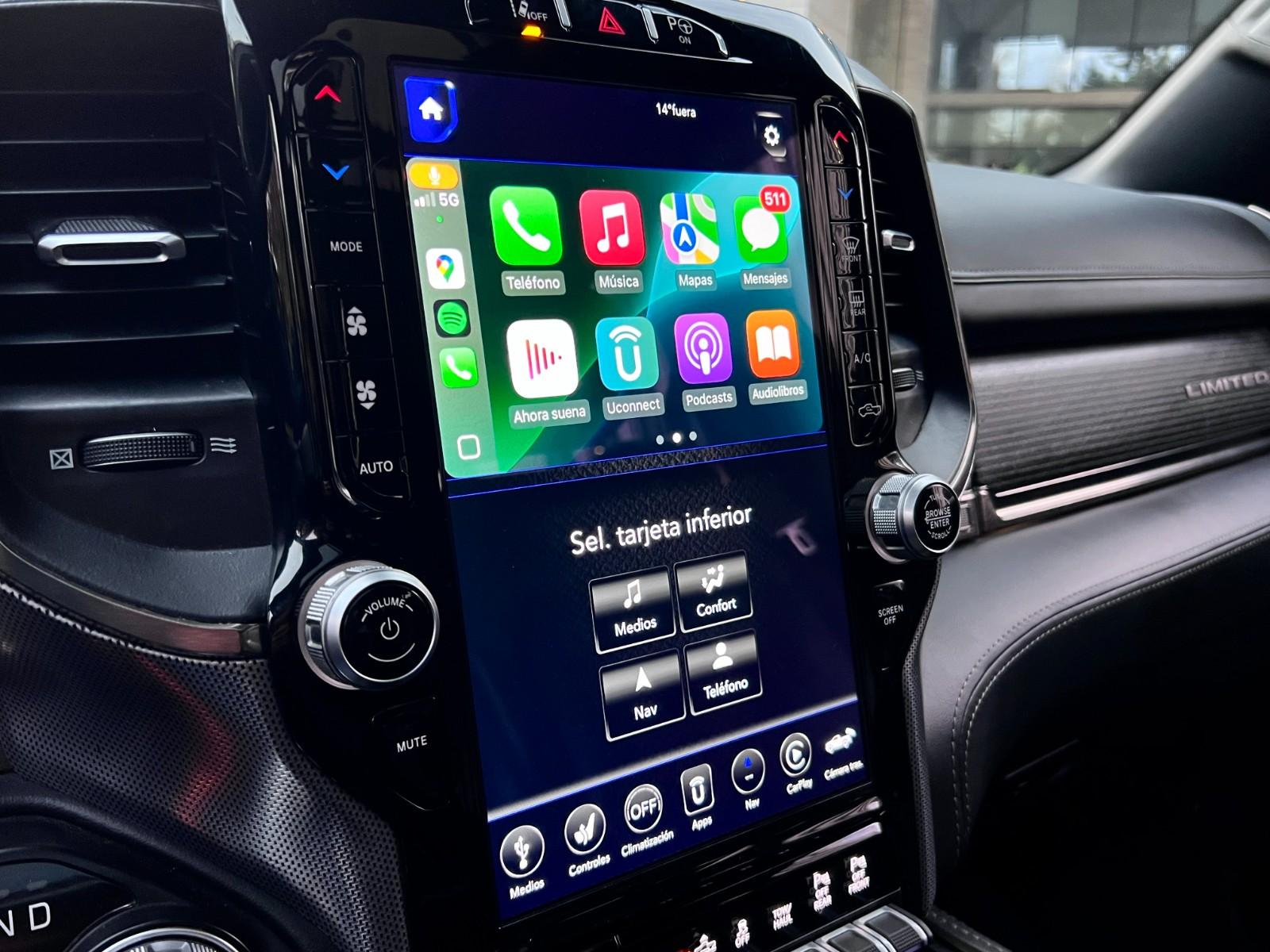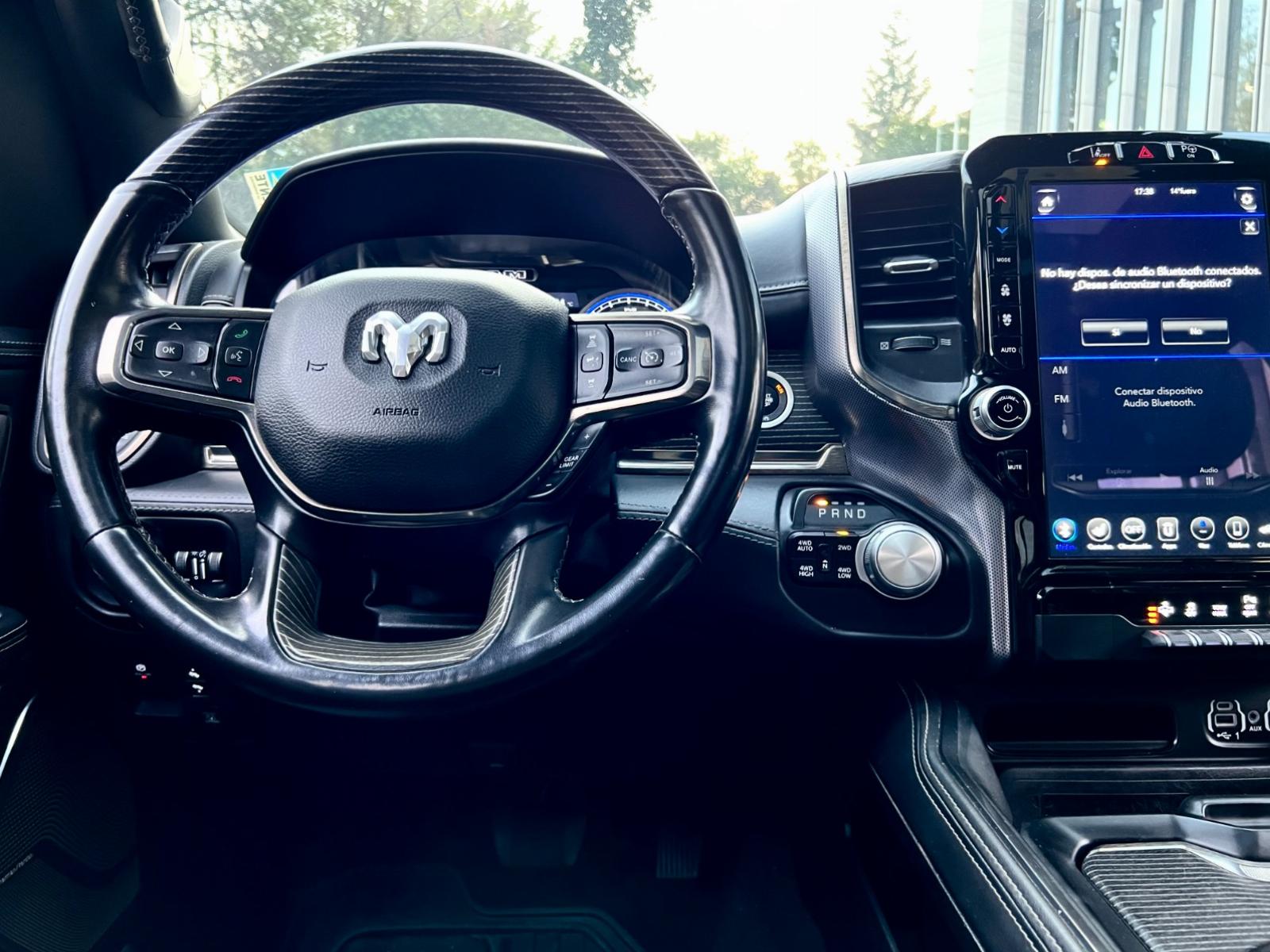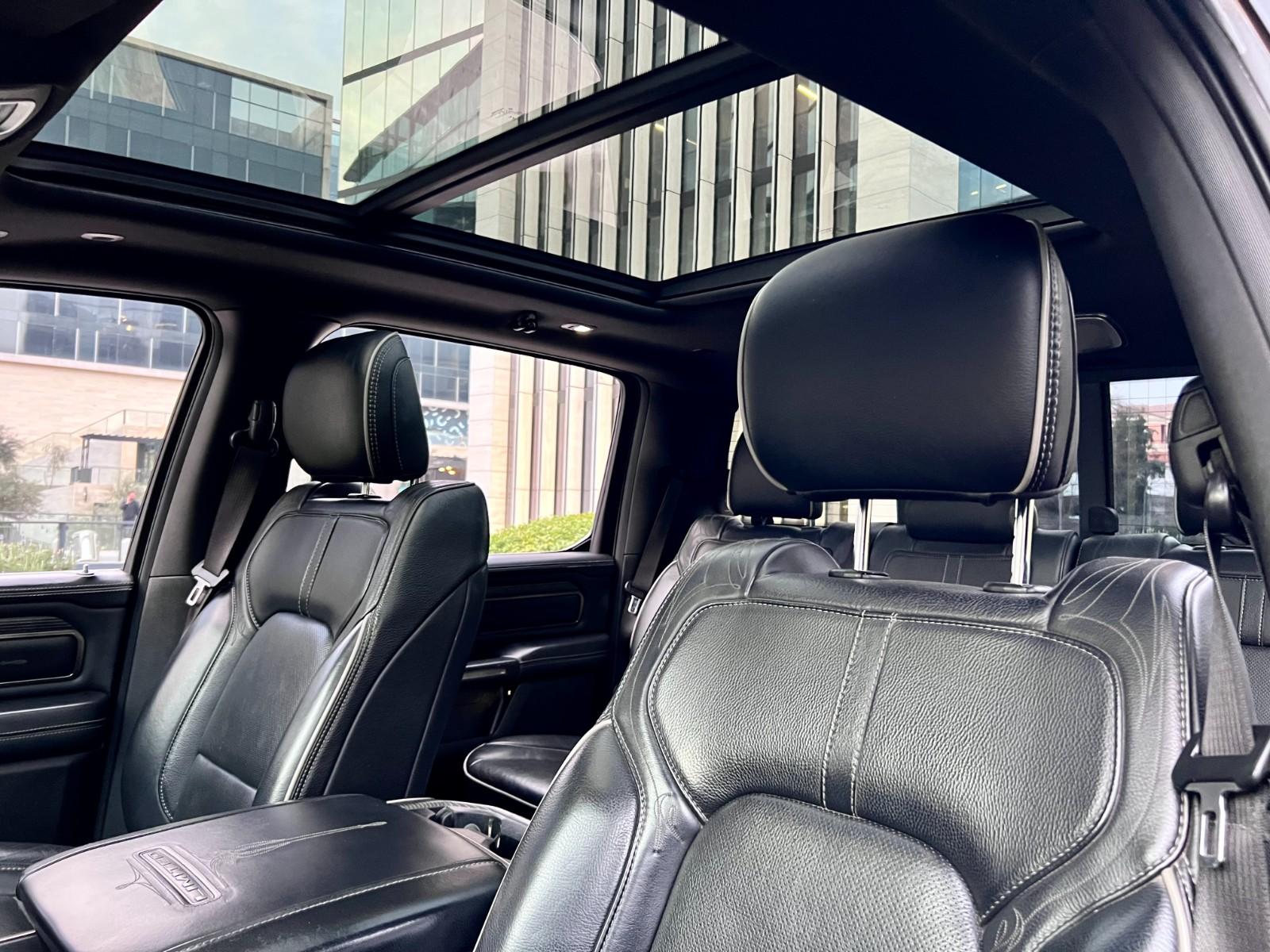 Mantenimiento al día, dos juegos de llaves, versión Limited, motor ocho cilindros 5.700 CC HEMI, pisaderas laterales automáticas, compartimiento rígido plegable cubre carga, caja de cambios automática, modos de conducción, tracción 4x4 con reductora y bloqueo de diferencial, suspensión regulable en altura y rigidez, compartimientos laterales, RAM BOX, volante multifuncional con velocidad crucero, calefacción y comando por voz, computador a bordo, sistema de audio alta fidelidad Harman Kardon, pantalla touch con cámaras de estacionamiento (trasera, delantera y laterales), navegador y conectividad para Apple CarPlay y Android Auto, climatizadores independientes, techo panorámico, tapiz de cuero, asientos eléctricos con memorias, calefacción y enfriador.