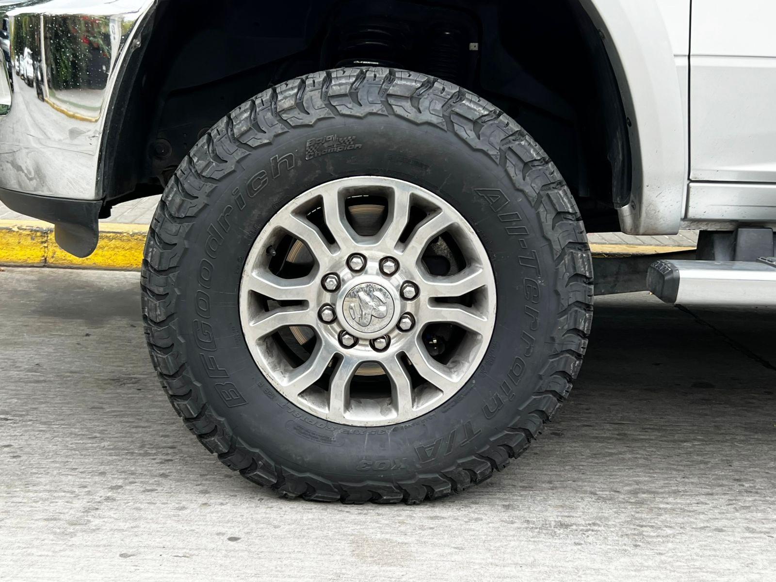 Versión 2500 Laramie, motor 6.700 CC turbo diesel Cummins, tracción 4x4 con reductora, caja de cambios automática, volante multifuncional con velocidad crucero, reconocimiento por voz y calefacción, computador a bordo, bluetooth, pantalla touch con cámara trasera de estacionamiento y navegador, climatizadores delanteros independientes, tapiz de cuero, asientos eléctricos con memorias, calefacción y enfriador en tres niveles, sistema de audio alta fidelidad Alpine, sunroof, seis plazas.
