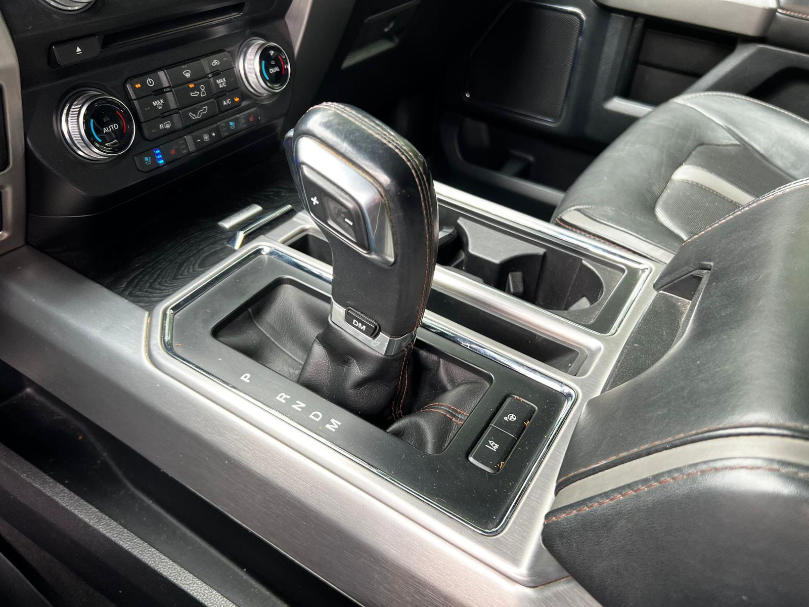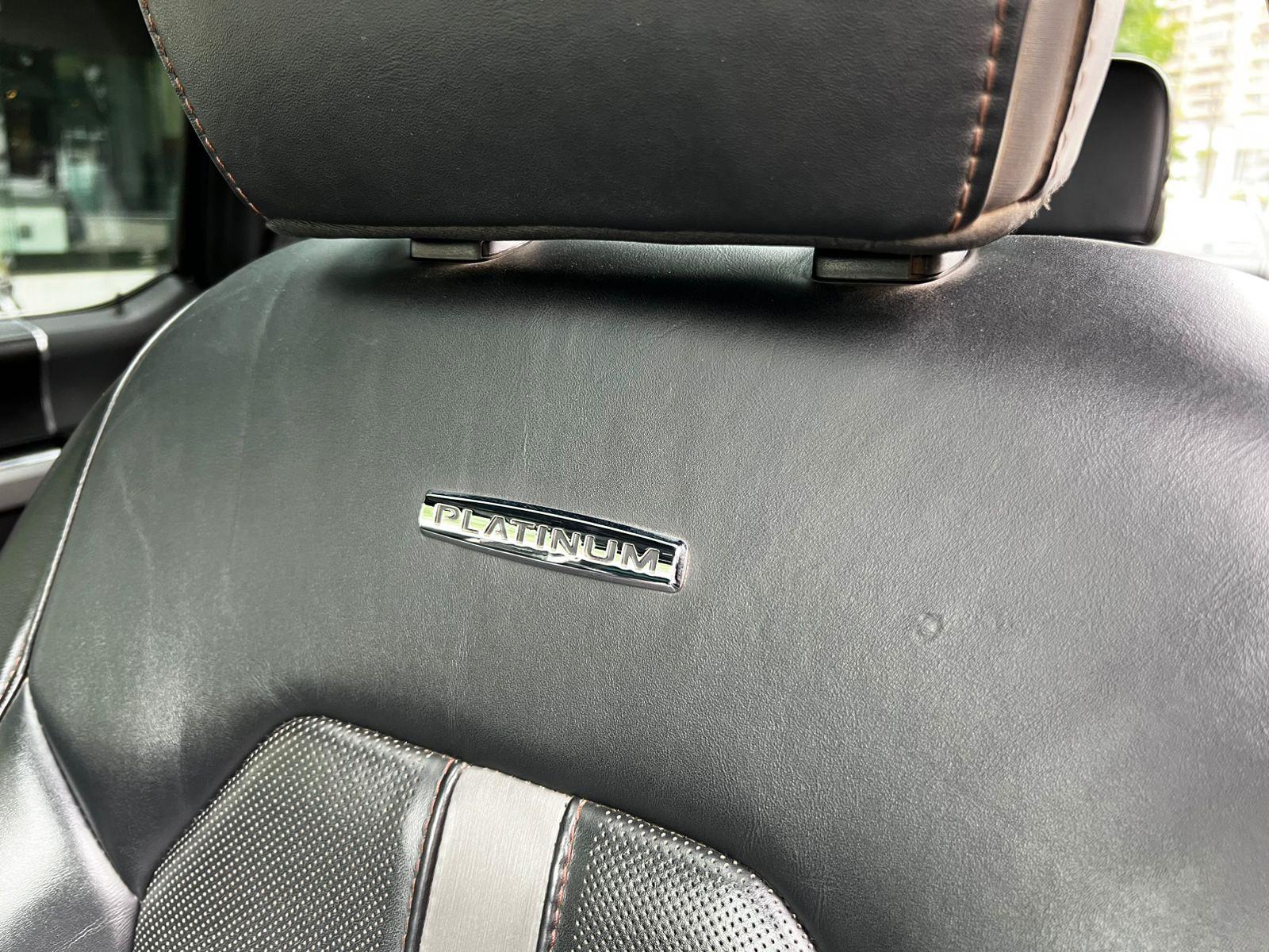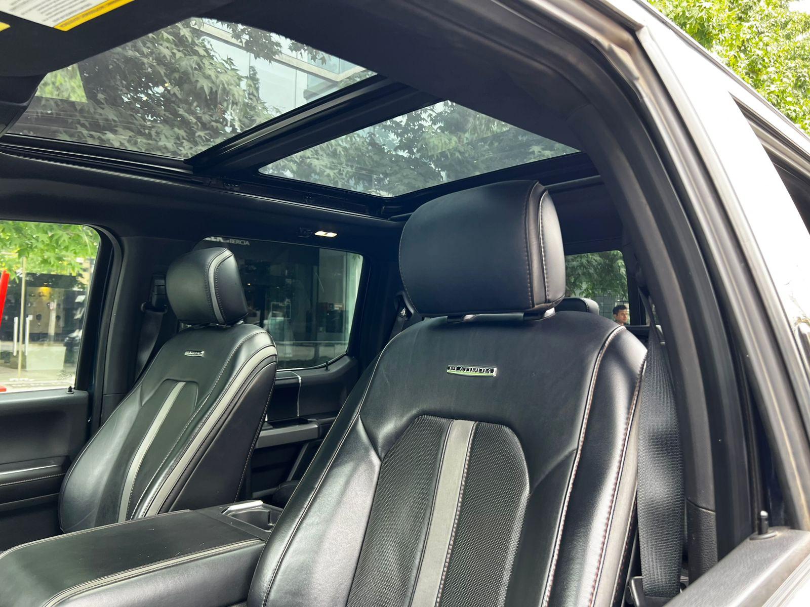Versión Platinum, motor 3.500 CC Ecoboost, caja de cambios automática diez velocidades, modos de conducción, tracción 4x4 con reductora, lona marítima, volante multifuncional con velocidad crucero, calefacción y comando por voz, computador a bordo, sistema de audio alta fidelidad Bang & Olufsen, pantalla touch con cámaras de estacionamiento (trasera, delantera y 360), navegador y conectividad para Apple CarPlay y Android Auto, climatizadores delanteros independientes, asientos eléctricos con memorias, calefacción y enfriador en tres niveles, techo panorámico, tapiz de cuero, pisaderas laterales eléctricas automáticas.