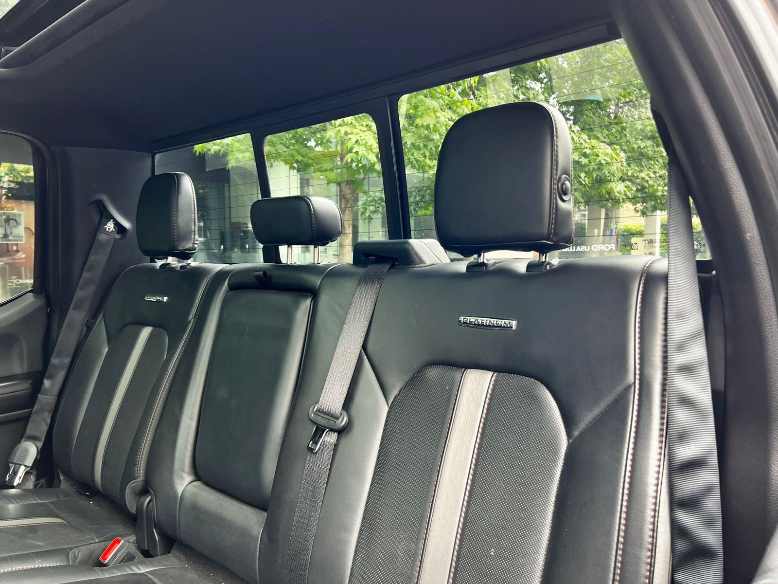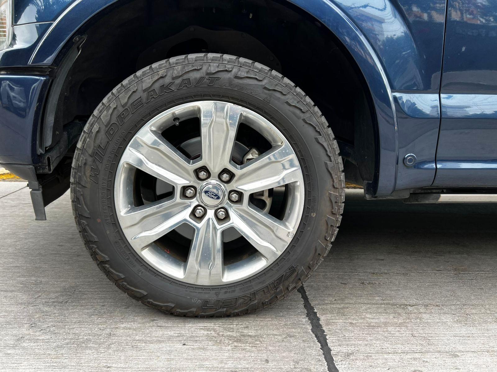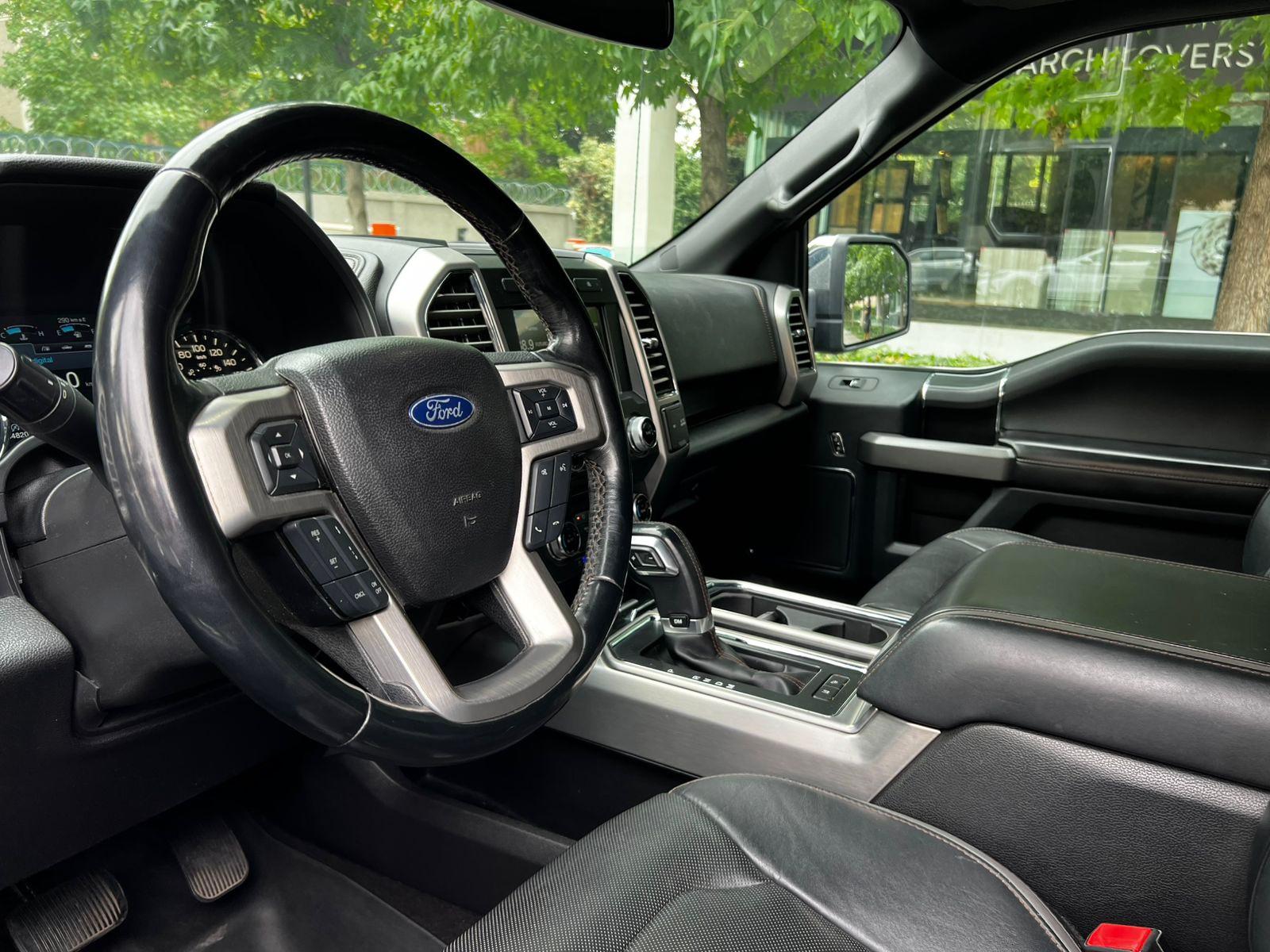 Versión Platinum, motor 3.500 CC Ecoboost, caja de cambios automática diez velocidades, modos de conducción, tracción 4x4 con reductora, lona marítima, volante multifuncional con velocidad crucero, calefacción y comando por voz, computador a bordo, sistema de audio alta fidelidad Bang & Olufsen, pantalla touch con cámaras de estacionamiento (trasera, delantera y 360), navegador y conectividad para Apple CarPlay y Android Auto, climatizadores delanteros independientes, asientos eléctricos con memorias, calefacción y enfriador en tres niveles, techo panorámico, tapiz de cuero, pisaderas laterales eléctricas automáticas.