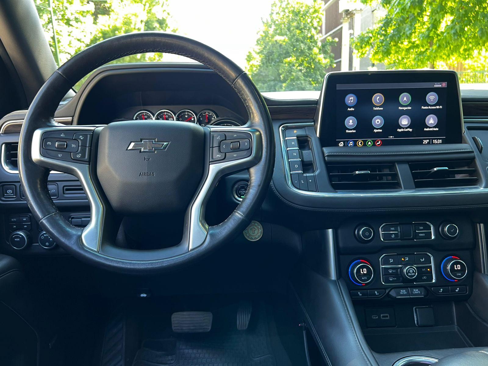 Tres corridas de asientos (capacidad para ocho pasajeros), motor ocho cilindros 5.300 CC, caja de cambios automática, modos de conducción, tracción 4x4 con reductora, volante multifuncional con velocidad crucero, calefacción y comando por voz, pantalla touch con cámaras de estacionamiento (trasera, delantera y 360), Apple CarPlay y Android Auto, climatizadores independientes, asientos eléctricos con memorias y calefacción, tapiz de cuero, sunroof, pantallas multimedia para plazas traseras, sistema de audio alta fidelidad Bose.