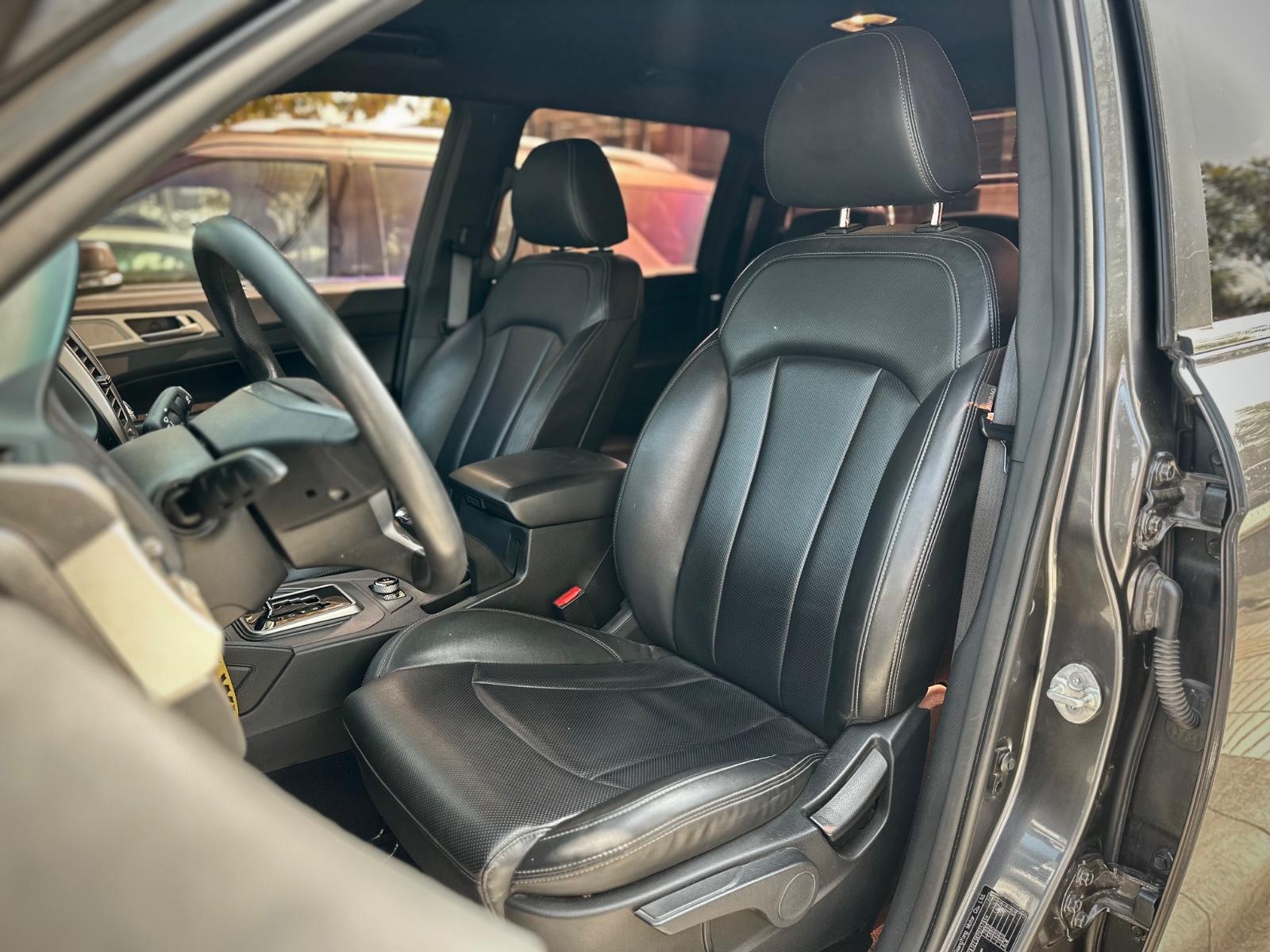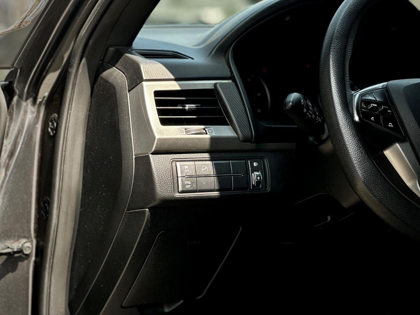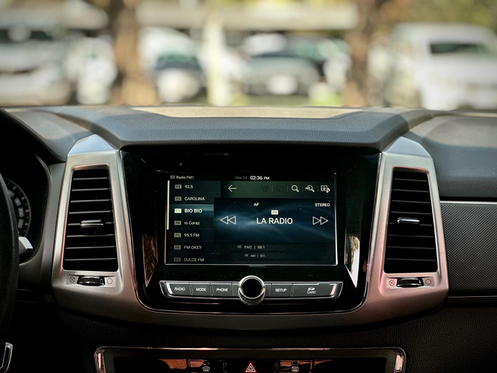 Interior con asientos de cuero con ajuste manual, volante multifunción, control crucero, anclajes ISOFIX y climatizador bi zona. Incorpora pantalla de infoentretenimiento con Apple CarPlay y Android Auto, cámara de retroceso, asistente en pendiente y tablero análogo con pantalla de información.
