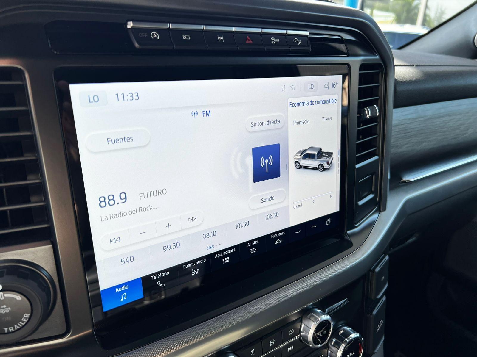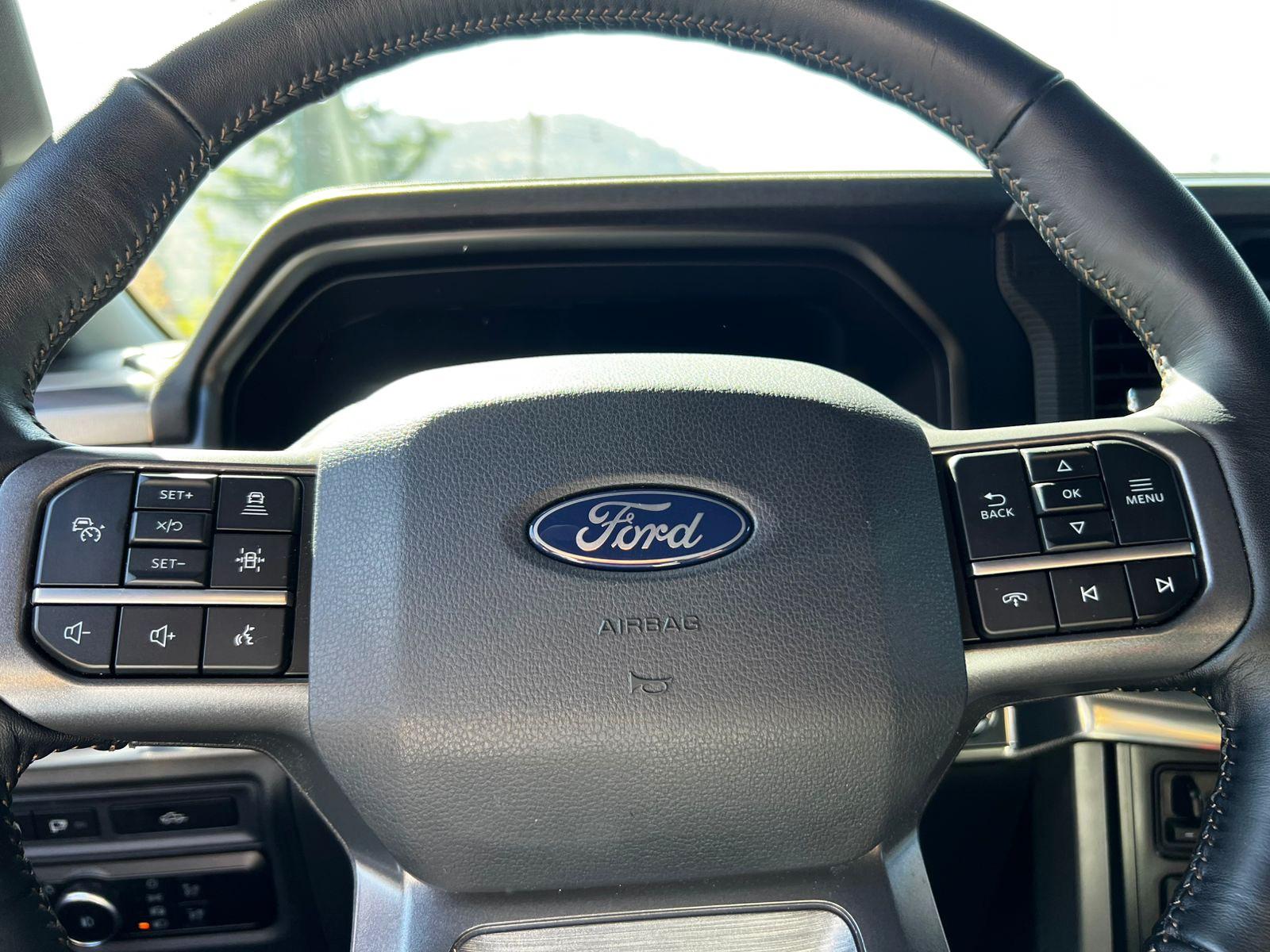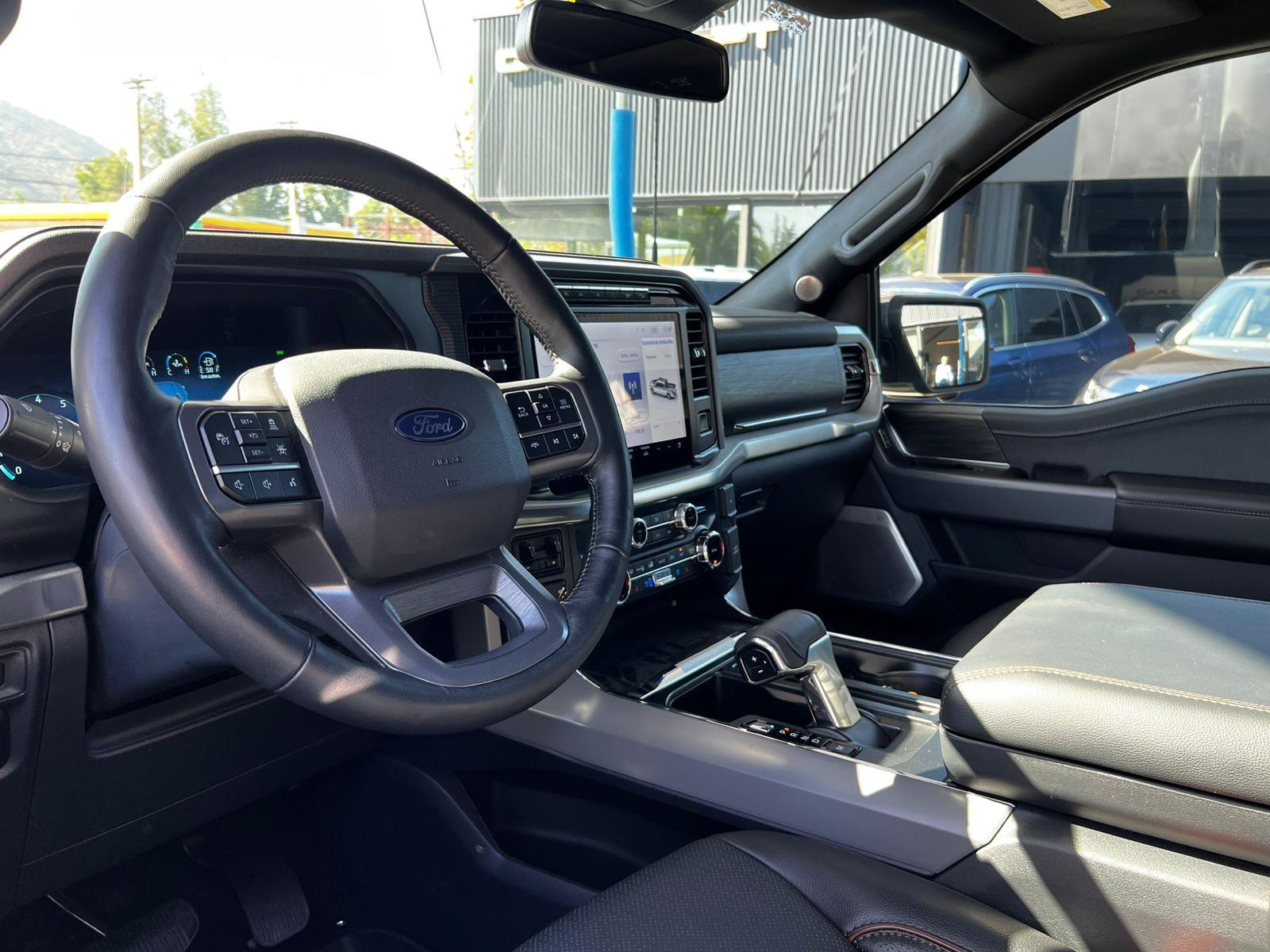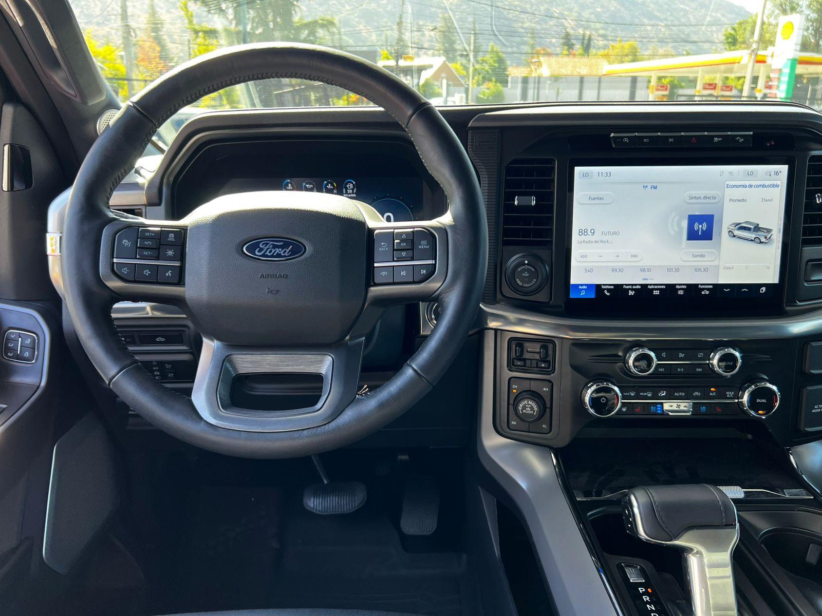 FACTURABLE. Mantenimiento en concesionario oficial de la marca, único dueño, dos juegos de llaves, versión Lariat Luxury, motor ocho cilindros 5.000 CC, compartimiento rígido plegable cubre carga, pisaderas laterales, caja de cambios automática diez velocidades, modos de conducción, tracción 4x4 con reductora y bloqueo de diferencial trasero, volante multifuncional con velocidad crucero adaptativo, calefacción y reconocimiento por voz, computador a bordo, tablero digital, head up display, pantalla touch con cámaras estacionamiento (trasera, delantera, laterales y 360) y conectividad para Apple CarPlay y Android Auto, climatizadores delanteros independientes, techo panorámico, tapiz de cuero, asientos eléctricos con memorias, calefacción y enfriador en tres niveles, sistema de audio alta fidelidad Bang & Olufsen, asistente cambio de carril.