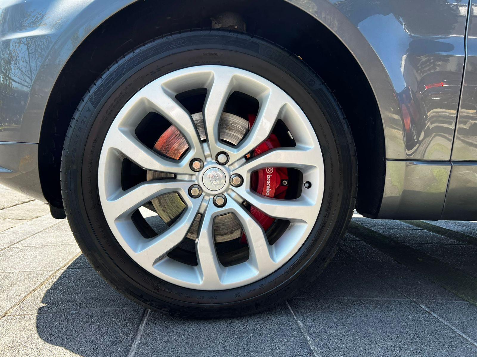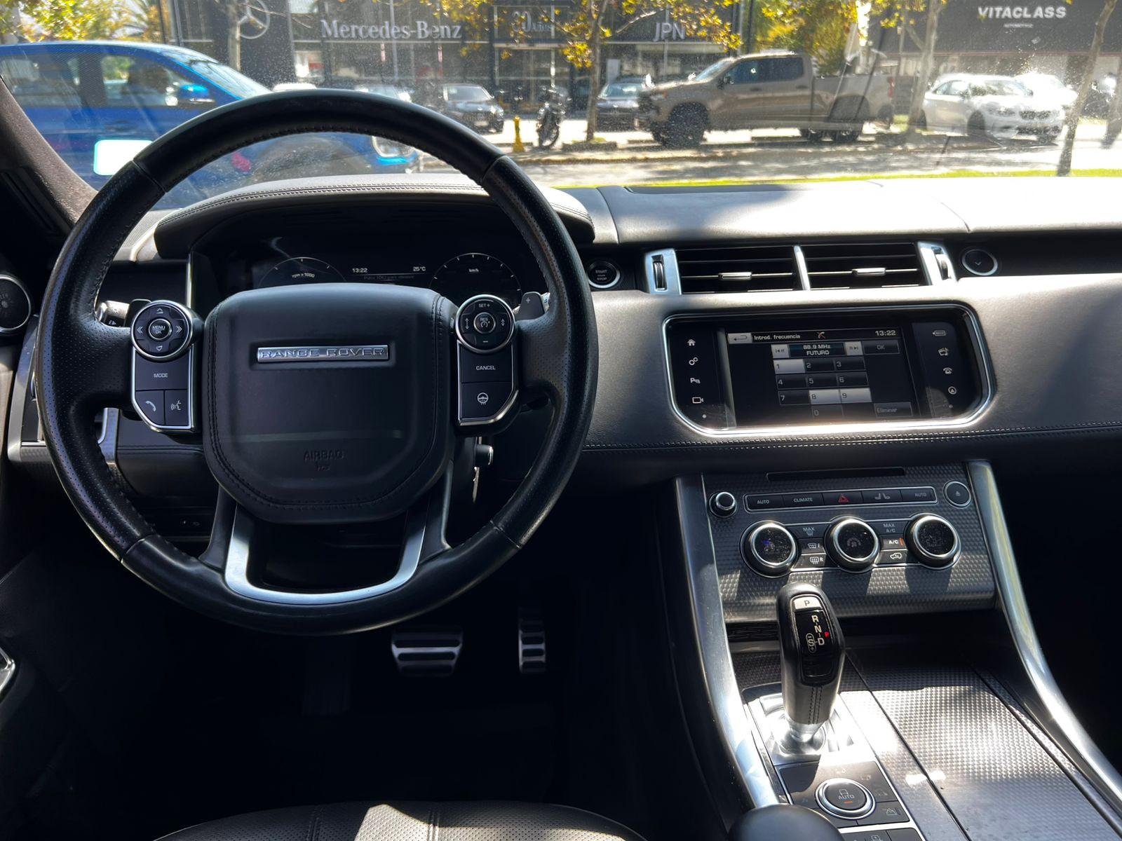 Mantenimiento al día, versión Sport Supercharged Autobiography (configuración especial a pedido), motor ocho cilindros 5.000 CC supercargado con 510 HP, frenos Brembo, modos de conducción, tracción integral AWD, suspensión regulable en altura y rigidez, caja de cambios automática con paddle shift, volante multifuncional con velocidad crucero, calefacción y reconocimiento por voz, pantalla touch con cámaras de estacionamiento y navegador, asientos eléctricos con memorias, calefacción y enfriador en tres niveles, cuatro climatizadores independientes (dos delanteros y dos traseros), tapiz de cuero y Alcántara, sistema de audio alta fidelidad Meridian, portalón eléctrico, control de estabilidad y tracción.