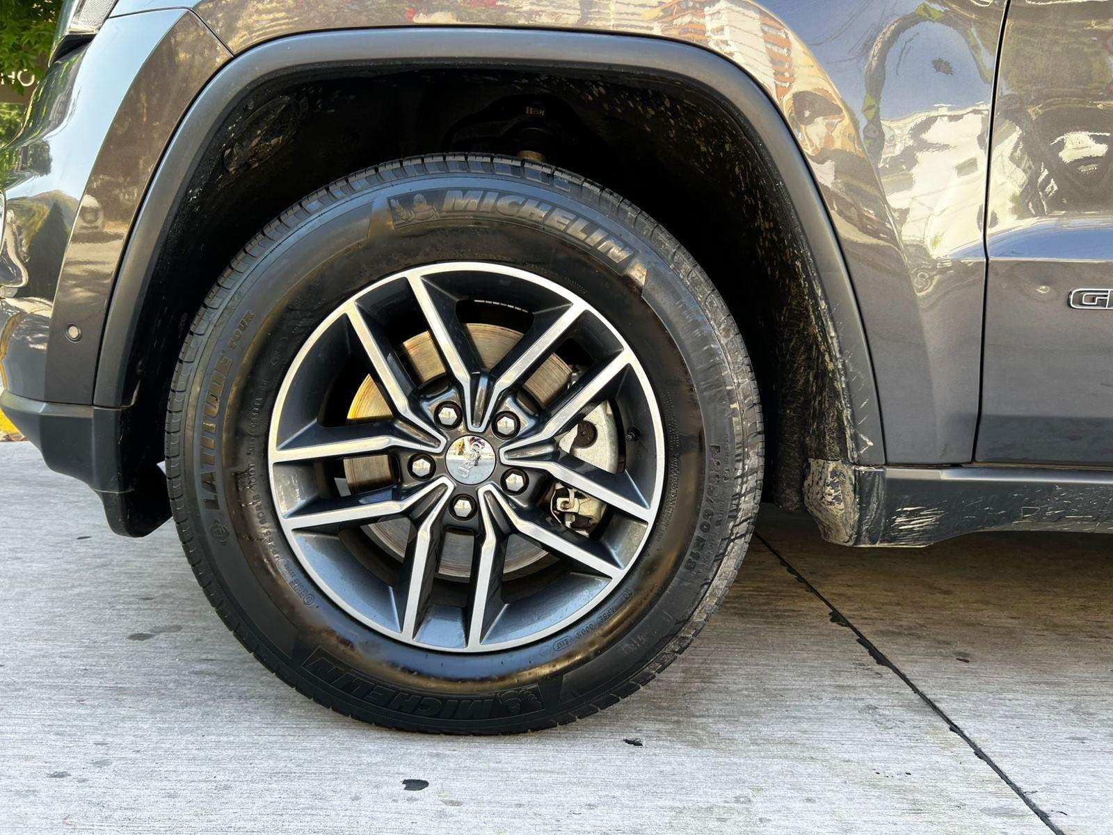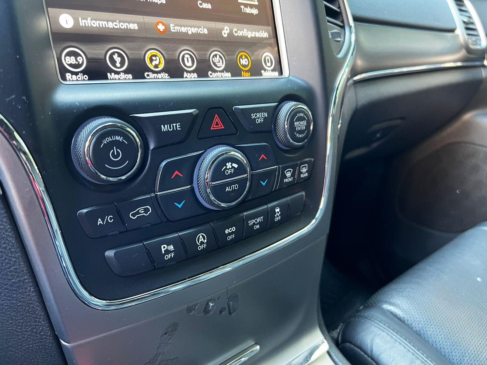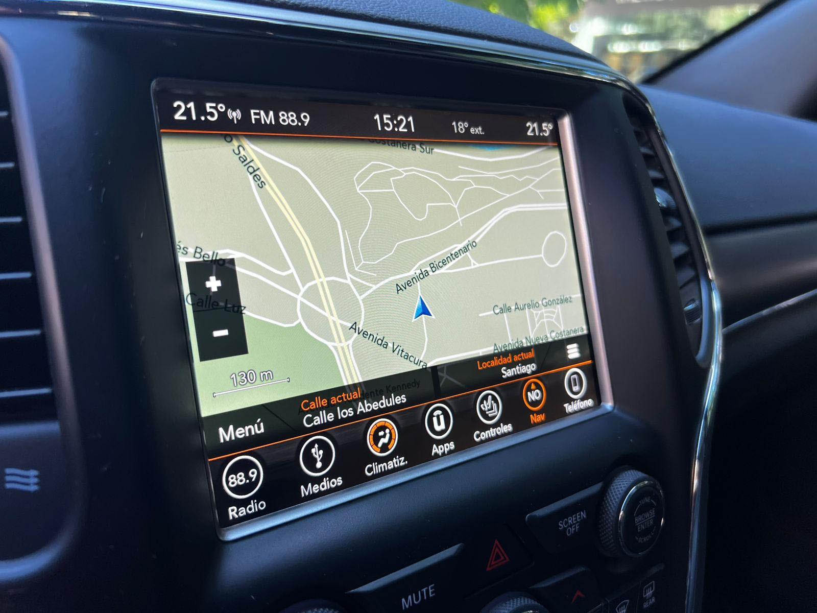 Versión Limited, motor seis cilindros 3.600 CC Pentastar, caja de cambios automática con Paddle shift, modos de conducción, tracción 4x4 con reductora, control de descenso y estabilidad, volante multifuncional con velocidad crucero, calefacción y comando por voz, computador a bordo, pantalla touch con cámara trasera de estacionamiento, navegador y conectividad para Apple CarPlay y Android Auto, climatizadores delanteros independientes, botón de encendido start/stop, techo panorámico, asientos eléctricos con memorias, calefacción y enfriador.