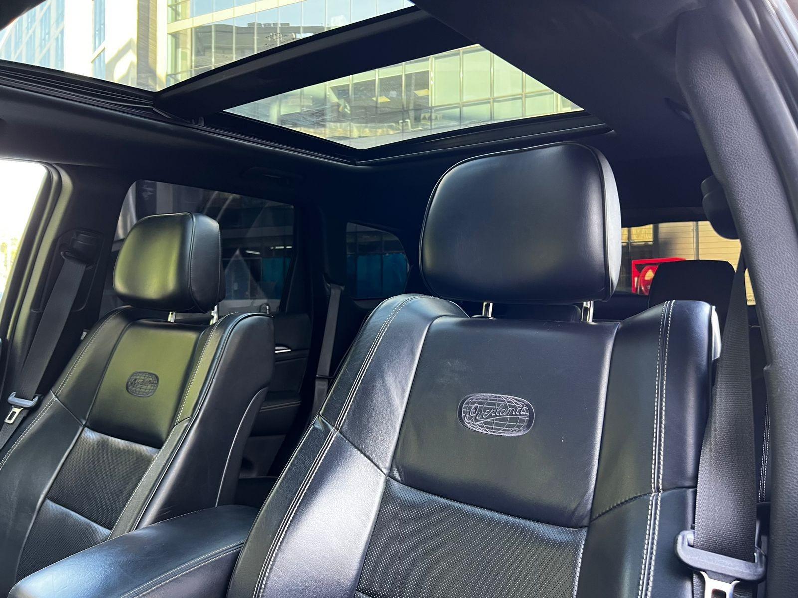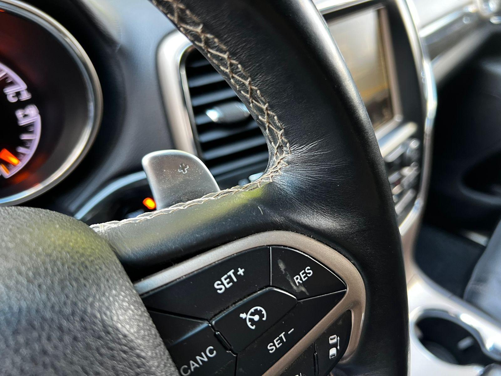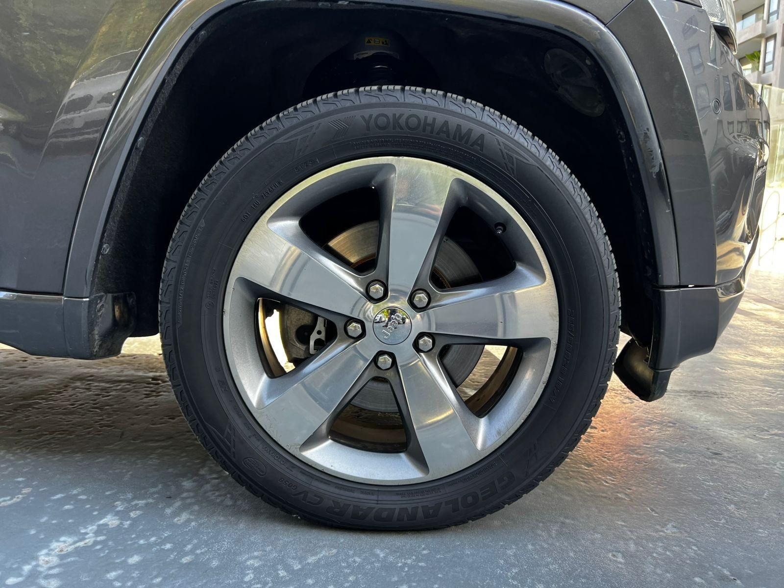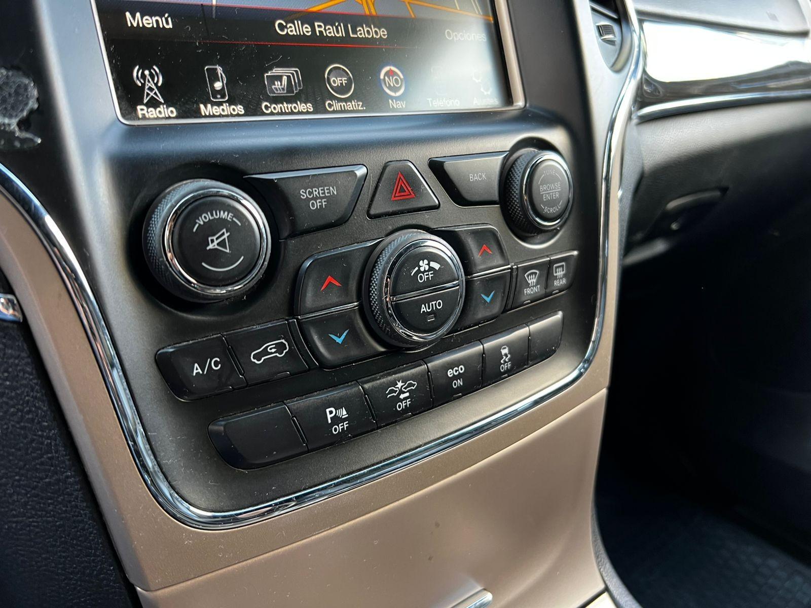 Mantenimiento al día, versión Overland, motor seis cilindros 5.700 CC Hemi, caja de cambios automática con paddle shift, tracción 4x4 con reductora, control de descenso y estabilidad, volante multifuncional con velocidad crucero, reconocimiento por voz y calefacción, computador a bordo, pantalla touch con cámara trasera de estacionamiento, sensores delanteros y navegador, climatizadores delanteros independientes, asientos eléctricos con memorias, calefacción y enfriador en tres niveles, tapiz de cuero, techo panorámico, molduras de madera.