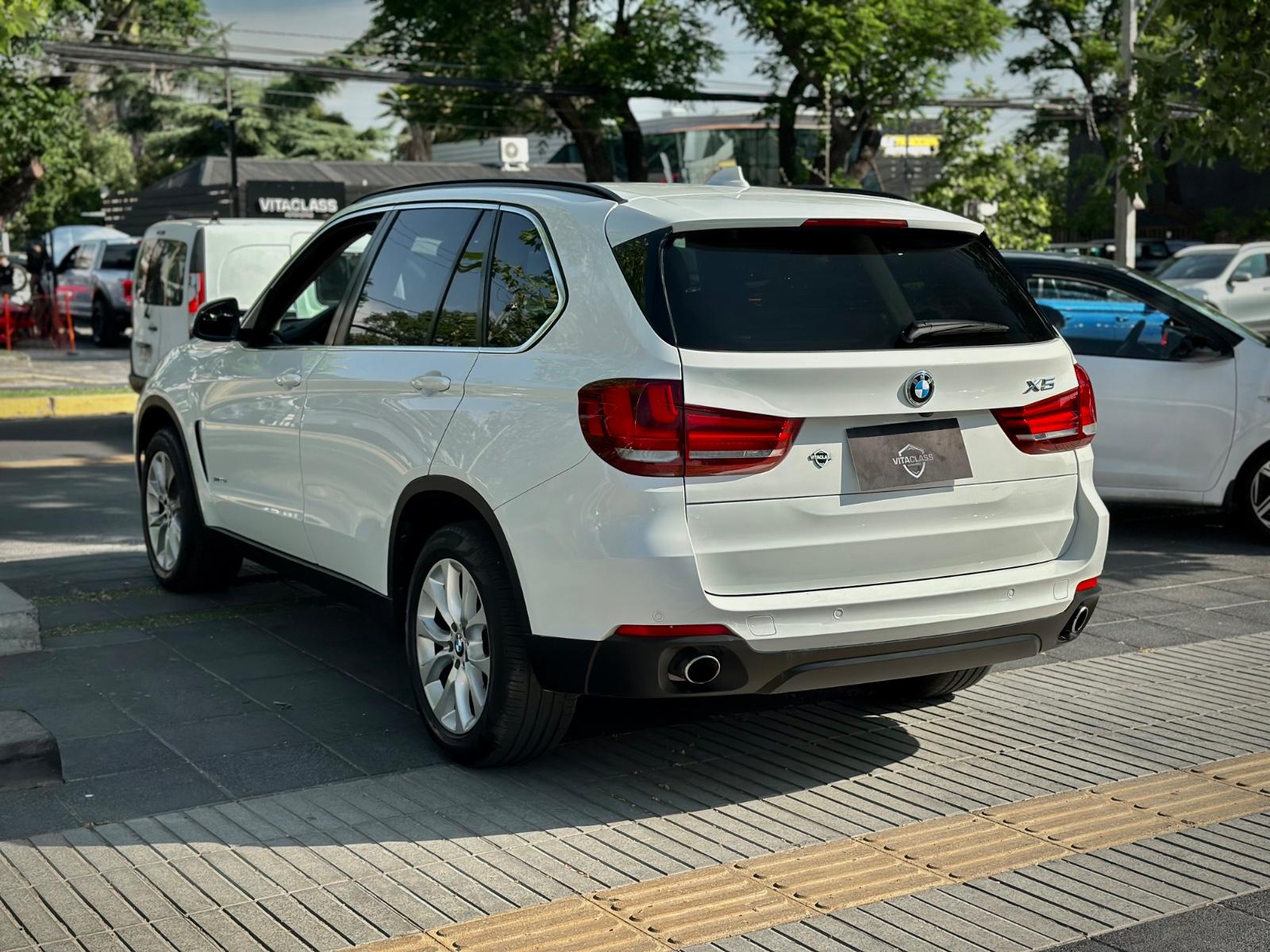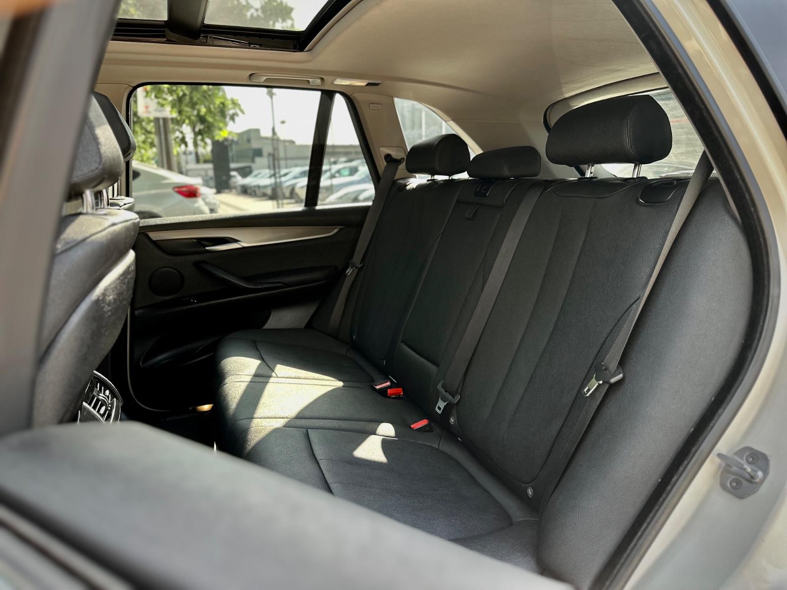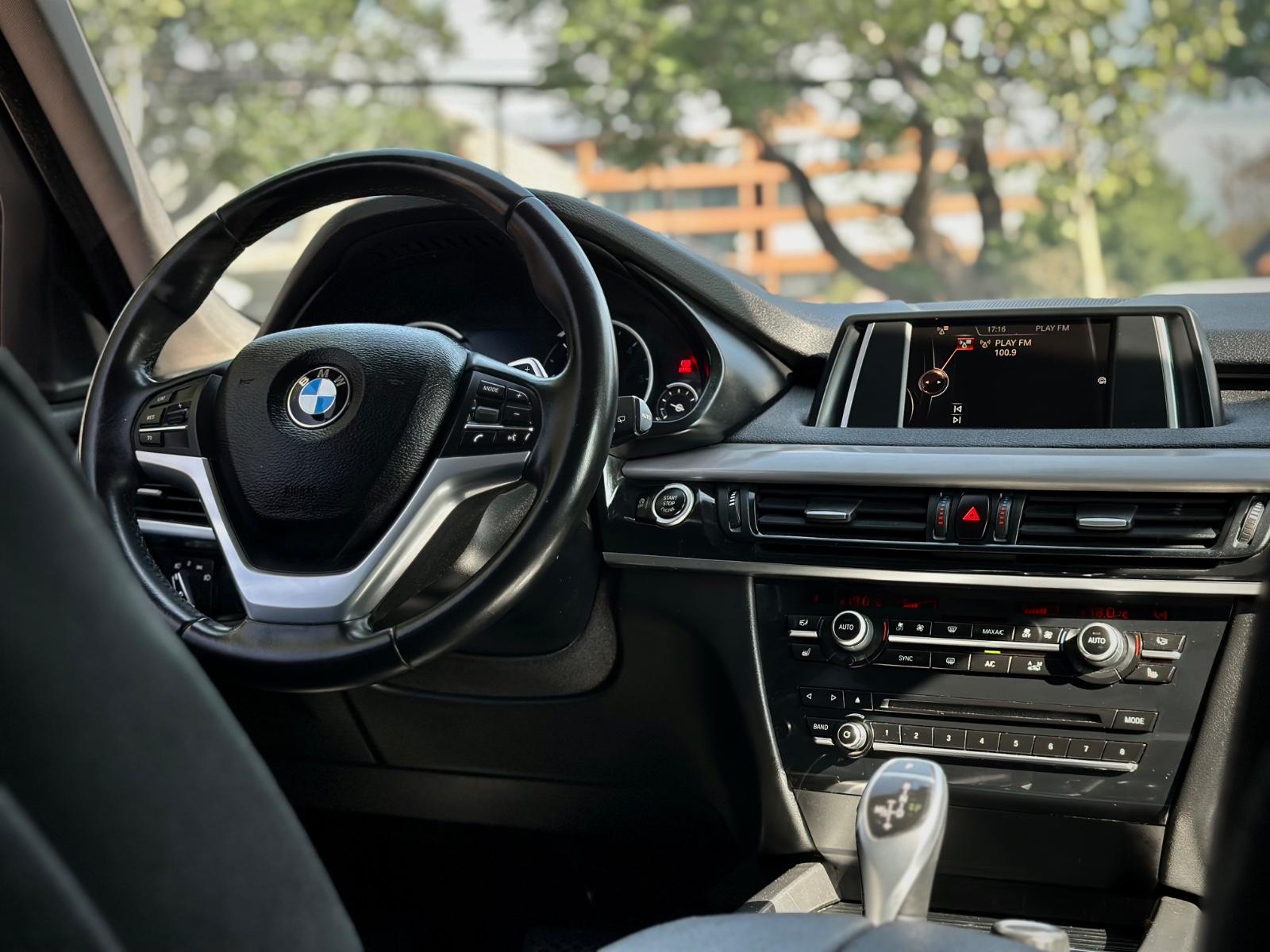 BMW X5 sDrive 25d 2018, equipada con motor diésel 2.0 litros y transmisión automática. Con 102.763 kilómetros, esta SUV combina elegancia, tecnología y desempeño característico de BMW. Destaca por sus llantas en aluminio, luces LED, neblineros y sensores de estacionamiento en 360°. En el interior ofrece ajuste eléctrico para volante y asientos, anclajes ISOFIX, asientos en tela con calefacción, climatizador bi-zona y sunroof panorámico. Incorpora volante multifunción con control crucero y limitador, paddle shift, tablero digital configurable, portalón trasero automático, cámara de retroceso, freno de mano electrónico con función Autohold y modos de conducción.