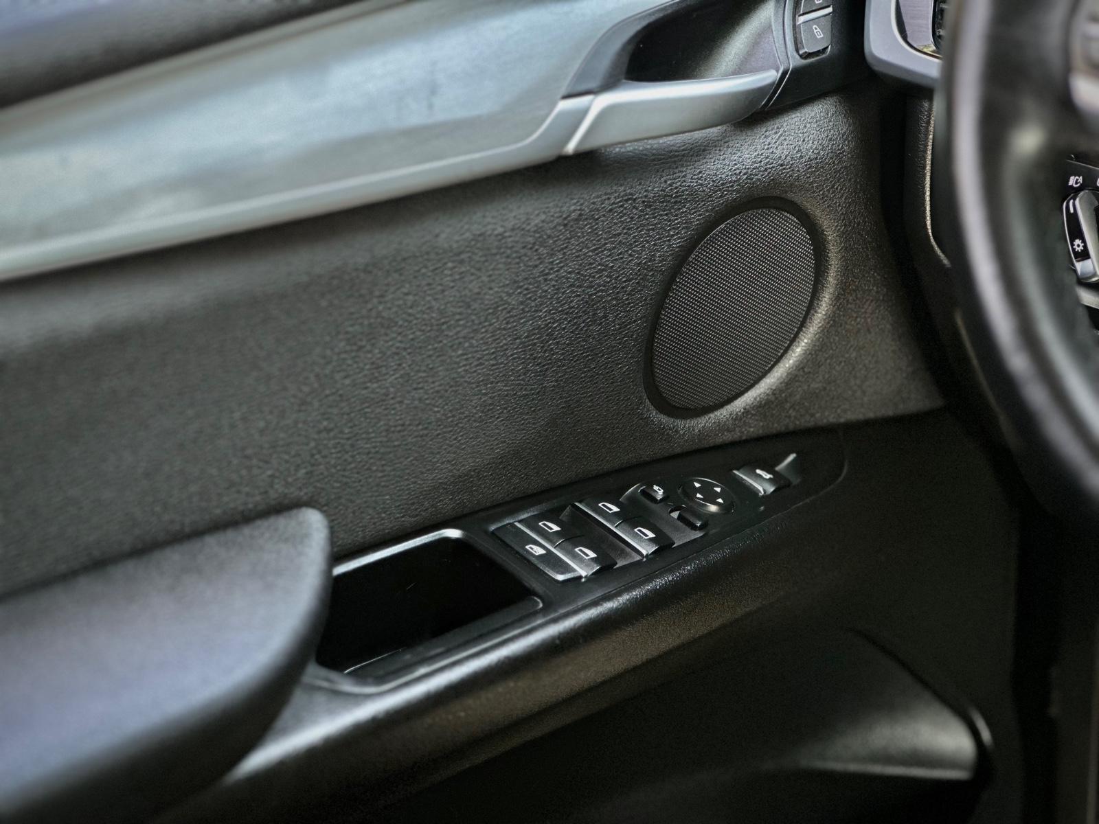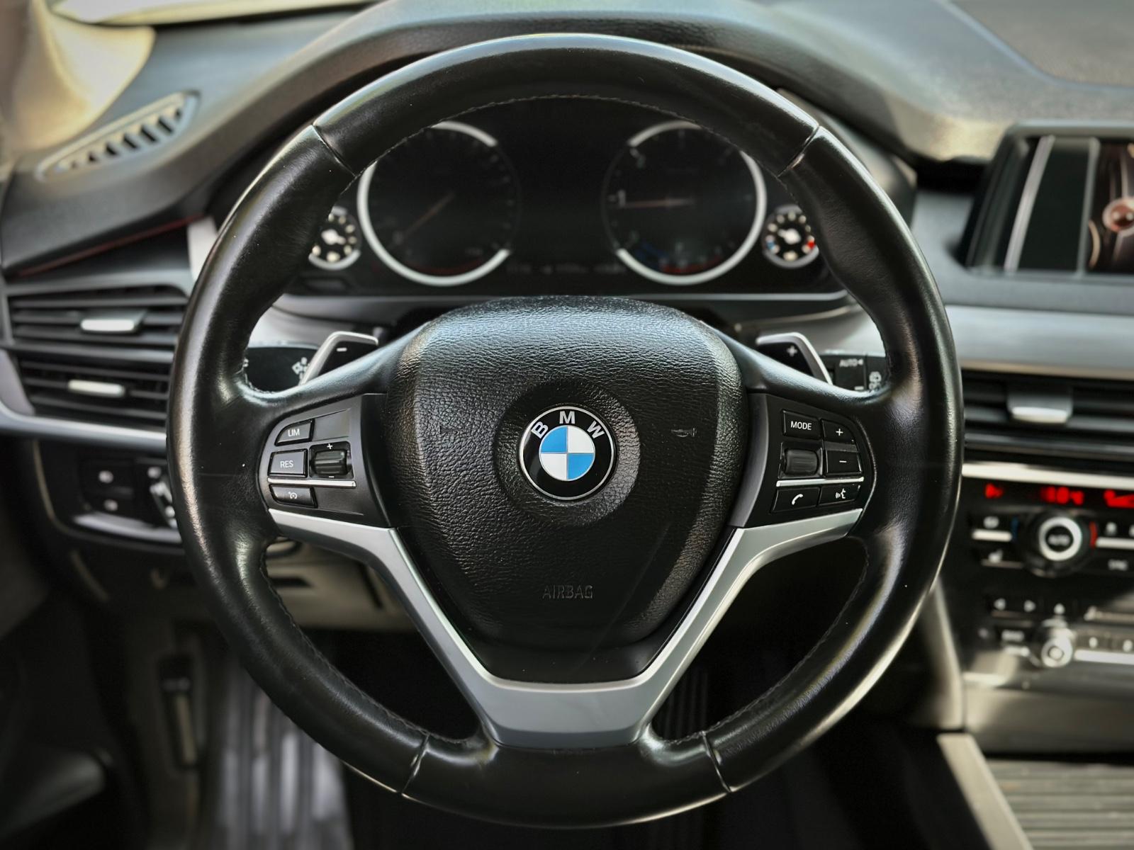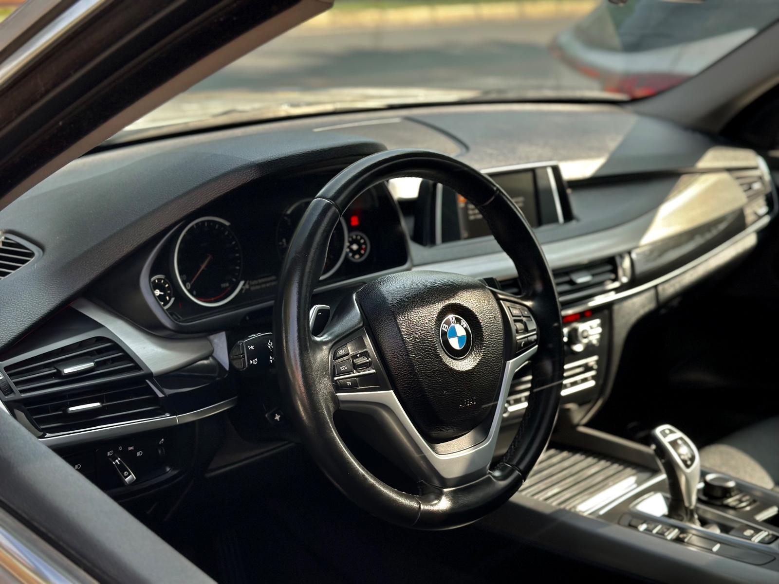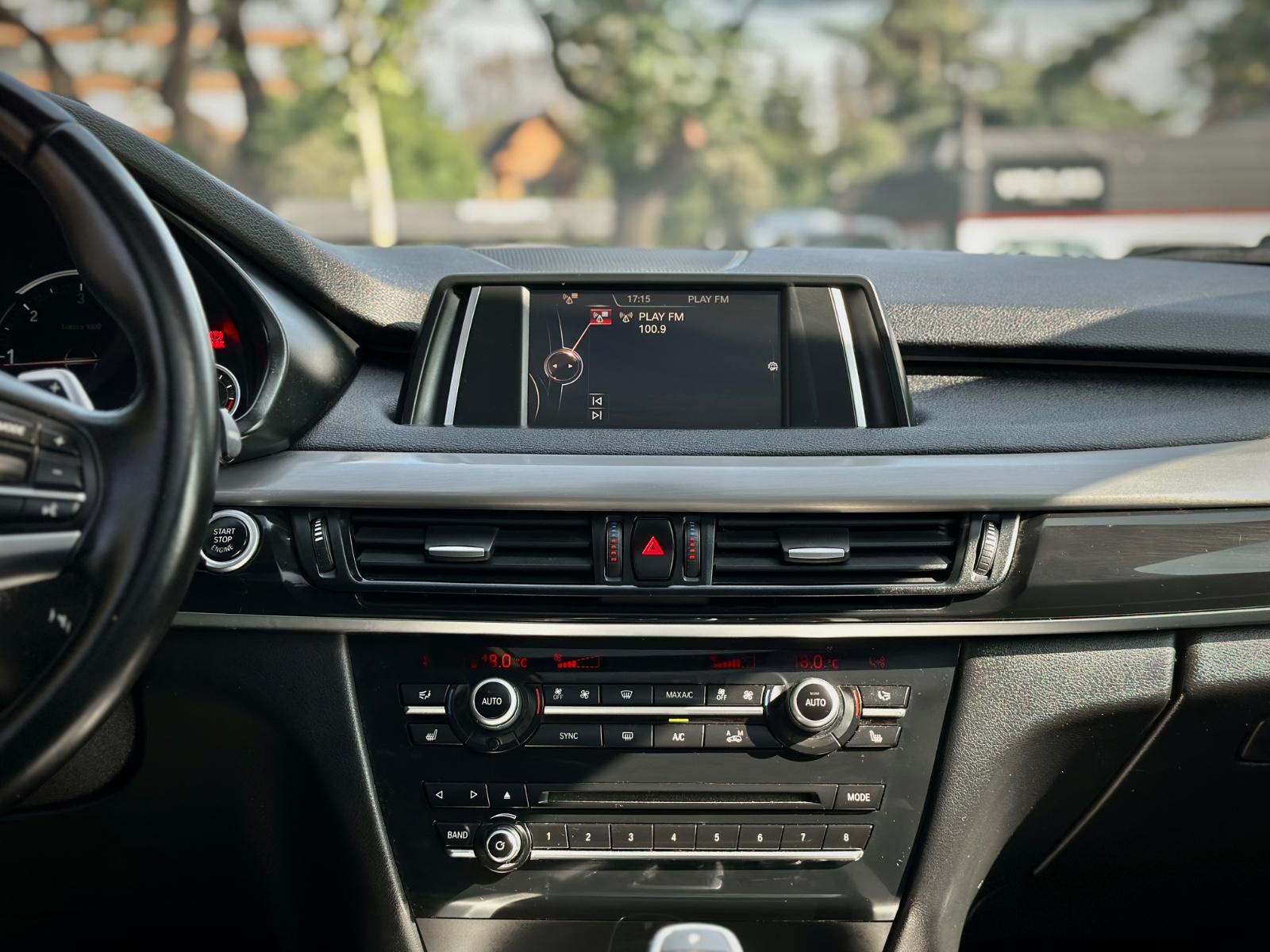 BMW X5 sDrive 25d 2018, equipada con motor diésel 2.0 litros y transmisión automática. Con 102.763 kilómetros, esta SUV combina elegancia, tecnología y desempeño característico de BMW. Destaca por sus llantas en aluminio, luces LED, neblineros y sensores de estacionamiento en 360°. En el interior ofrece ajuste eléctrico para volante y asientos, anclajes ISOFIX, asientos en tela con calefacción, climatizador bi-zona y sunroof panorámico. Incorpora volante multifunción con control crucero y limitador, paddle shift, tablero digital configurable, portalón trasero automático, cámara de retroceso, freno de mano electrónico con función Autohold y modos de conducción.