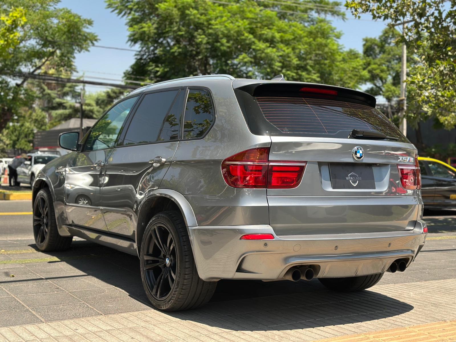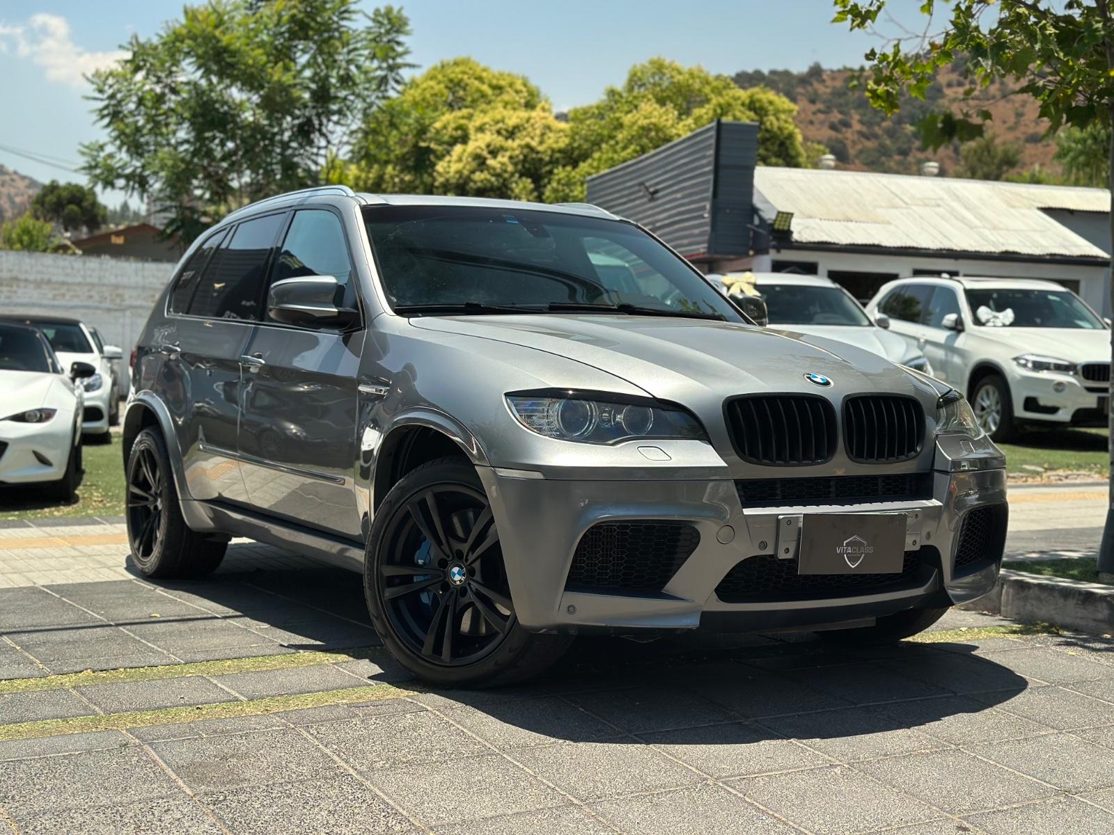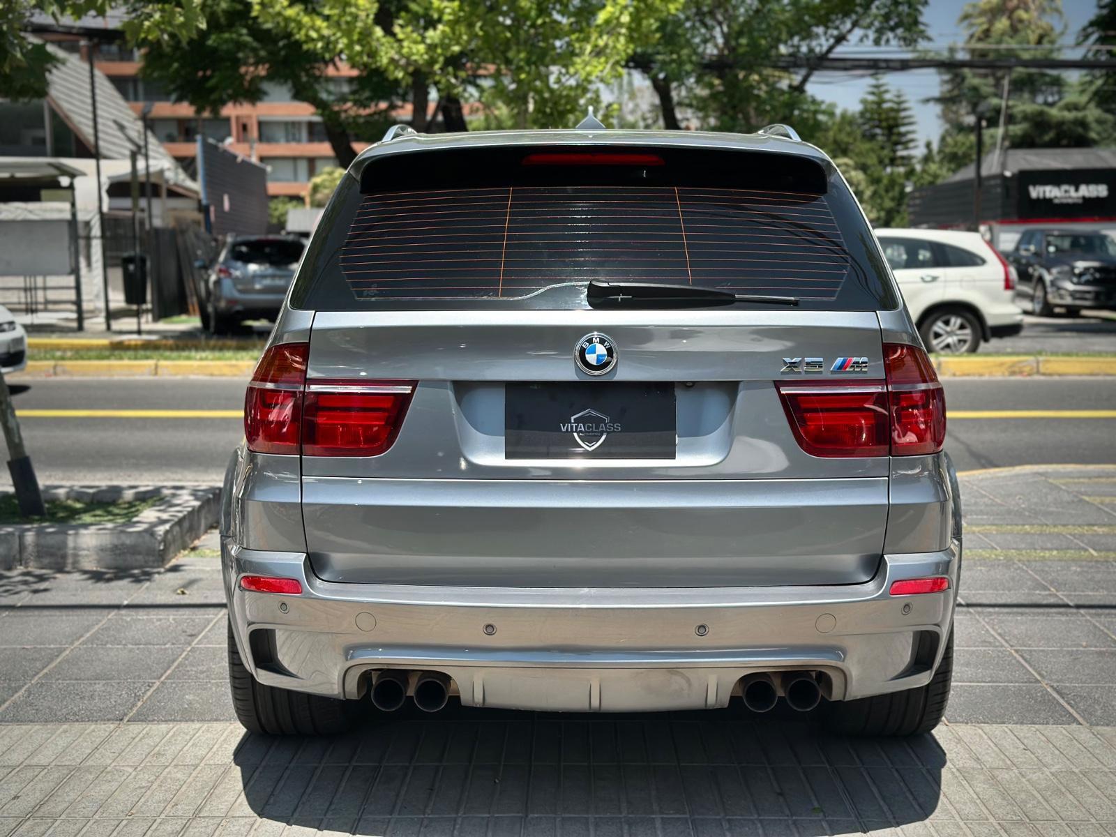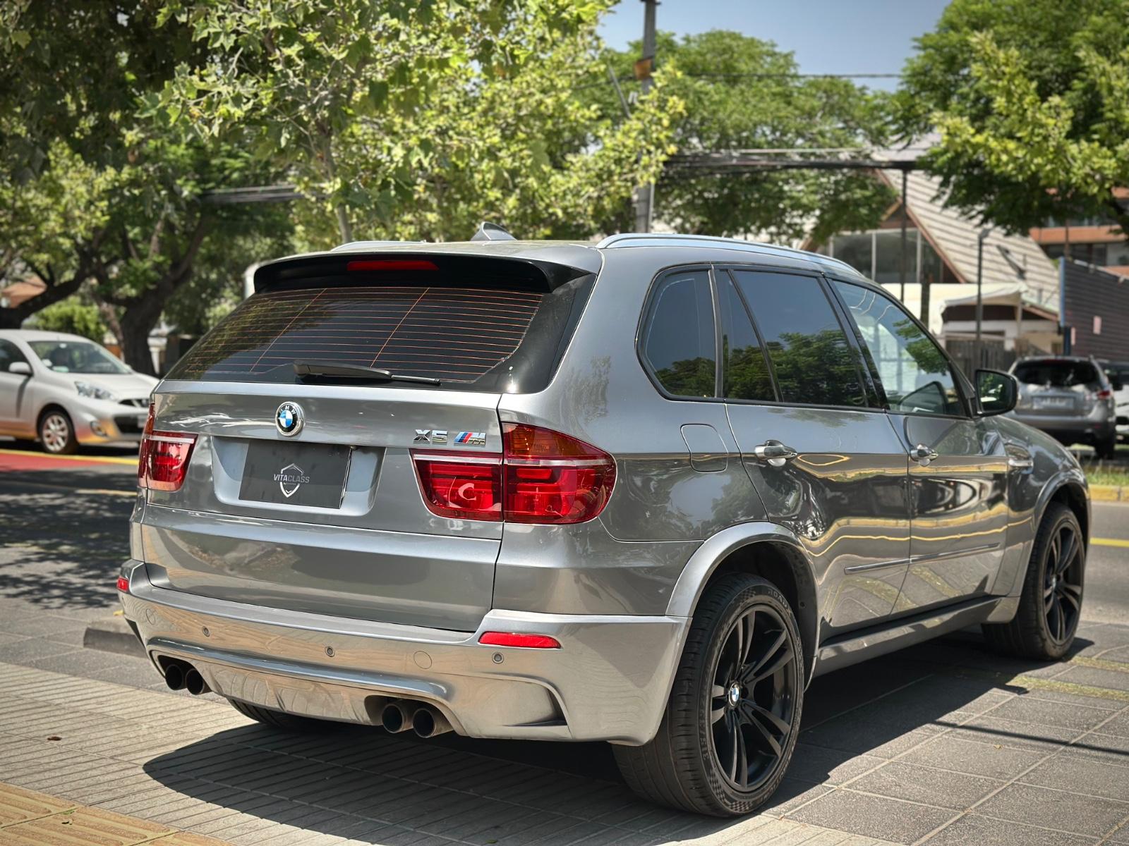 BMW X5M xDrive 2012, SUV de alto desempeño equipado con motor 4.4 V8 Biturbo a gasolina y transmisión automática, con 108.689 km. Versión deportiva con 555 HP y tracción integral xDrive, que entrega una conducción potente y dinámica. Incorpora llantas de aleación en negro glossy, luces de xenón y frenos M, junto a sensores de estacionamiento 360° y cámara de retroceso. Interior con butacas en cuero y alcántara, eléctricas, calefactables y con memoria, además de climatizador de 3 zonas y sunroof panorámico. Destaca su suspensión neumática, volante multifuncional con ajuste eléctrico, paddle shift en aluminio, control crucero y apertura eléctrica de portalón, Modos de conducción.