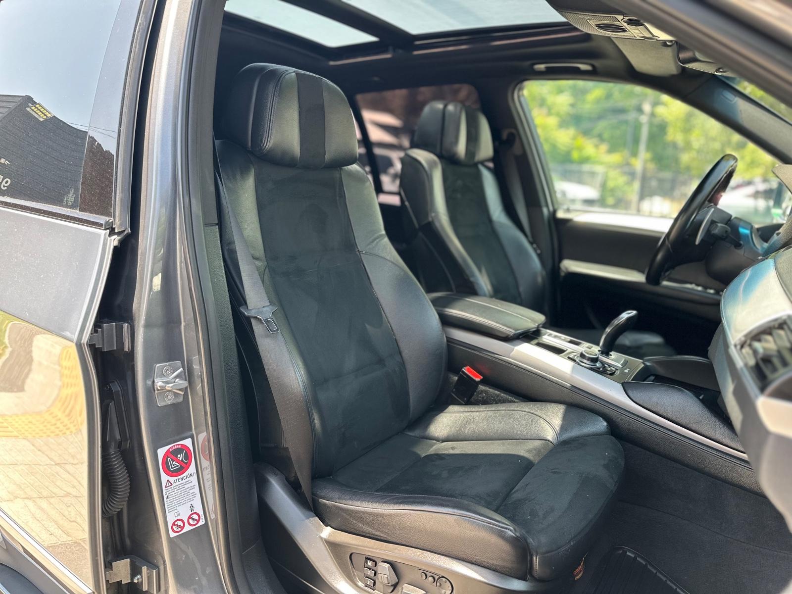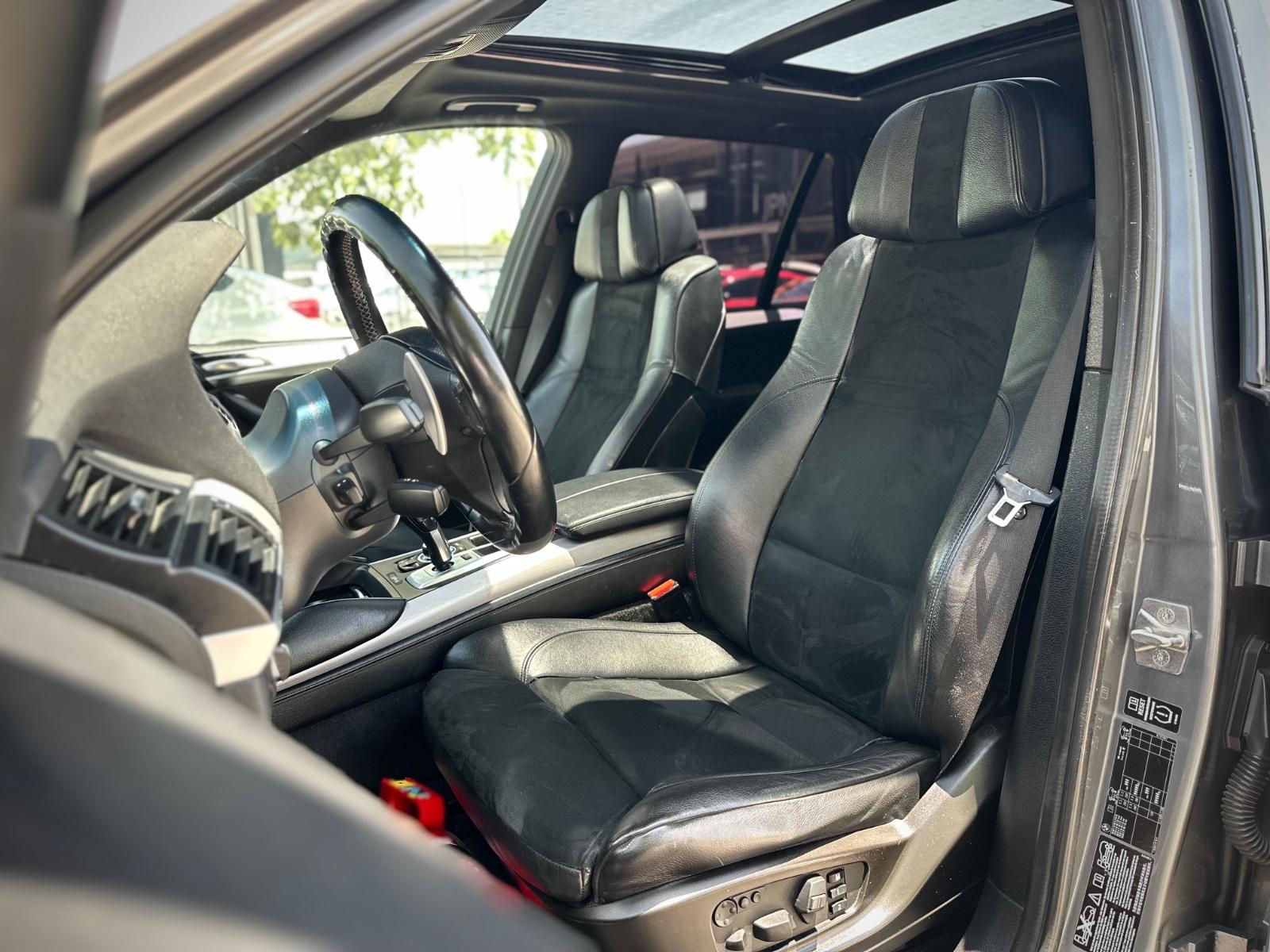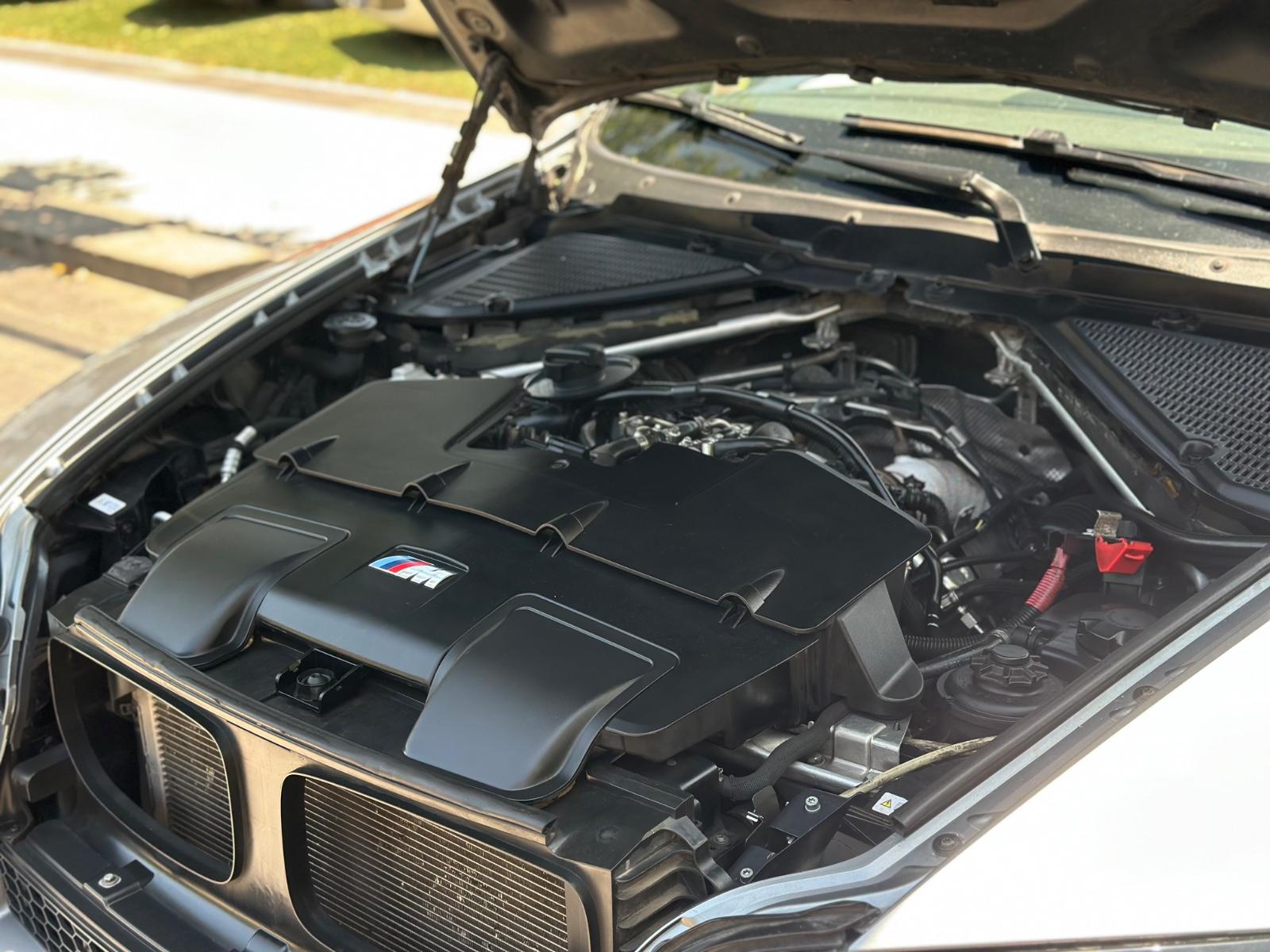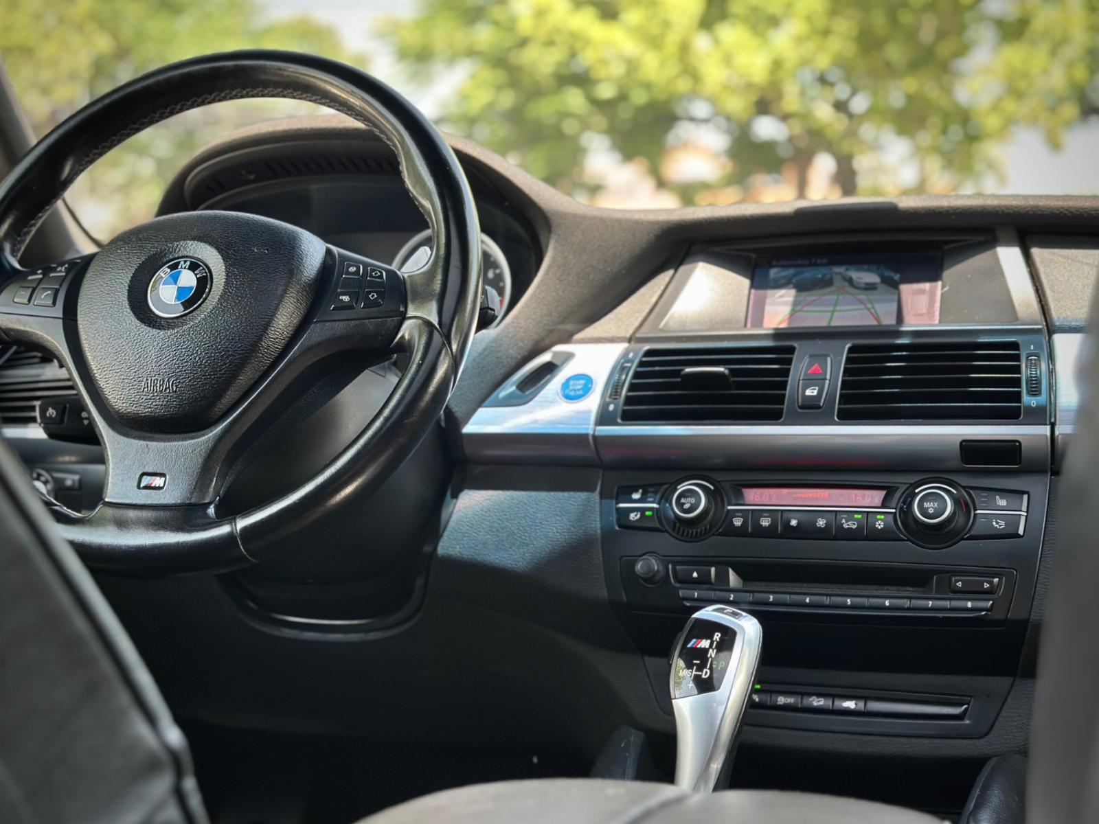 BMW X5M xDrive 2012, SUV de alto desempeño equipado con motor 4.4 V8 Biturbo a gasolina y transmisión automática, con 108.689 km. Versión deportiva con 555 HP y tracción integral xDrive, que entrega una conducción potente y dinámica. Incorpora llantas de aleación en negro glossy, luces de xenón y frenos M, junto a sensores de estacionamiento 360° y cámara de retroceso. Interior con butacas en cuero y alcántara, eléctricas, calefactables y con memoria, además de climatizador de 3 zonas y sunroof panorámico. Destaca su suspensión neumática, volante multifuncional con ajuste eléctrico, paddle shift en aluminio, control crucero y apertura eléctrica de portalón, Modos de conducción.