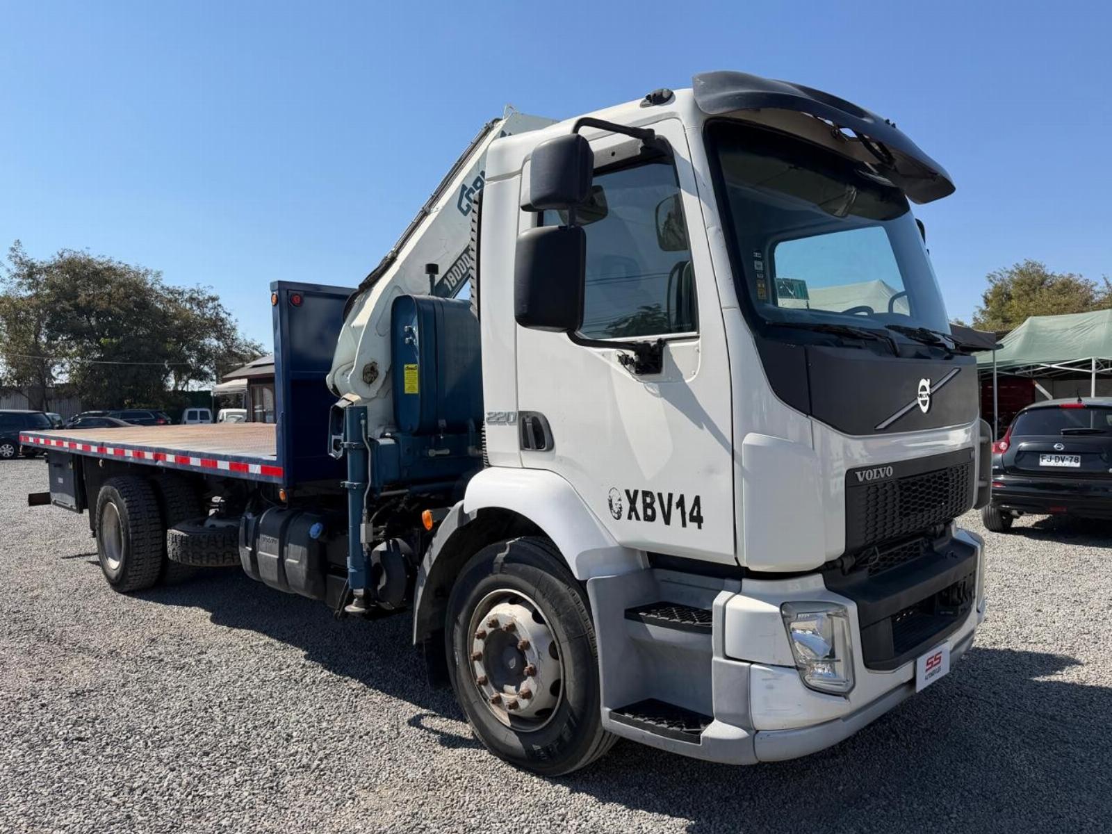 Camión Volvo, VM 220, VALOR INCLUYE IVA, FACTURABLE, Modelo MV 220, 2 ejes, Carga 11.900 Kilos, motor diesel, 6 cilindros turbo, Grúa HIAB, Modelo 4.000-E4 ARC, Distribuida por Formach, grúa hidráulica articulada liviana, Capacidad máxima 4ton metro, alcance con 4 extensiones (E4) aprox 8.2 a 8.5 M, Capacidad al máximo alcance 3ntre 450 a 500 Kg, Rotación 400 °, Carrocería diamantada con piñas para el traslado de conteiner. Contamos con crédito automotriz y recibimos pago con Tarjeta de crédito.