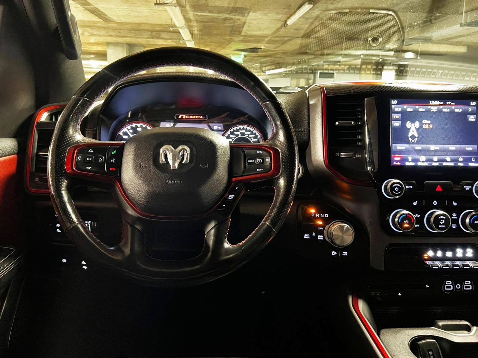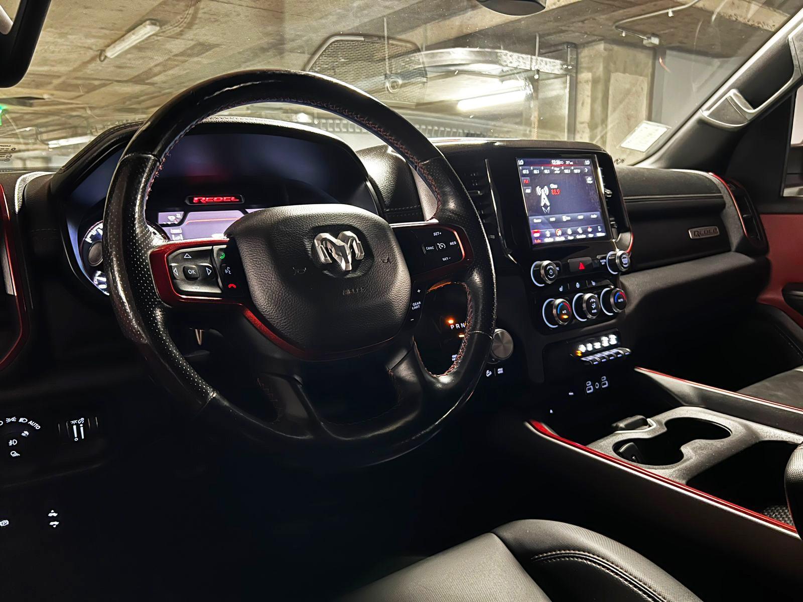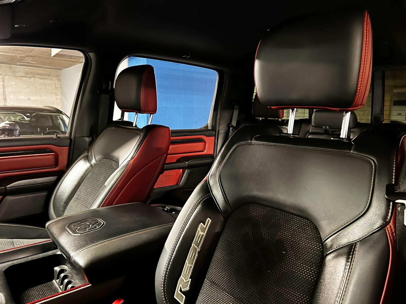 Dos dueños, versión 1500 Rebel, motor 5.700 CC ocho cilindros HEMI, tracción 4x4 con reductora, pisaderas laterales, caja de cambios automática, suspensión regulable en altura y rigidez, volante multifuncional con velocidad crucero, calefaccion y comando por voz, computador a bordo, pantalla touch con cámara trasera de estacionamiento y conectividad para Apple CarPlay y Android Auto, climatizadores delanteros independientes, botón de encendido start-stop, sistema de audio alta fidelidad Alpine.
