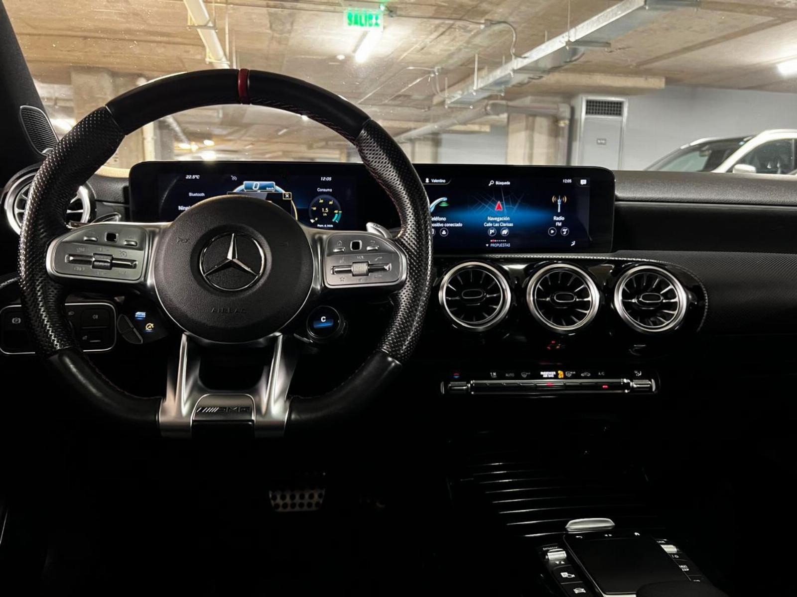 Motor cuatro cilindros 2.000 CC turbo con 306 HP, caja de cambios automática DCT doble embrague con paddle shift, modos de conducción, tracción integral 4MATIC, frenos con discos perforados, volante multifuncional con velocidad crucero y comando por voz, computador a bordo, pantalla touch con cámara trasera de estacionamiento, navegador y conectividad para Apple CarPlay y Android Auto, climatizador, molduras piano black, asientos eléctricos con memorias, techo panorámico, tapiz alcántara.