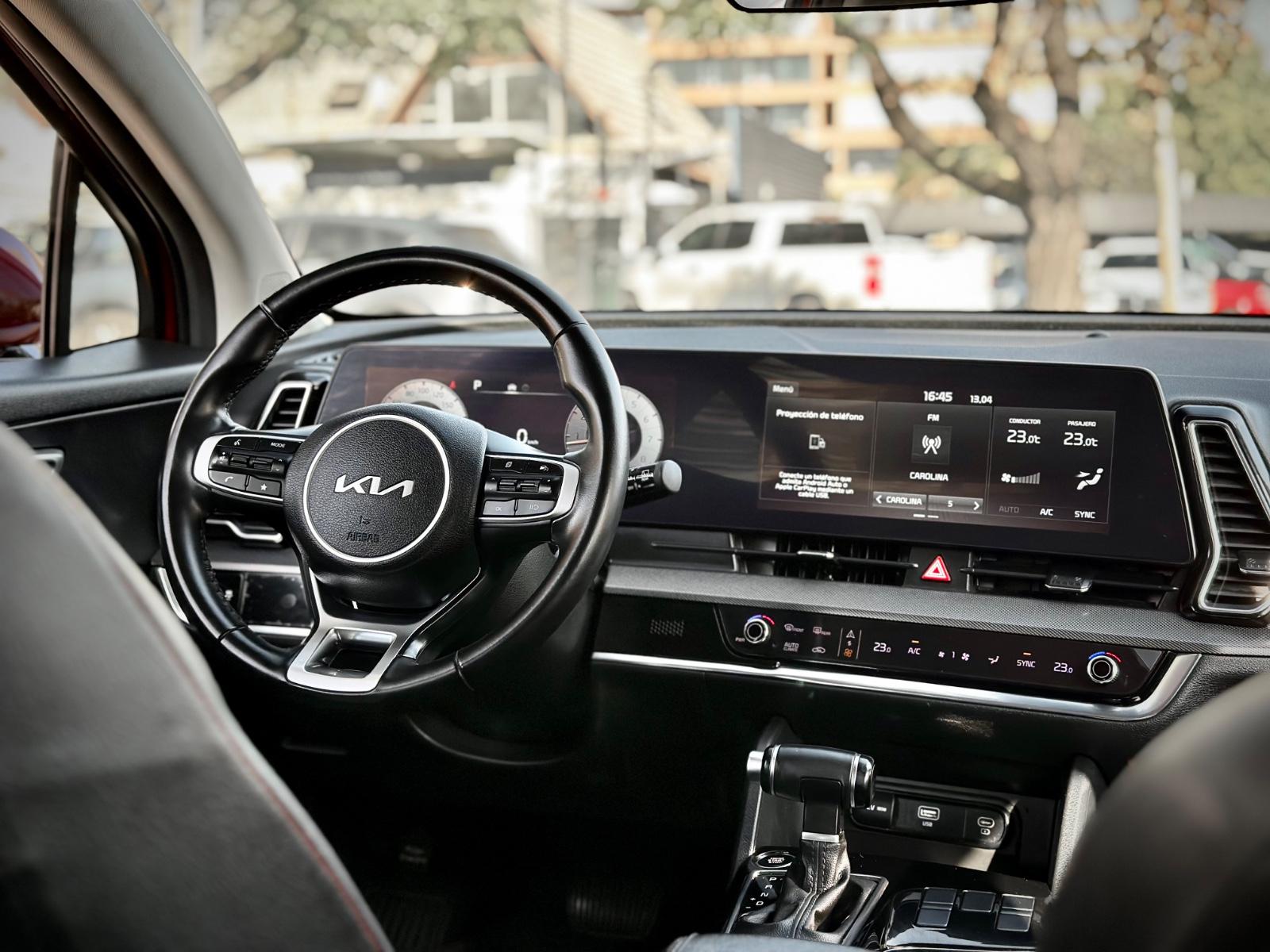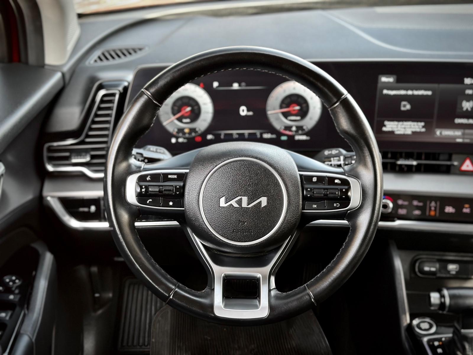 Kia Sportage EX 2.0 2022, SUV moderna equipada con motor 2.0 a gasolina y transmisión automática, con 37.858 km. Destaca por su diseño y tecnología, incorporando luces Full LED, llantas biseladas y sensores de estacionamiento 360° con cámara de retroceso. Interior cómodo con asientos de tela calefactables, climatizador bi zona y volante multifuncional calefactable. Incluye pantalla de infoentretenimiento de 12,3” con Apple CarPlay y Android Auto, tablero digital y menú táctil variable. Cuenta con modos de conducción, control crucero y enganche americano, entregando una conducción versátil y confortable para el día a día.